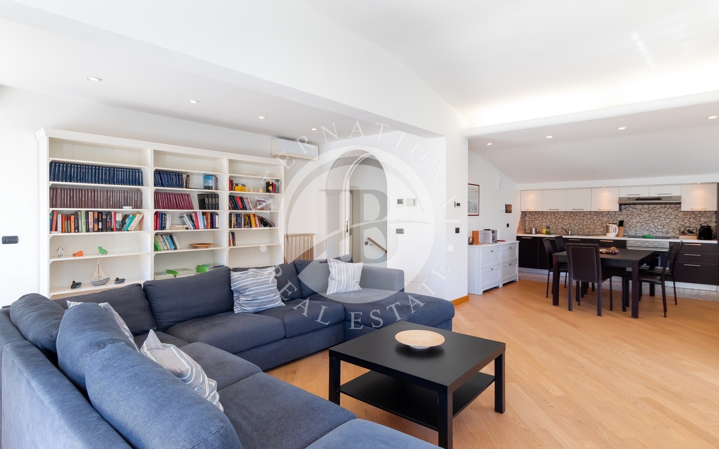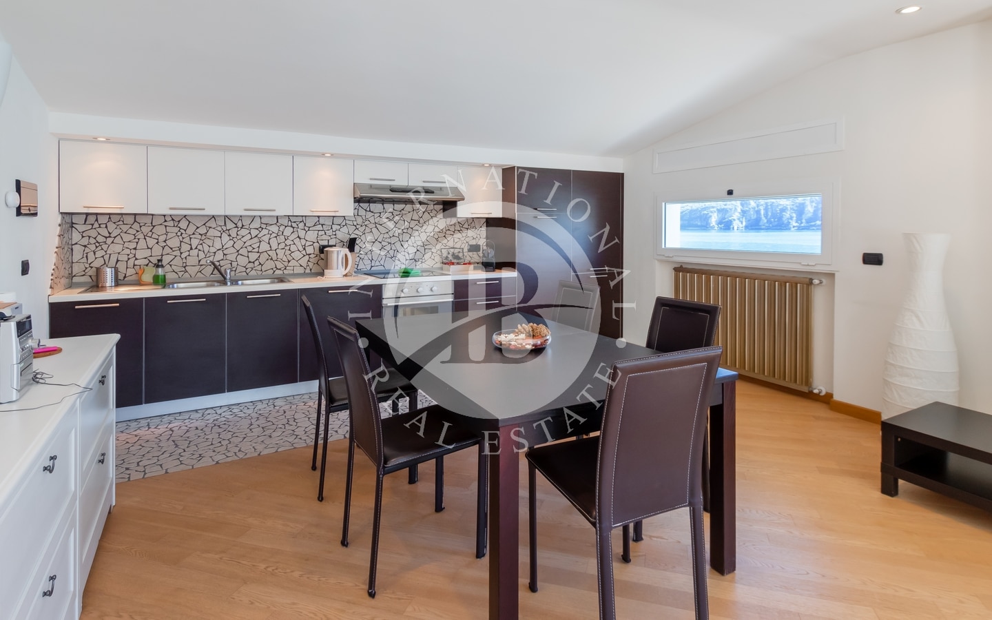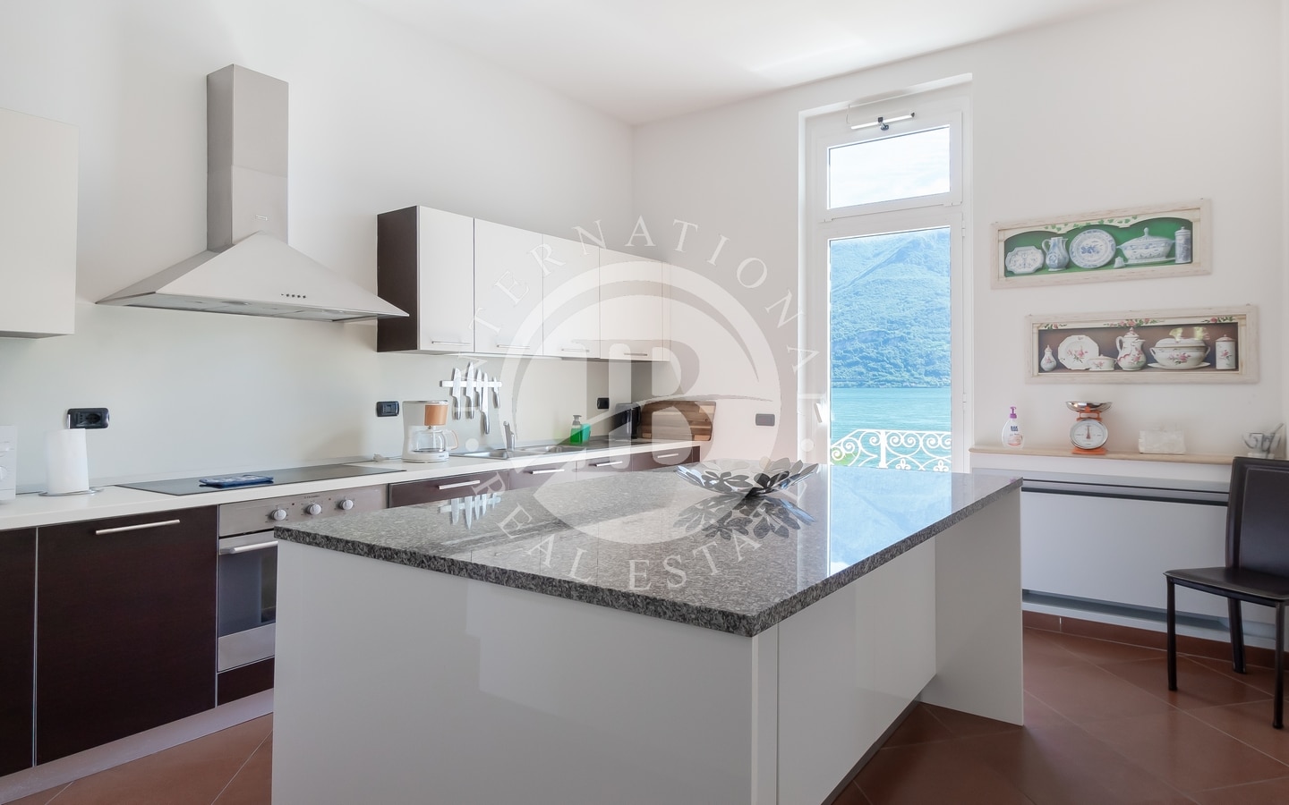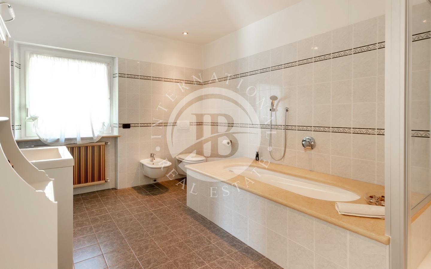 Recentemente ristrutturata, ospita al piano terrala zona giorno con ingresso, la cucina, un ampio soggiorno con camino, una sala da biliardo e una grande terrazza di 50 mq affacciata sulla piscina e sul lago; al primo piano, ci sono tre camere da letto, ciascuna con bagno privato, e due ulteriori camere che si affacciano sulla terrazza coperta di 40 mq; infine, all'ultimo piano, si trova un'incantevole attico indipendente di 130 mq, composta da un spazioso soggiorno, cucina, studio, camera matrimoniale, cameretta, bagno e una splendida terrazza vista lago di 30 mq.
