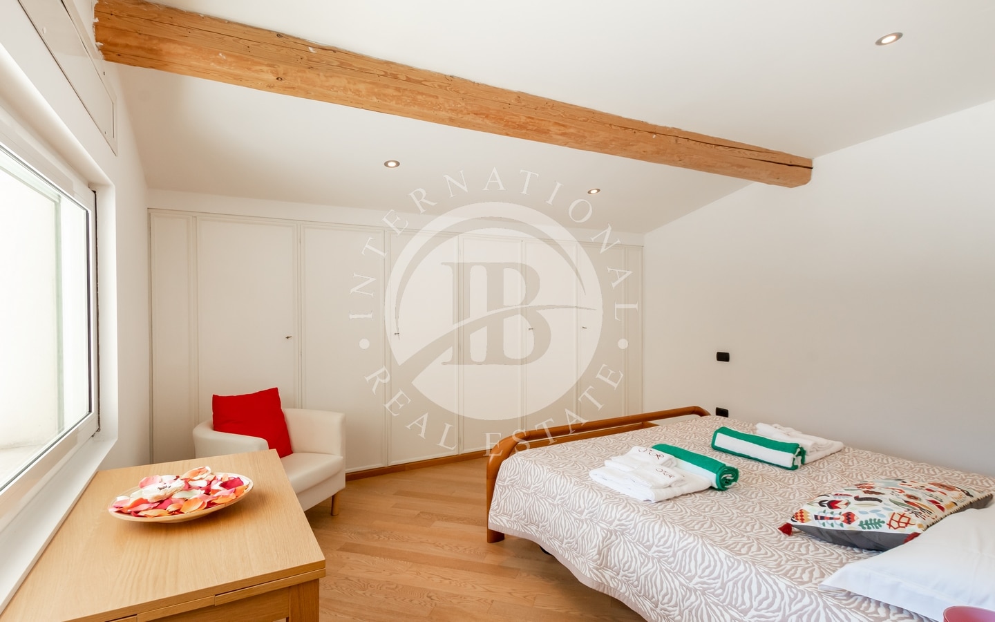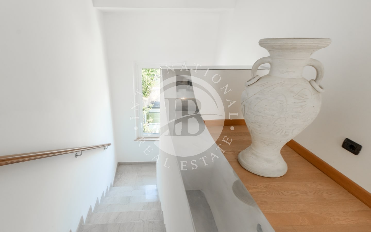 La proprietà principale si estende su una superficie di circa 500 metri quadrati, distribuiti su quattro livelli, e comprende uno splendidoattico oltre a un appartamento per il personale situato al piano seminterrato.