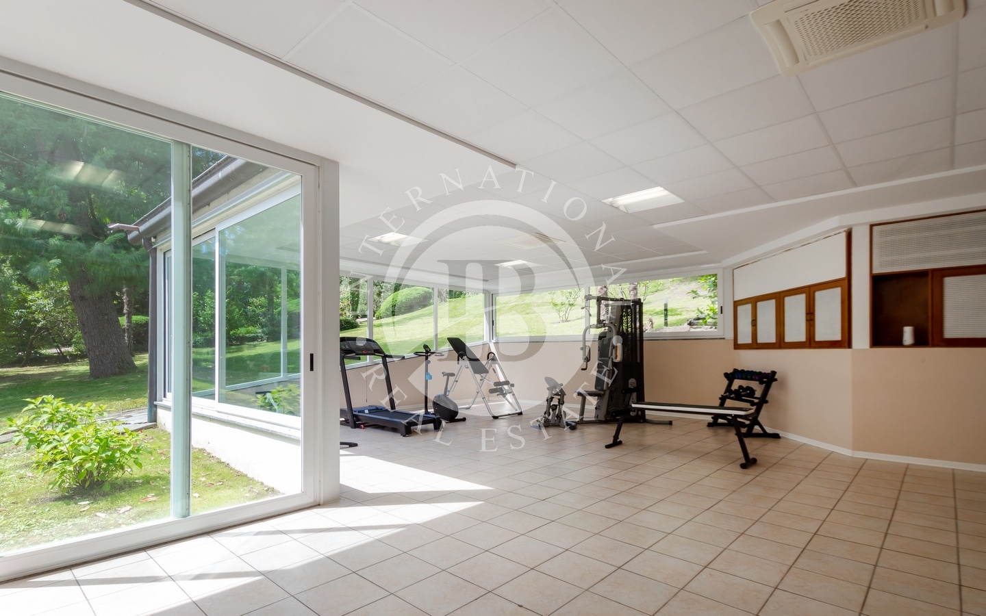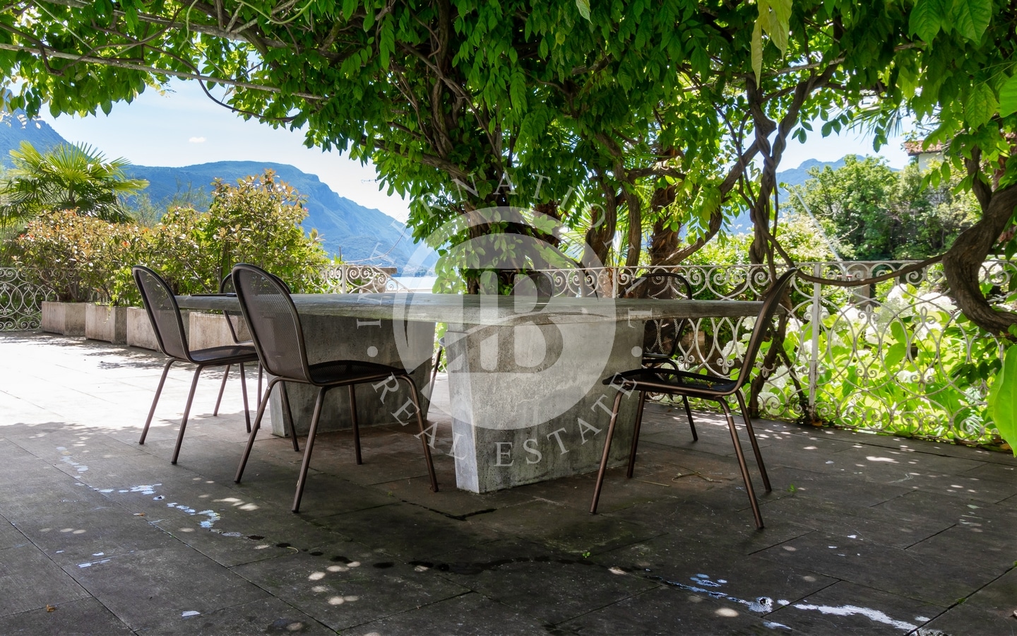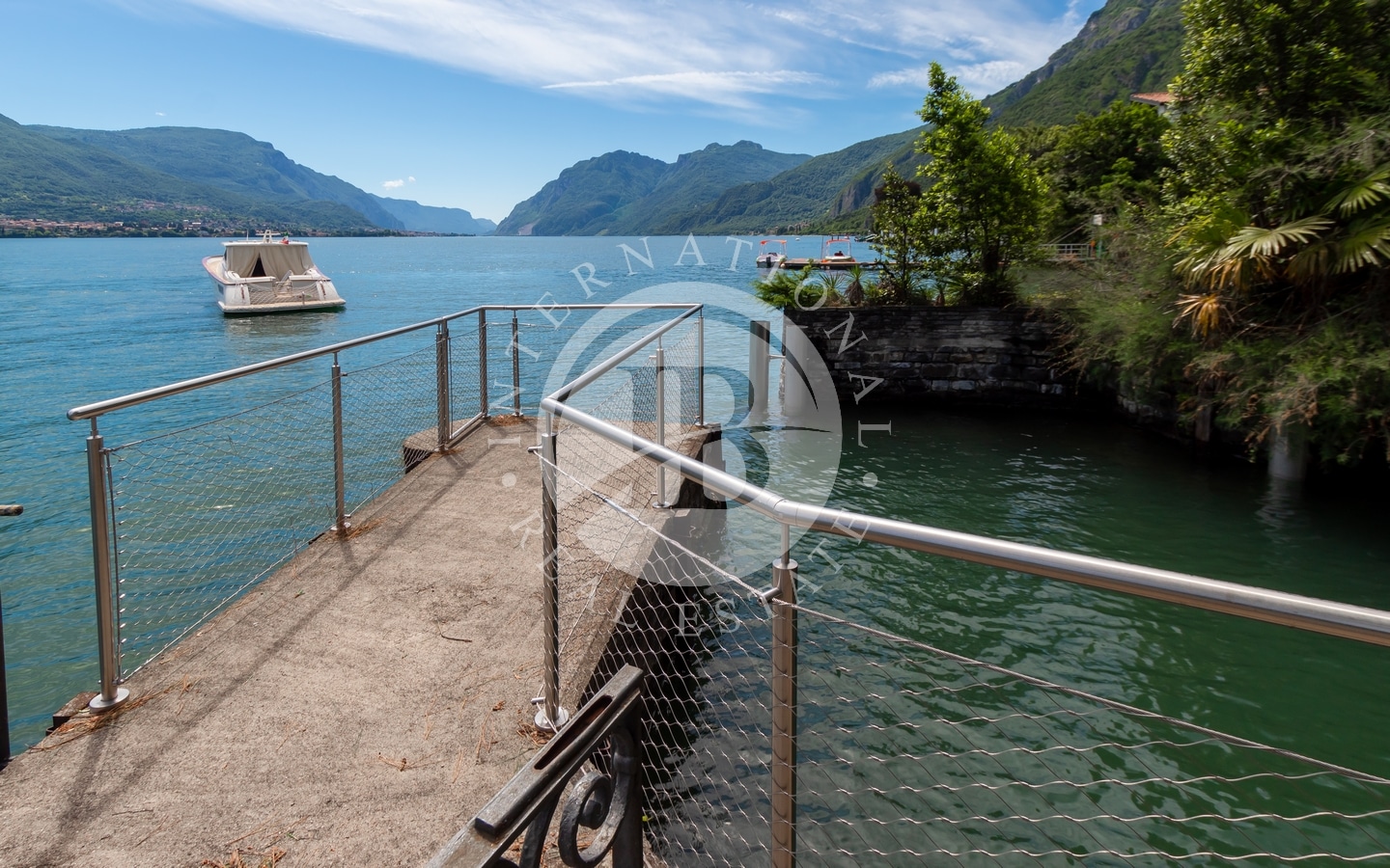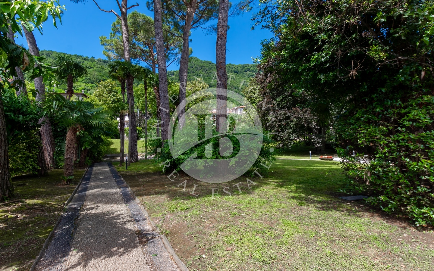A completare la proprietà, un parco pianeggiante di 5.000 mq, finemente piantumato e dotato di illuminazione notturna, con accesso diretto al lago, una dépendance di 120 mq adibita a sala giochi e una darsena di 150 mq.