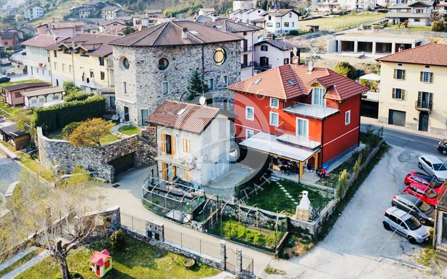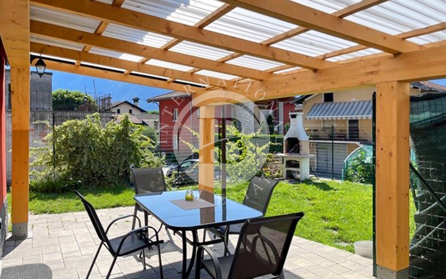 La proprietà si sviluppa su tre livelli, ciascuno di 100 mq, con una cantina e un locale tecnico al piano interrato. Un giardino circostante abbellisce la casa, con un'area parcheggio sul fronte e un'area attrezzata con BBQ e living all'aperto nella zona verso il lago.