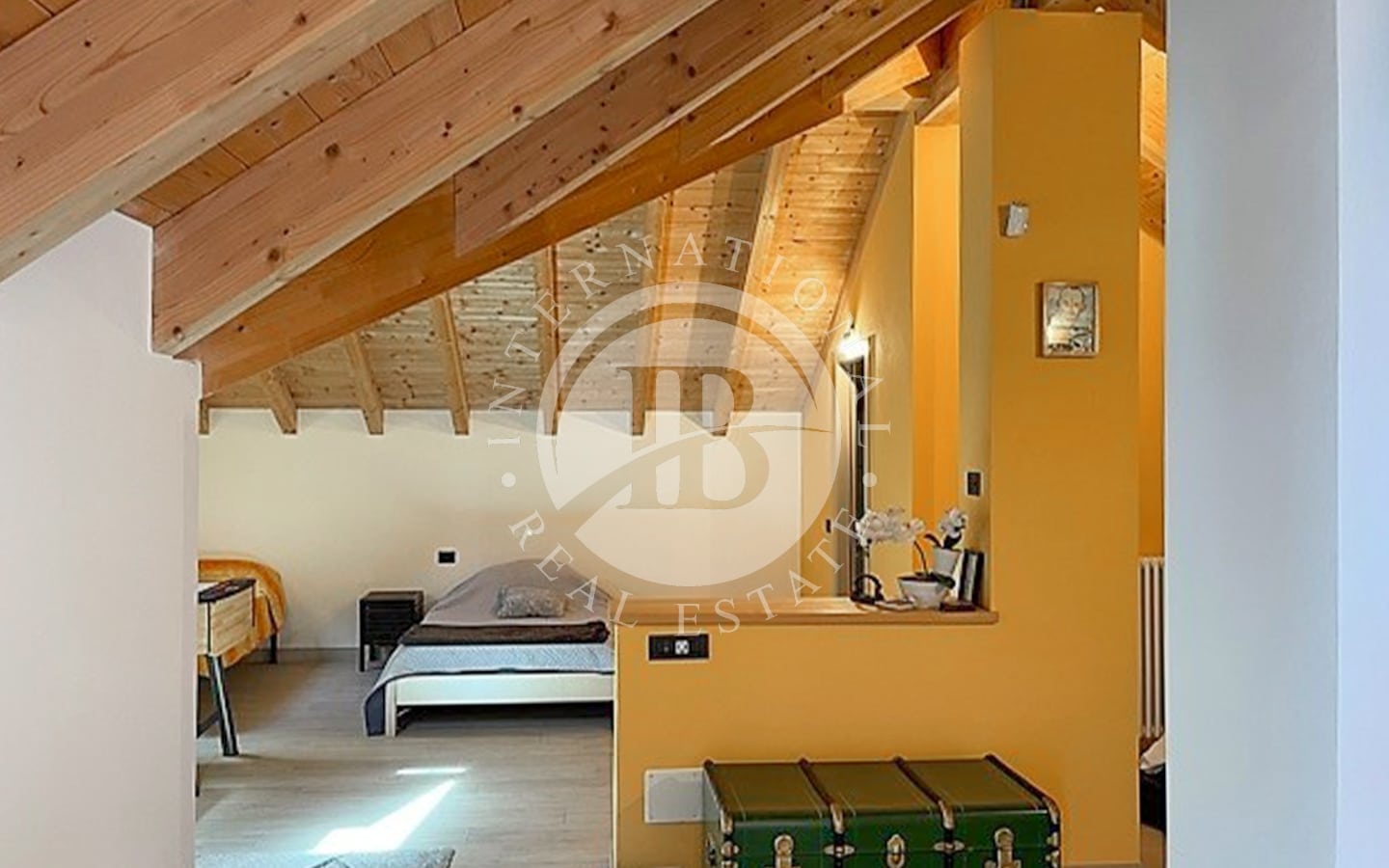 Piano secondo mansardato: Spazioso open-space con travi in legno a vista, predisposizione per zona cucina, bagno, e un terrazzo di 12 mq con una vista mozzafiato sul lago e sulle montagne circostanti.