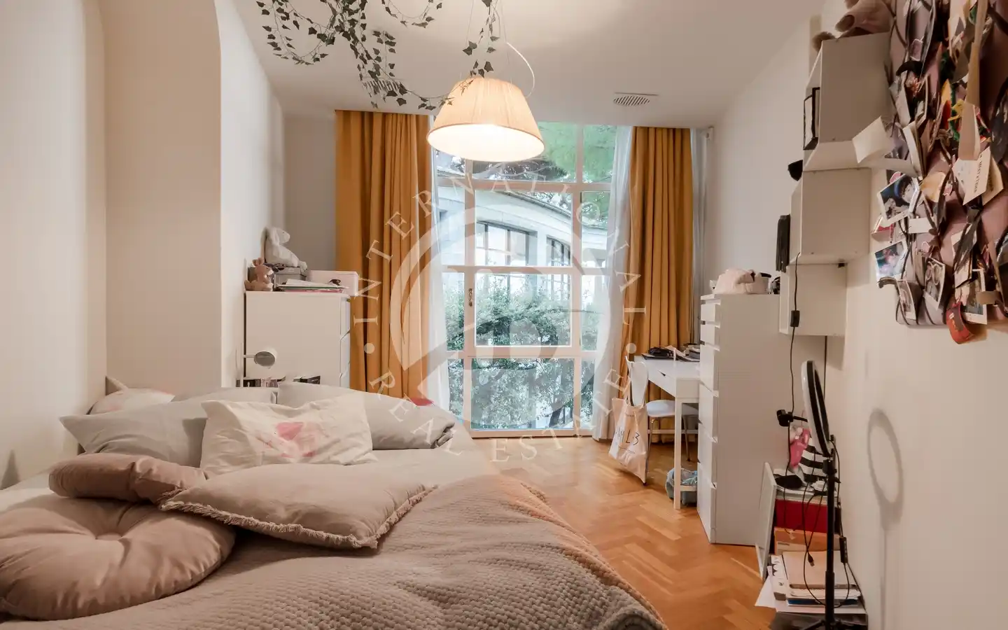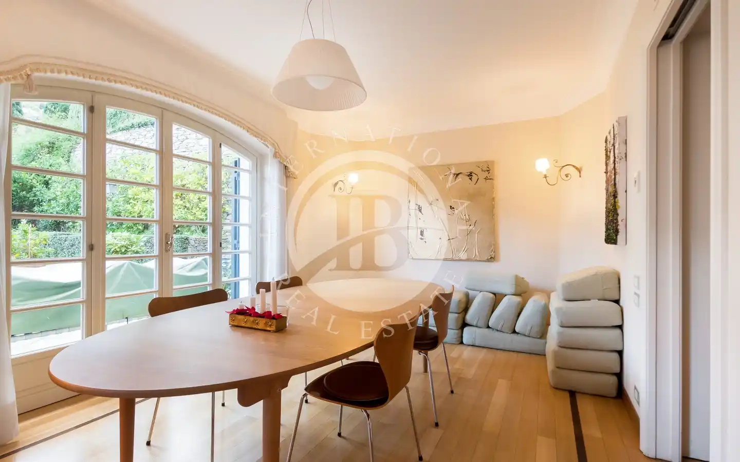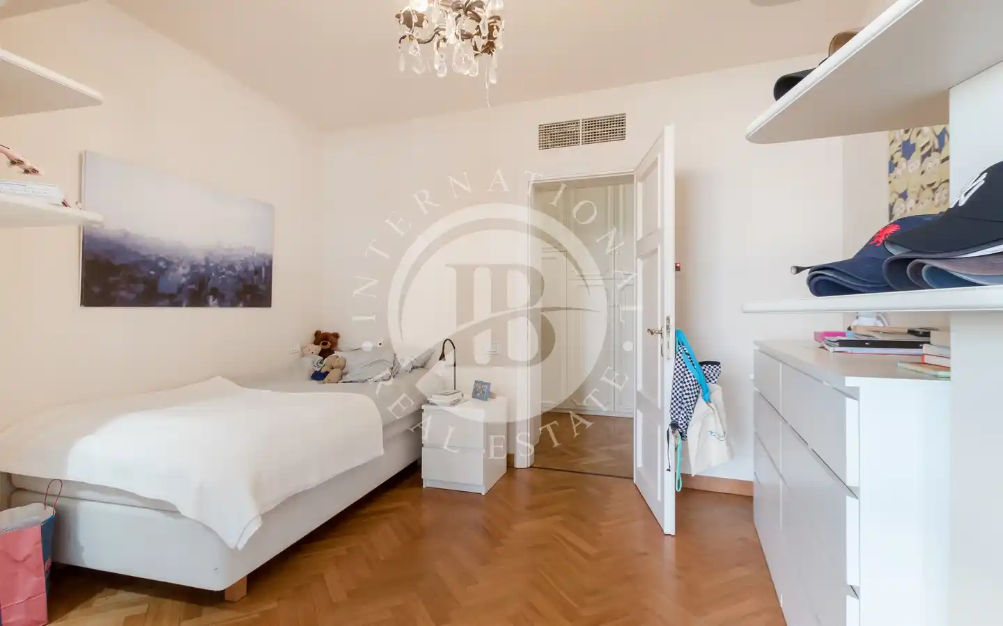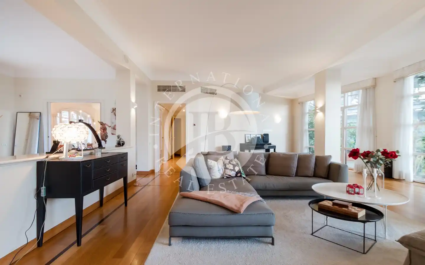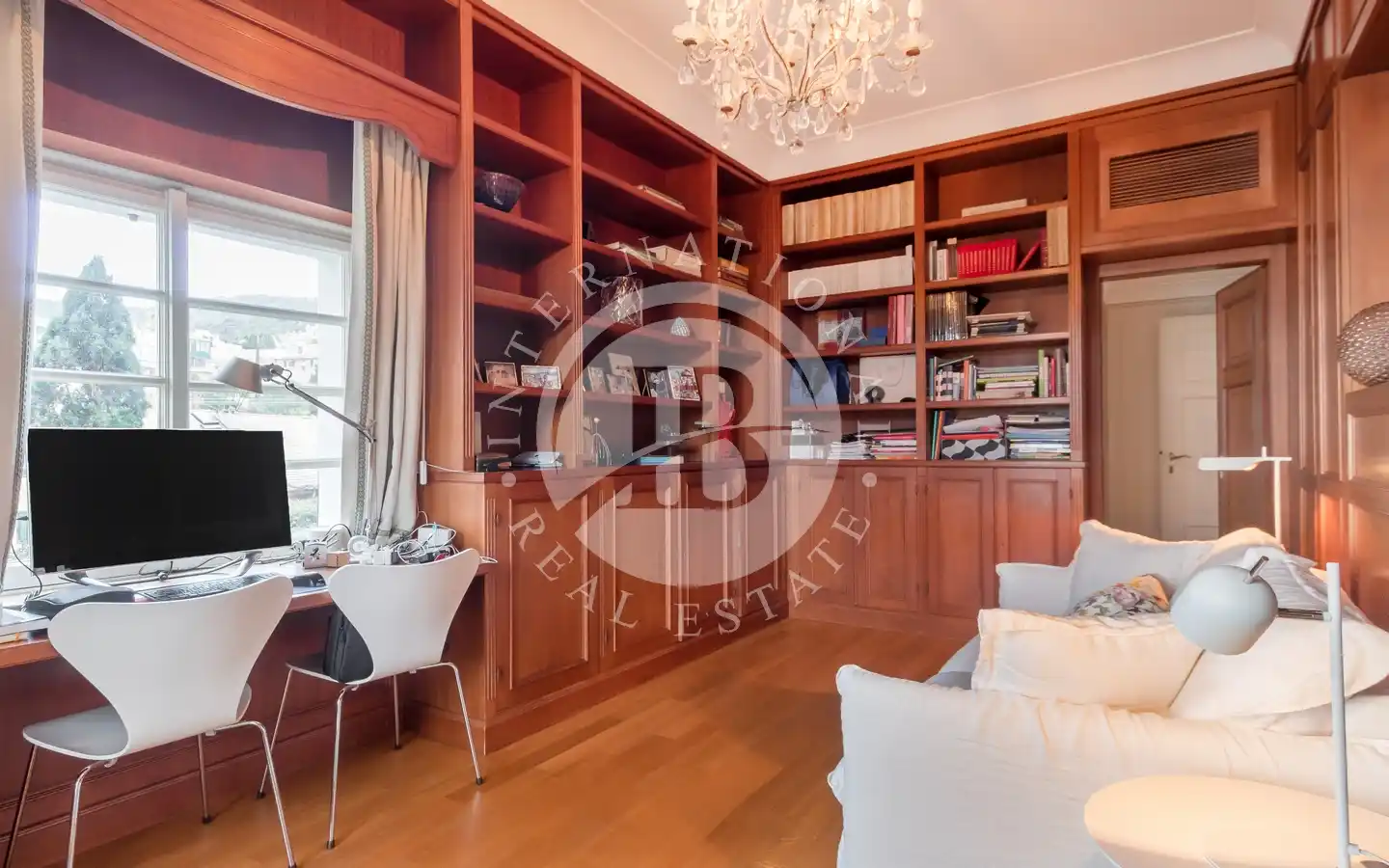 L’appartamento include due posti auto coperti in garage. L’accesso indipendente dal giardino garantisce massima privacy, mentre le finiture di pregio e i dettagli curati in ogni ambiente riflettono il livello esclusivo della proprietà. L’appartamento è disponibile con contratto di affitto residenziale, rendendolo una soluzione ideale per chi cerca un’abitazione elegante in una posizione unica.