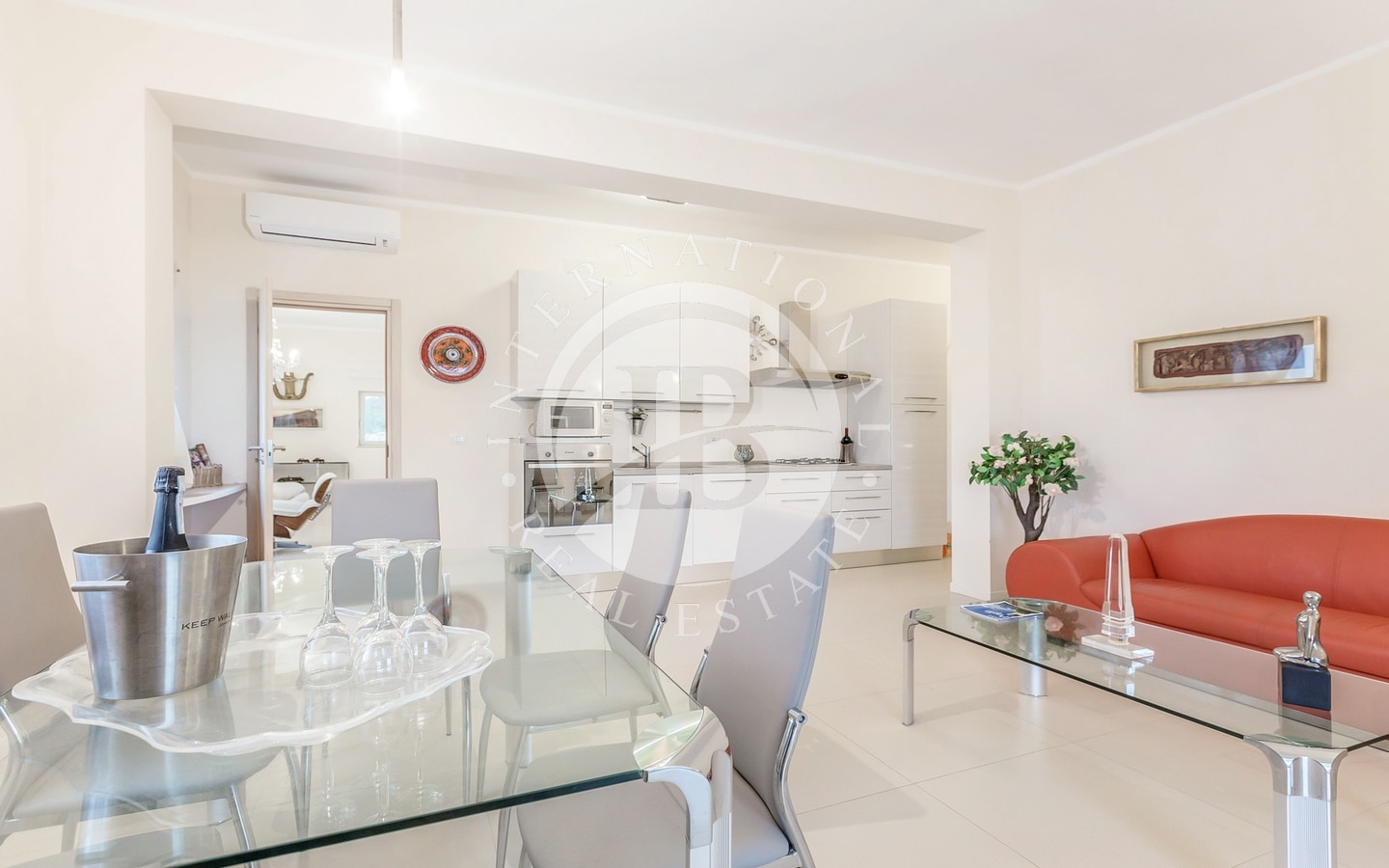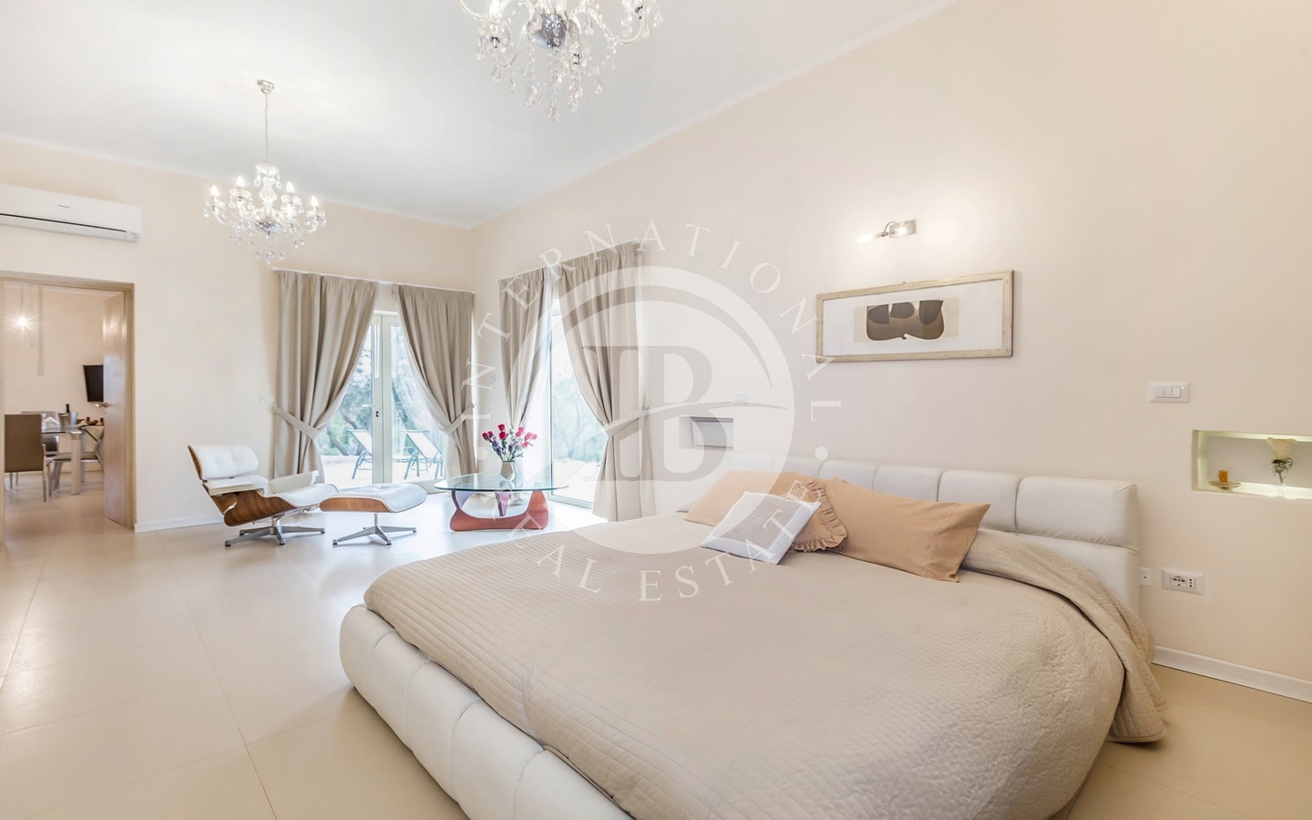 La villa principale è un capolavoro di eleganza e tradizione, con un affaccio unico sul giardino e sull'uliveto circostante.