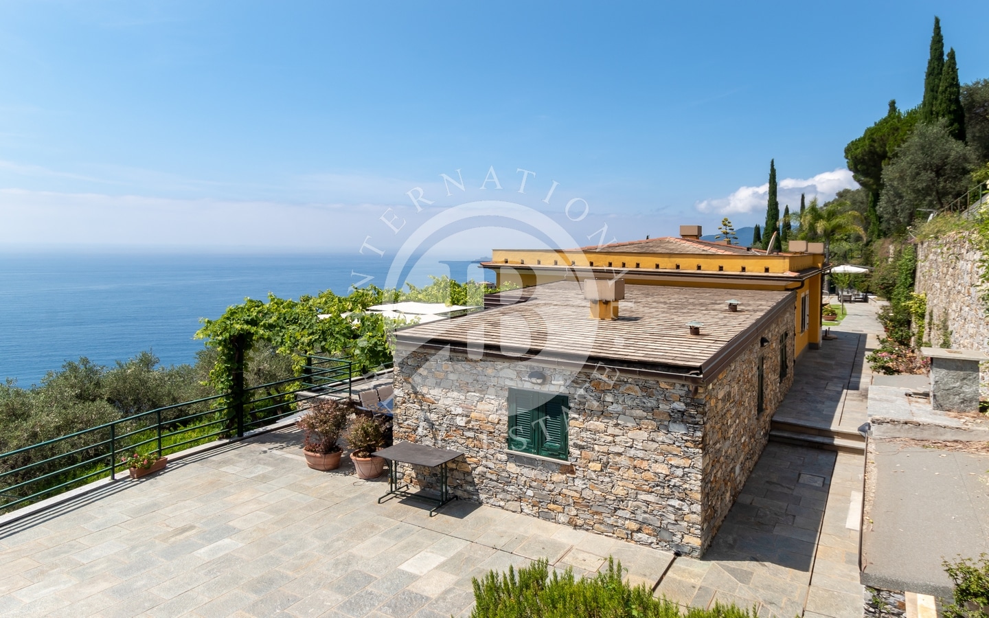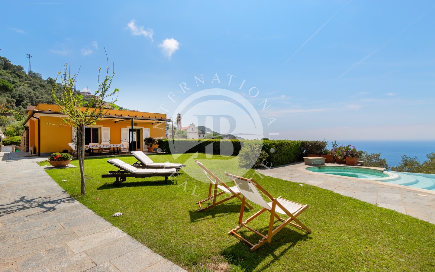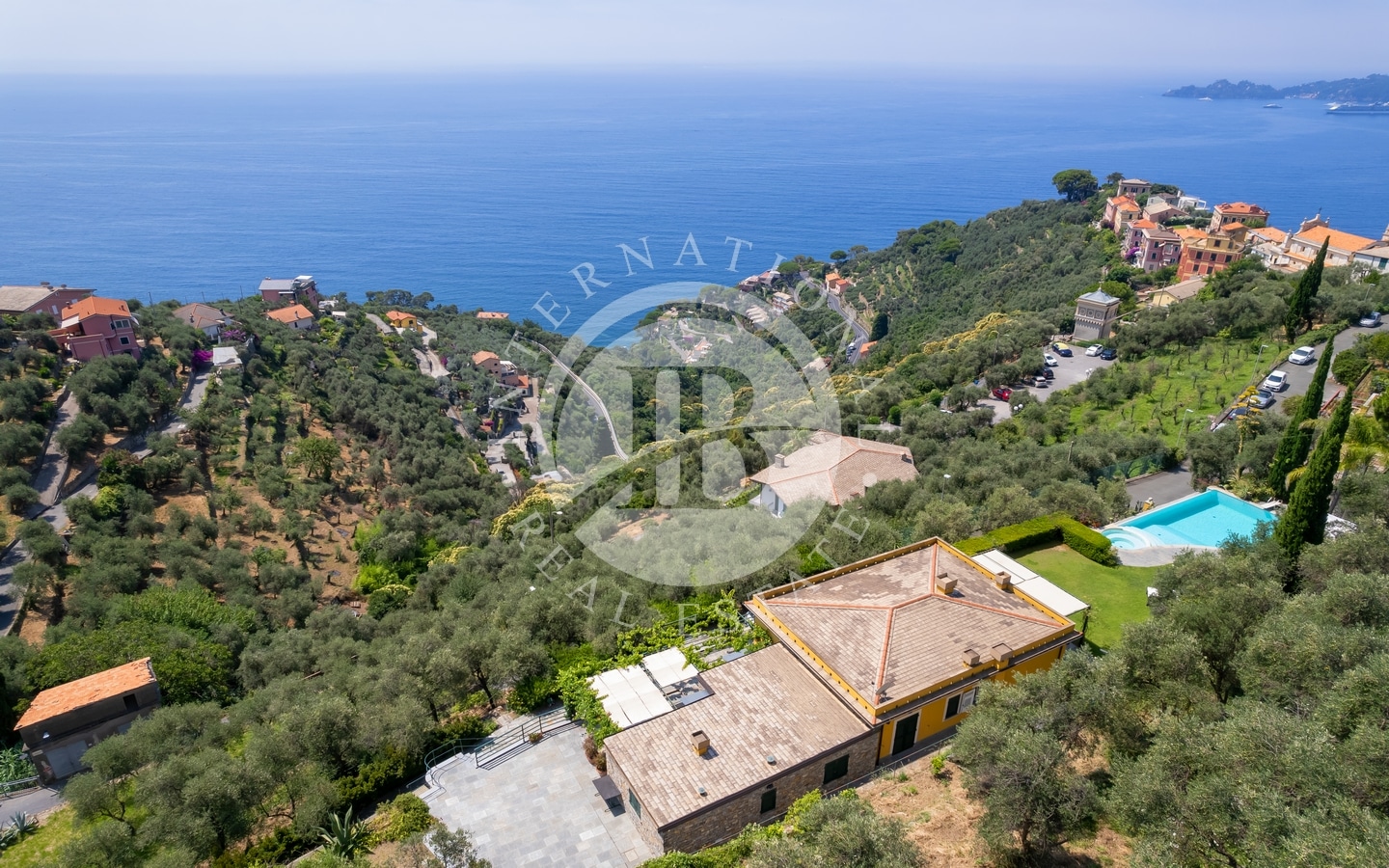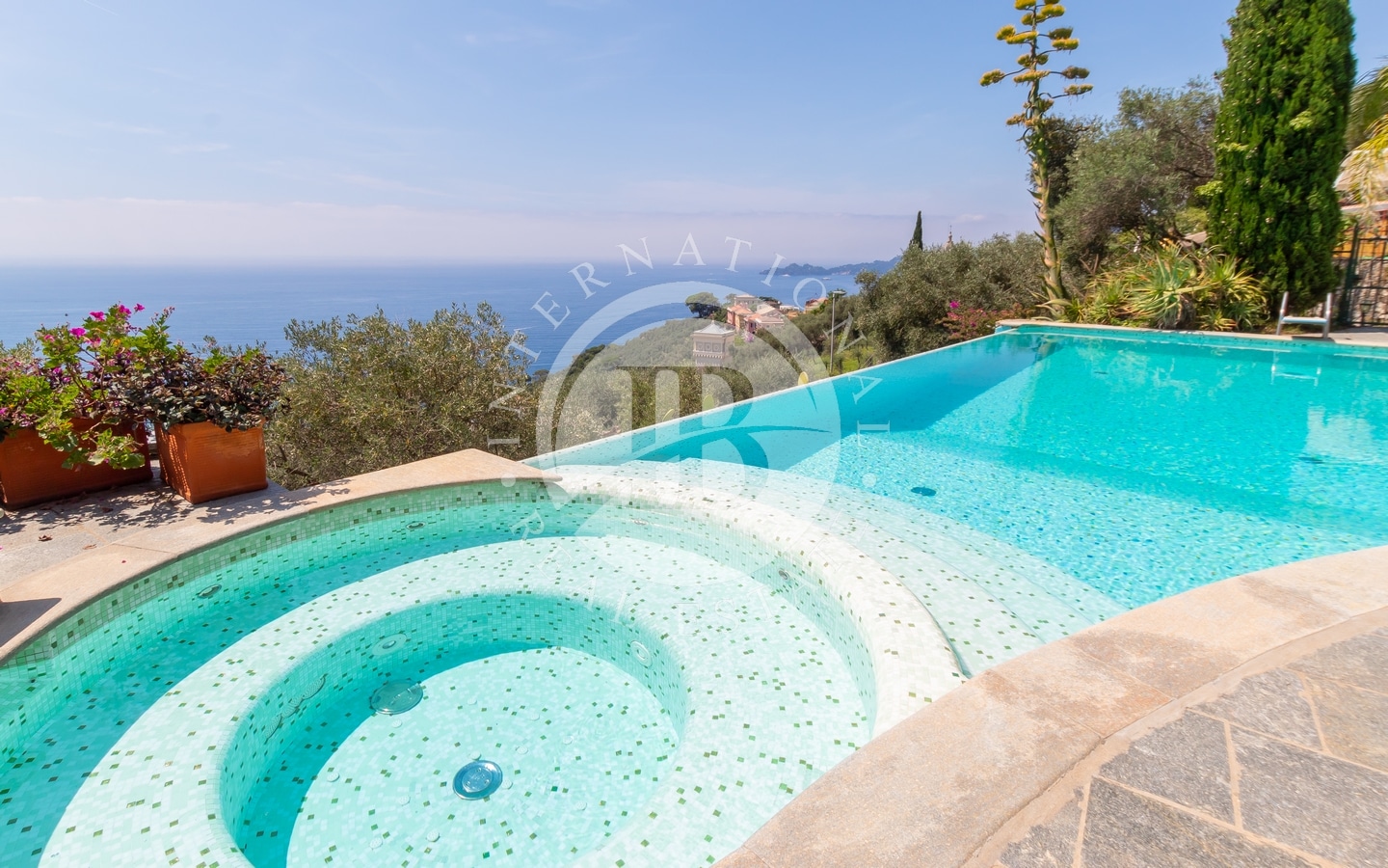 La proprietà è dotata di una spettacolare piscina a sfioro e offre una vista mozzafiato sul mare, che si estende fino al promontorio di Portofino.