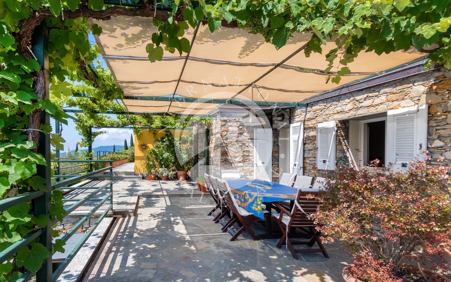 All’esterno, la proprietà offre ampi spazi vivibili, tra cui una splendida terrazza ombreggiata con una zona pranzo all'aperto.
