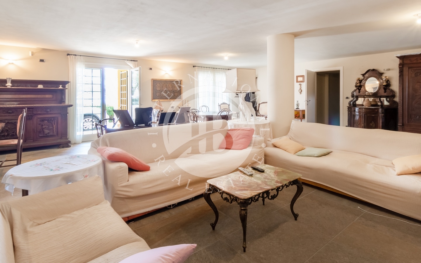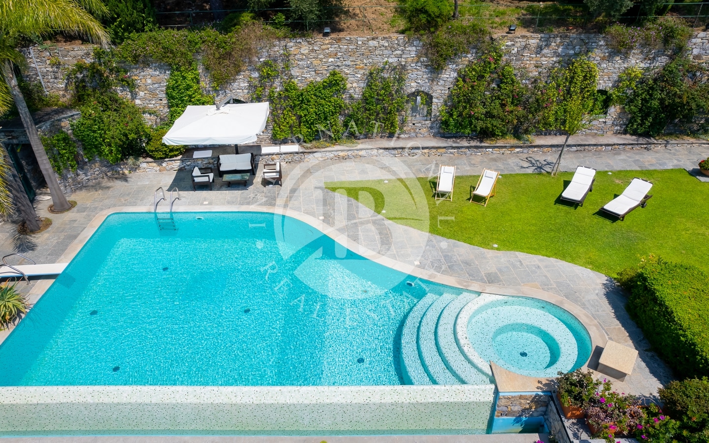 Con una superficie interna di ben 400 mq, distribuiti su due livelli, la villa è circondata da uno straordinario giardino di 4.000 mq che si sviluppa su tutti e quattro i lati.