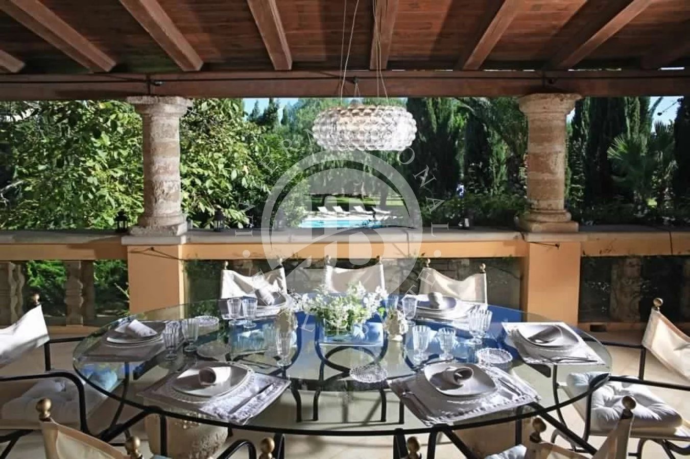 Le auto vengono lasciate nel parcheggio custodito all'interno di cancelli telecomandati. Gli ospiti trascorreranno gran parte del loro tempo tra il meraviglioso patio coperto e arredato e i verdi prati che circondano la grande piscina. L'arredamento della piscina è naturalmente di altissima qualità.