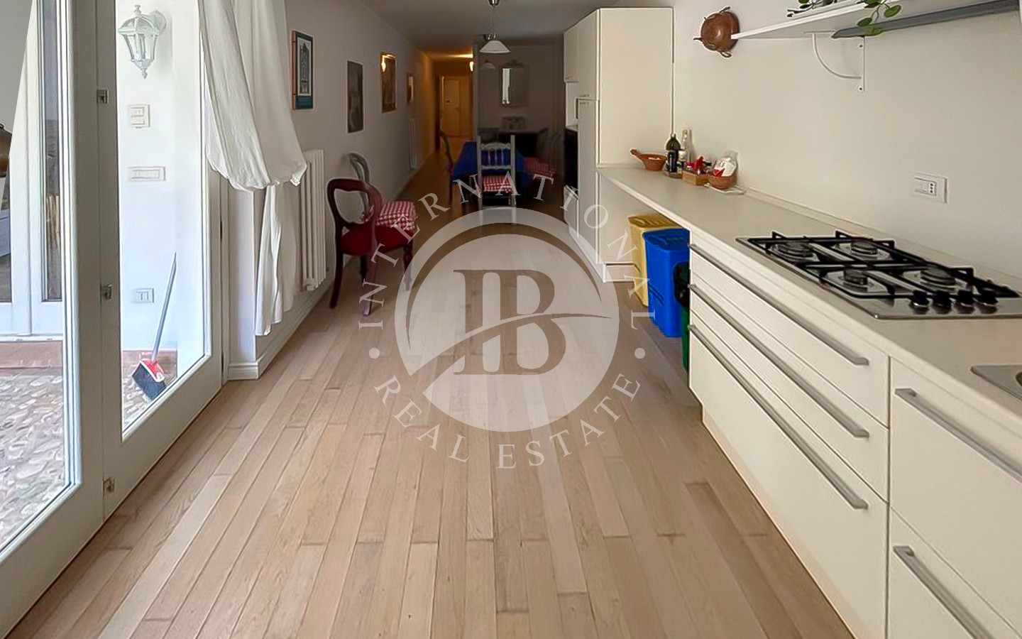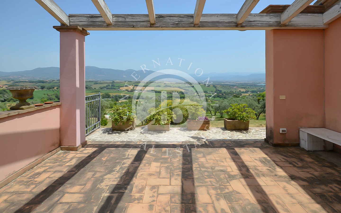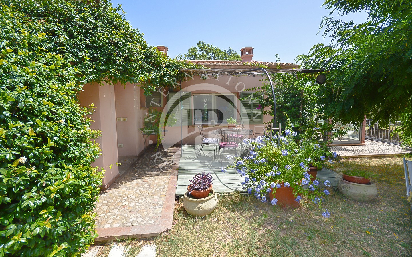 Il piano terra comprende un ingresso, un bagno di servizio, cucina, un ampio soggiorno con un magnifico camino antico del 1500 e travi a vista nel soffitto, con accesso alla grande veranda, un salotto, 2 camere matrimoniali con bagno privato (una con doccia e l’altra con vasca) e terrazza panoramica.