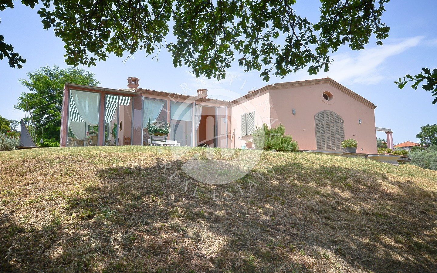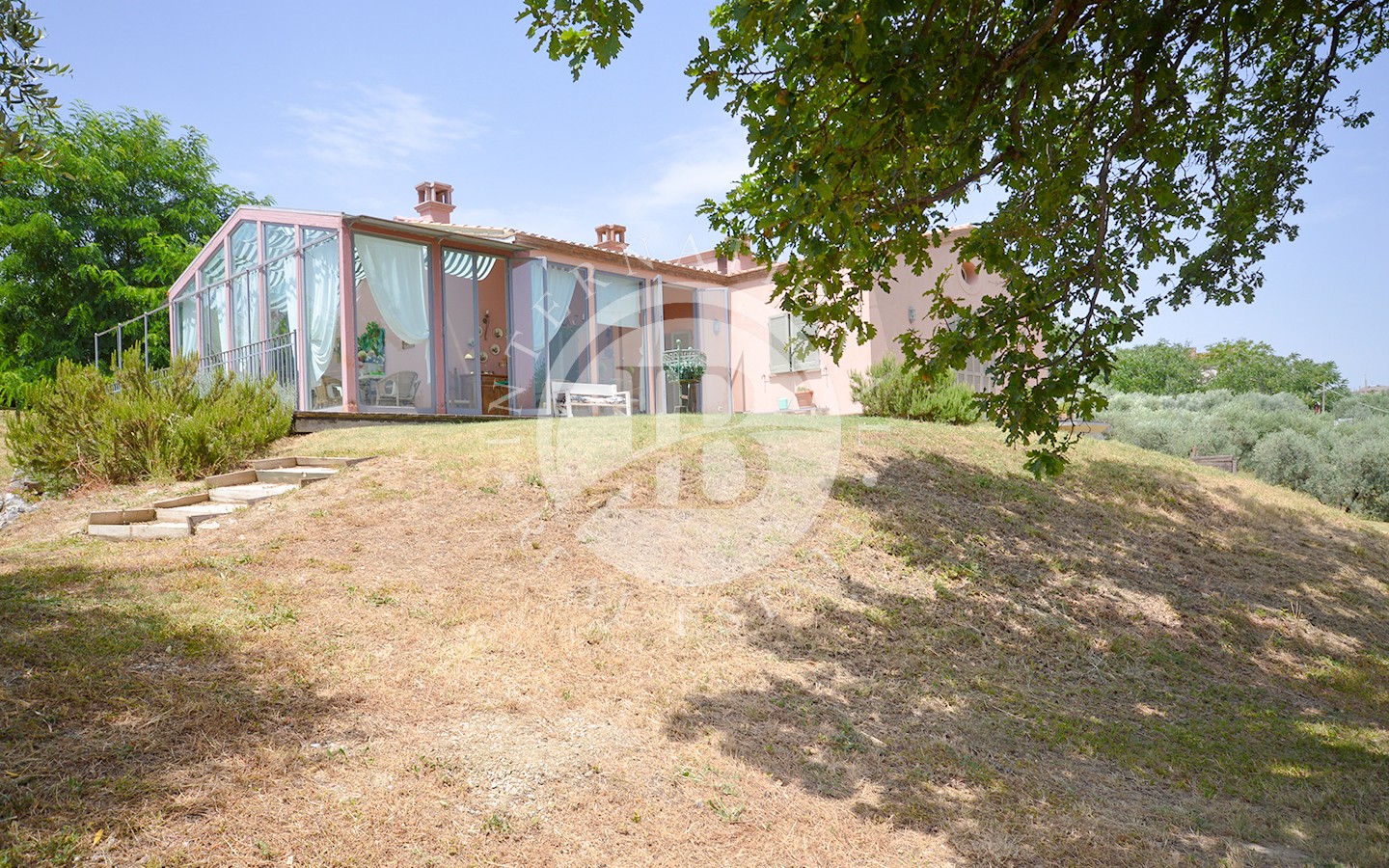 La villa, costruita nel 2011, si presenta in stile moderno, ben mantenuta e circondata da una splendida veranda che si affaccia sulla valle, permettendo di godere del panorama anche nei mesi invernali. La superficie della villa è di circa 600 mq distribuiti su 2 piani, arredati in stile antico e suddivisi in un seminterrato con accesso indipendente e un piano terra.
