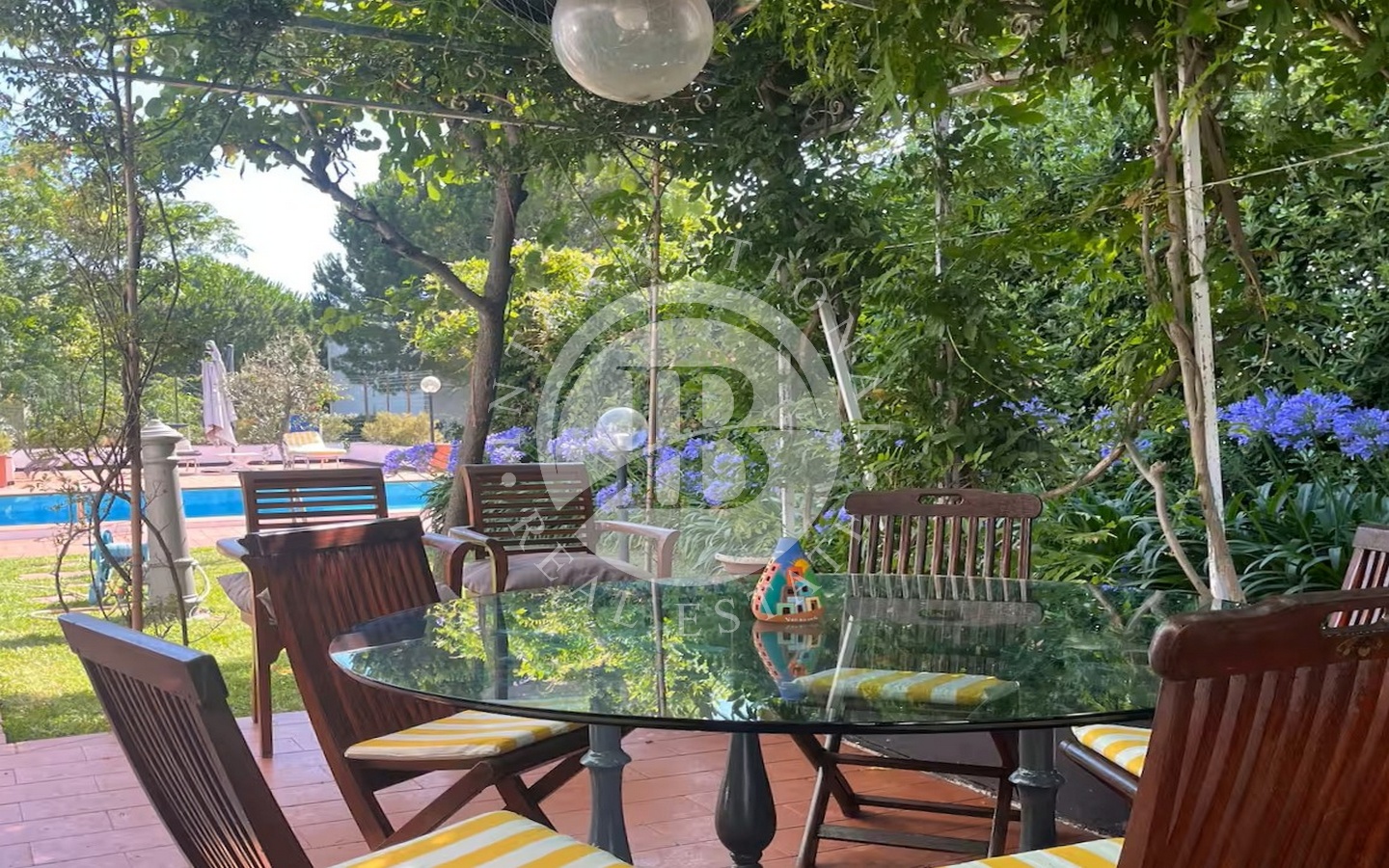 All’interno della riservata e verdeggiante Pineta di Arenzano, questa prestigiosa villa ha ampi spazi esterni, piscina, box e area parcheggio.