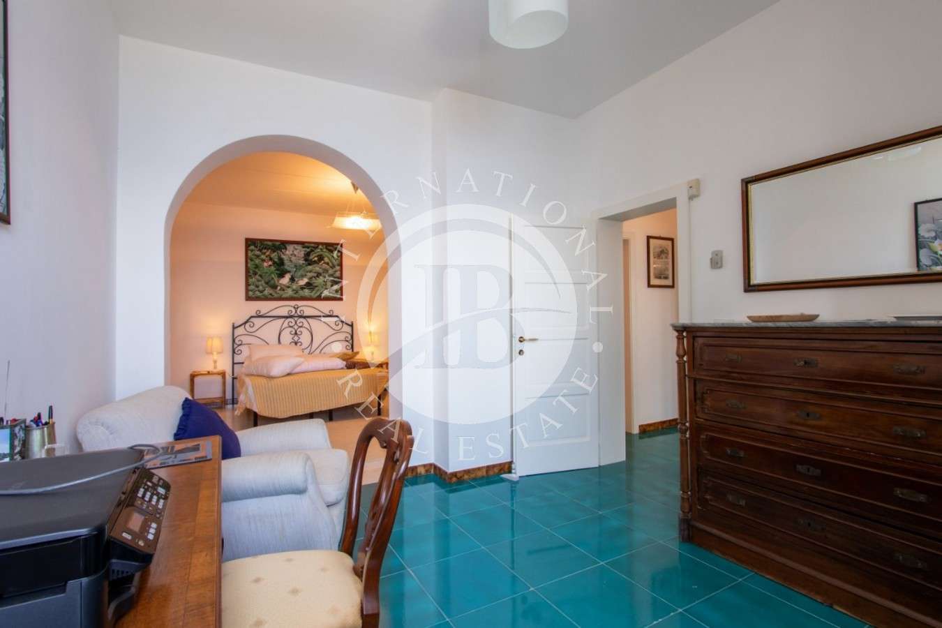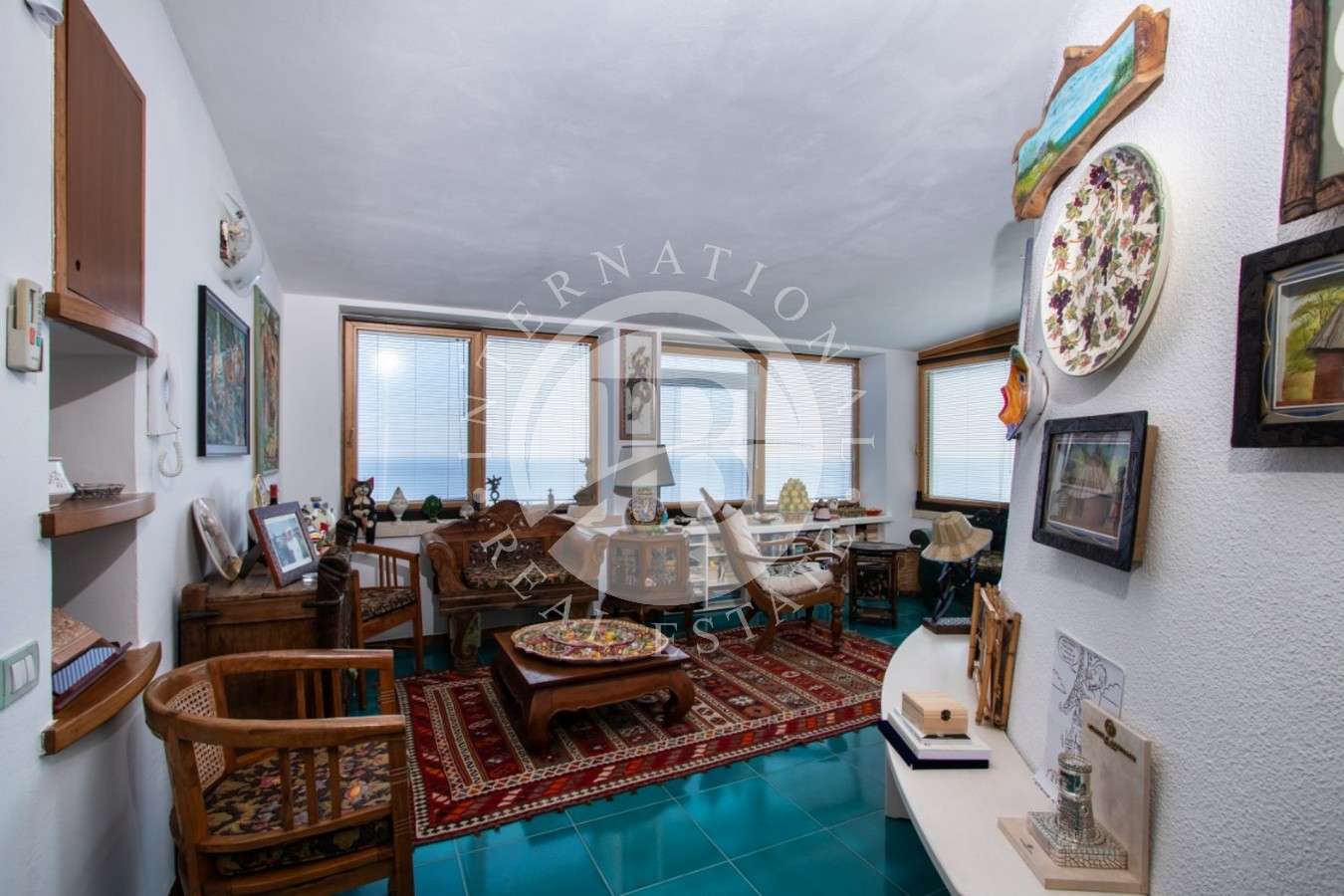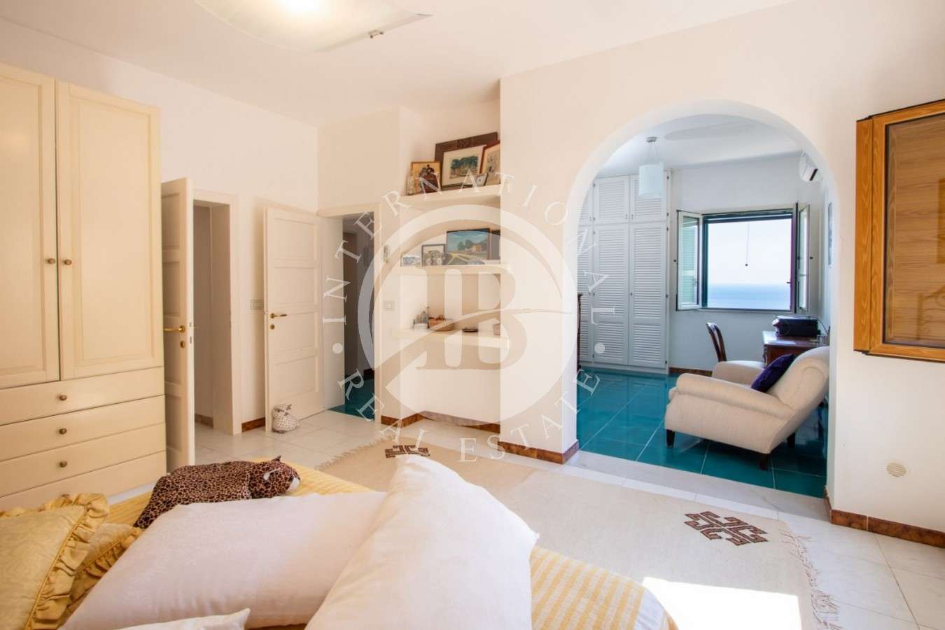Distribuita su tre livelli fronte mare, la villa dispone di ampi terrazzi su ogni piano. Il primo livello accoglie un ingresso con ascensore, soggiorno con vetrate panoramiche, sala TV con camino, camera padronale e bagno. Il secondo livello comprende soggiorno, cucina, due camere matrimoniali e bagno con terrazzo vista mare. Il terzo livello ospita soggiorno, cucina, due camere (una matrimoniale) e bagno, con terrazzo affacciato sul mare. Finestre e porte esterne in tutti gli ambienti, con possibilità di pergolati, barbecue o jacuzzi sui terrazzi.