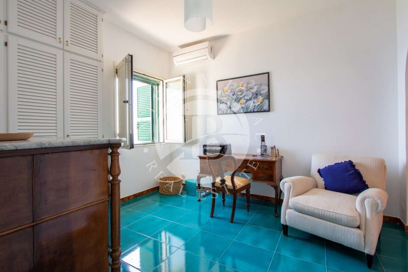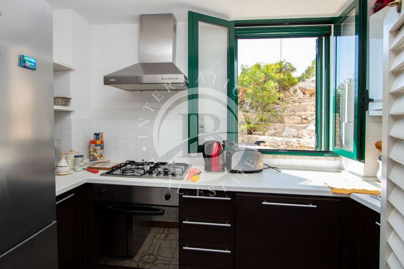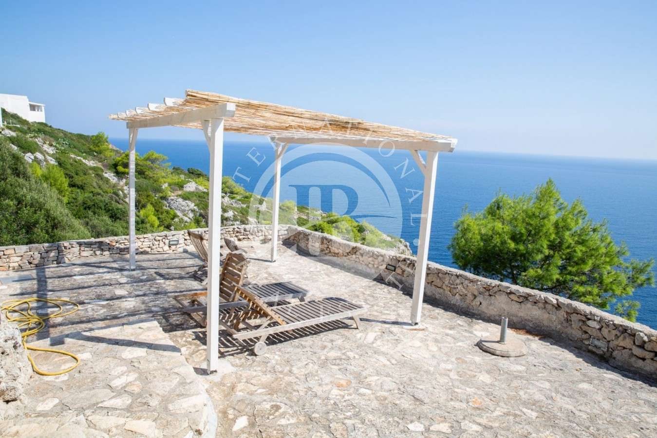 La villa, perfettamente ristrutturata, si presta ad attività ricettive di lusso. Ogni livello è fruibile con spazi ampi e finiture di pregio. I terrazzi, attrezzati con tende apribili, offrono momenti di relax e colazioni al sorgere del sole. La proprietà è dotata di ascensore, garantendo un accesso agevole ai vari livelli. La posizione strategica permette di ammirare la prima isola greca nelle giornate di sole.