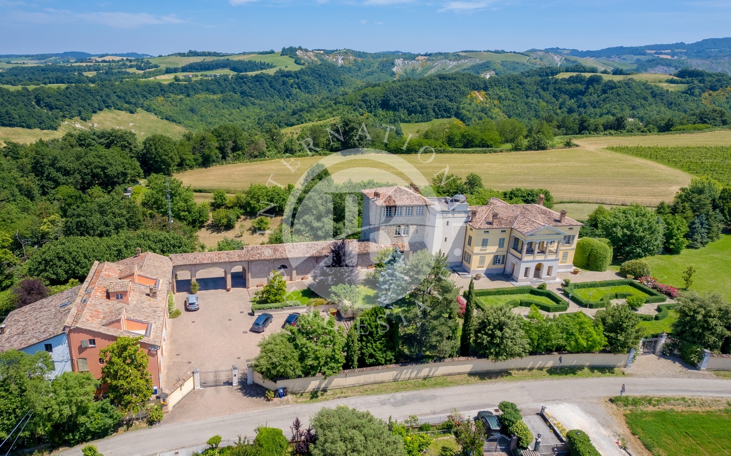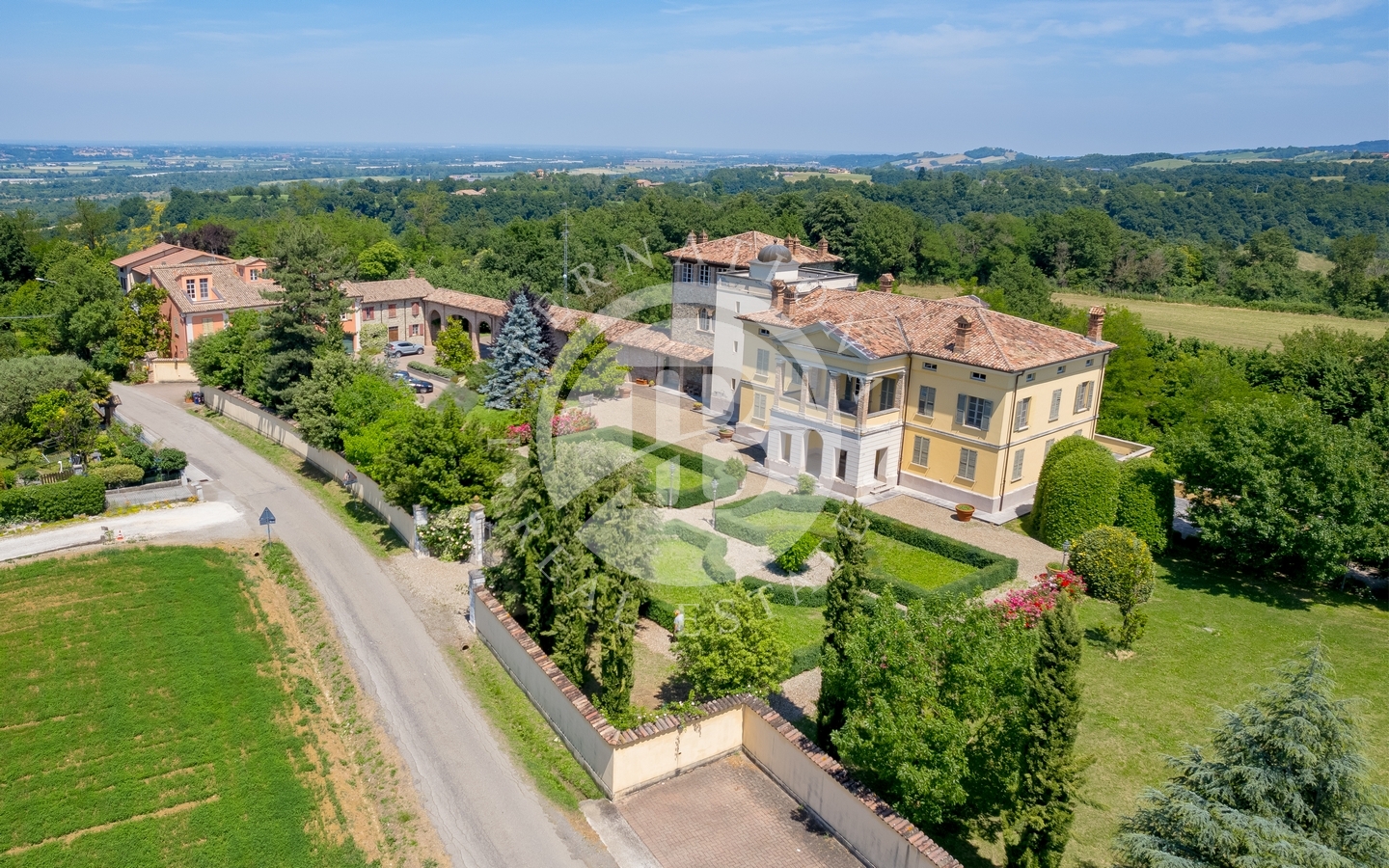 Immersa nella quiete di un altopiano tra le colline argillose della provincia di Parma, questa prestigiosa villa di lusso è circondata da un parco privato di 20 ettari e da un rinomato vigneto produttivo. Un'eleganza senza tempo, firmata dall'architetto Bontempi, caratterizza ogni dettaglio di questa proprietà esclusiva.