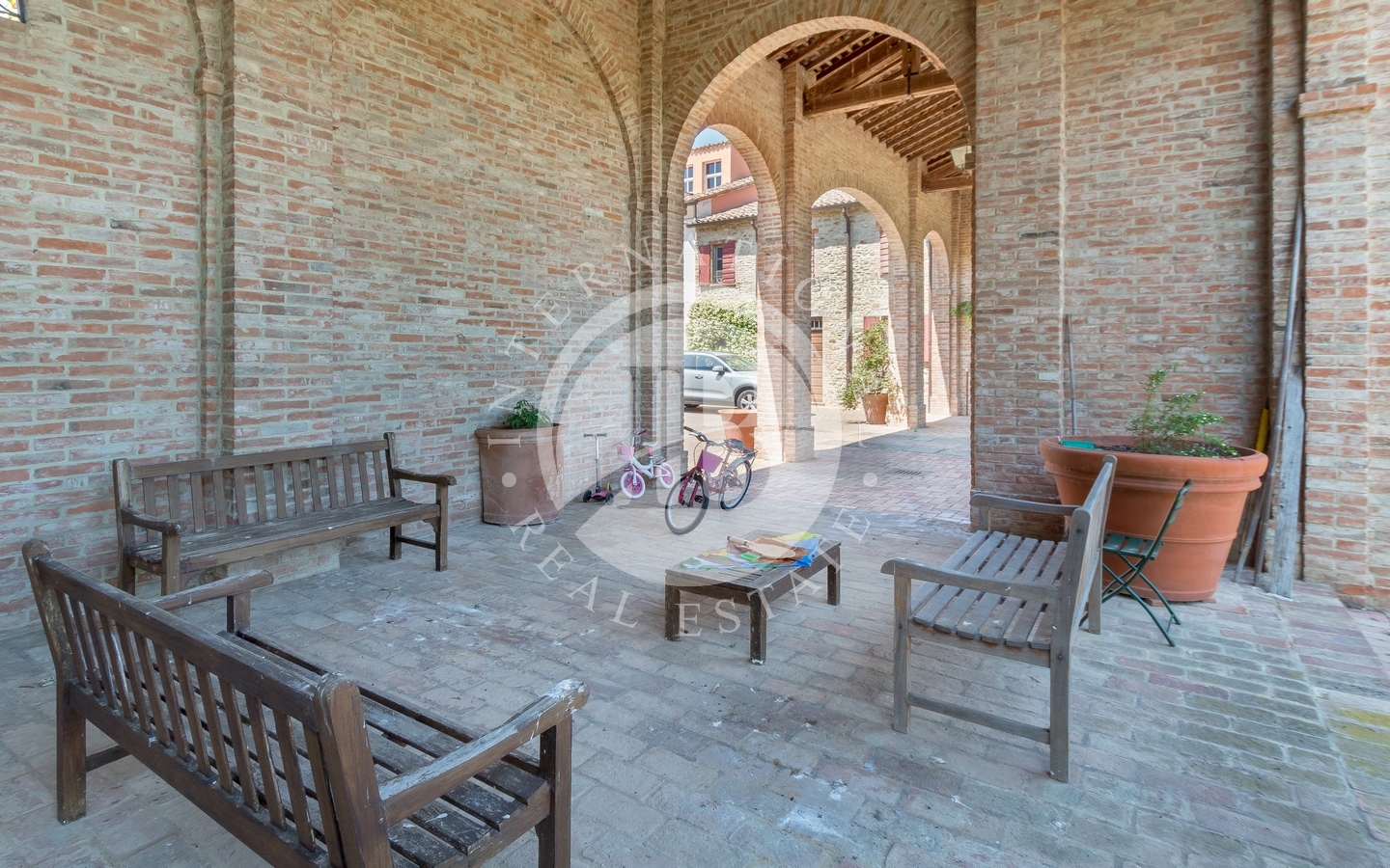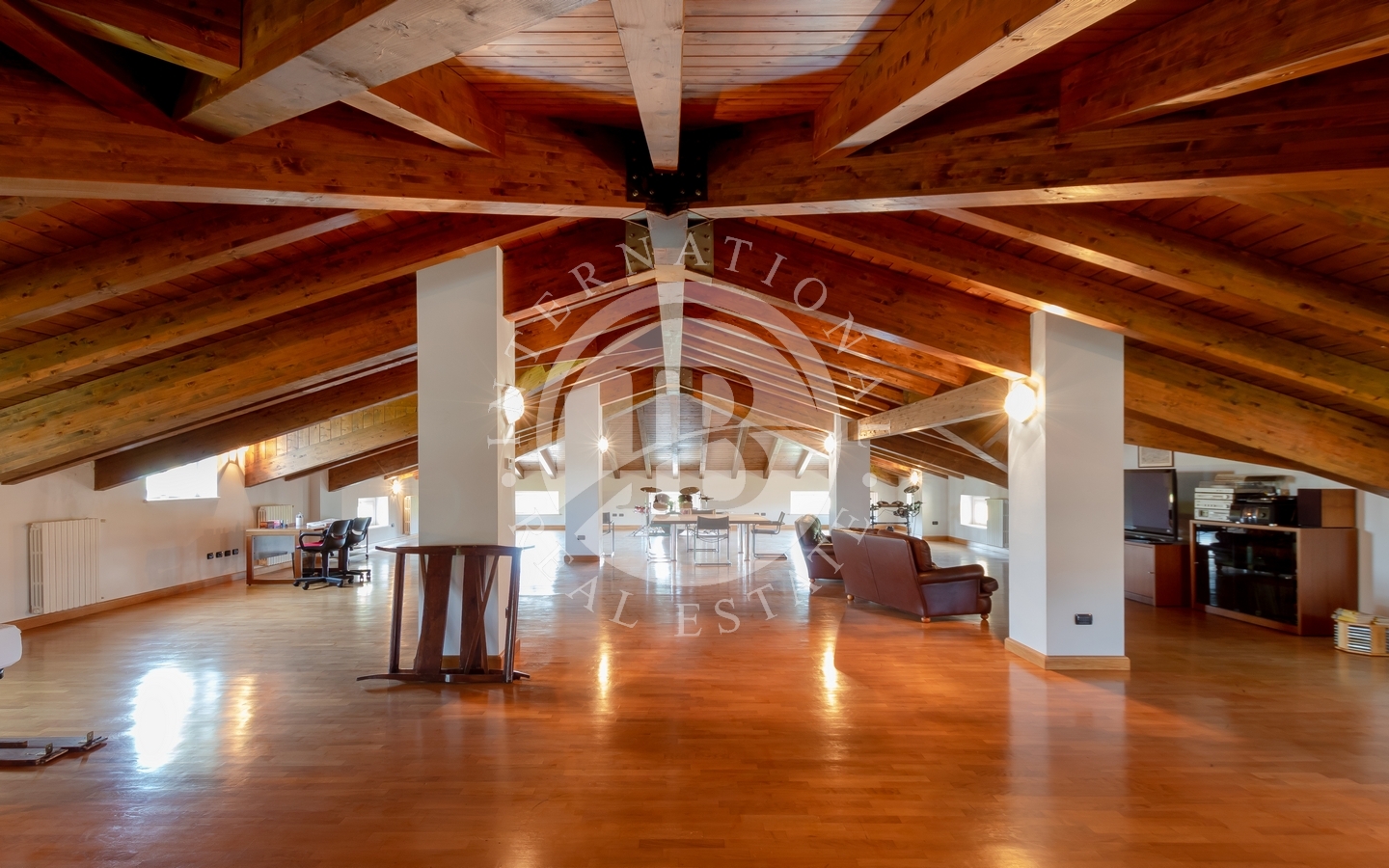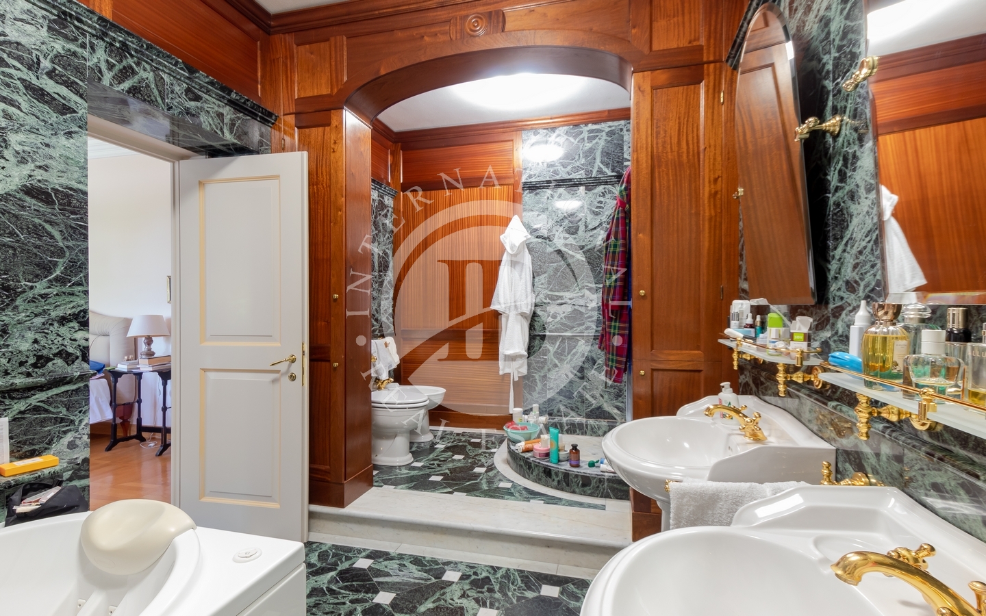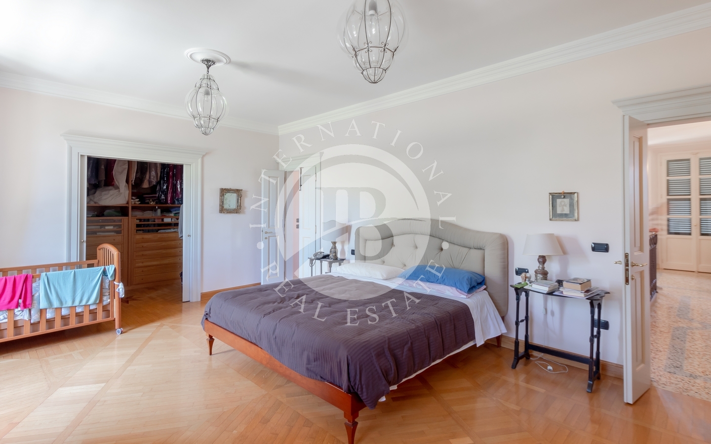 La villa principale si sviluppa su due livelli collegati da ascensore interno. Il piano terra accoglie un sontuoso ingresso, una spaziosa cucina, un salone nobile e una raffinata sala da pranzo impreziosita da camino. Al piano superiore, la zona notte ospita la camera padronale e sette camere da letto luminose, grazie alla perfetta esposizione. L’ultimo piano è dedicato a una suggestiva biblioteca e a un affascinante open space di 250 mq. Finiture di altissimo pregio, progettate da Bontempi, includono pavimenti in marmo decorato a mano, parquet, cotto antico e travi in legno monumentali. Completano la residenza una cantina e un ampio garage di circa 200 mq.