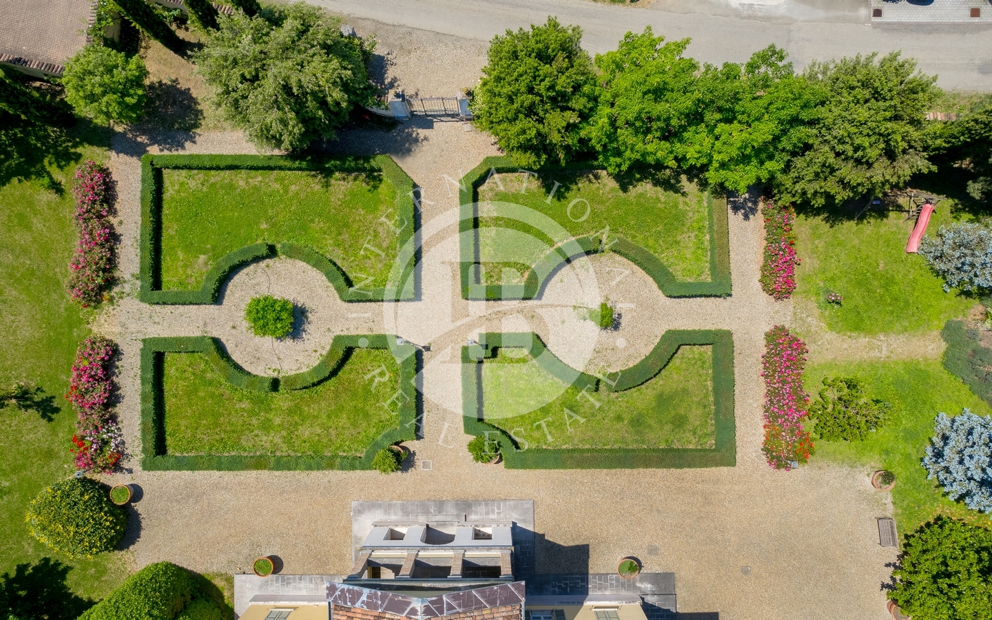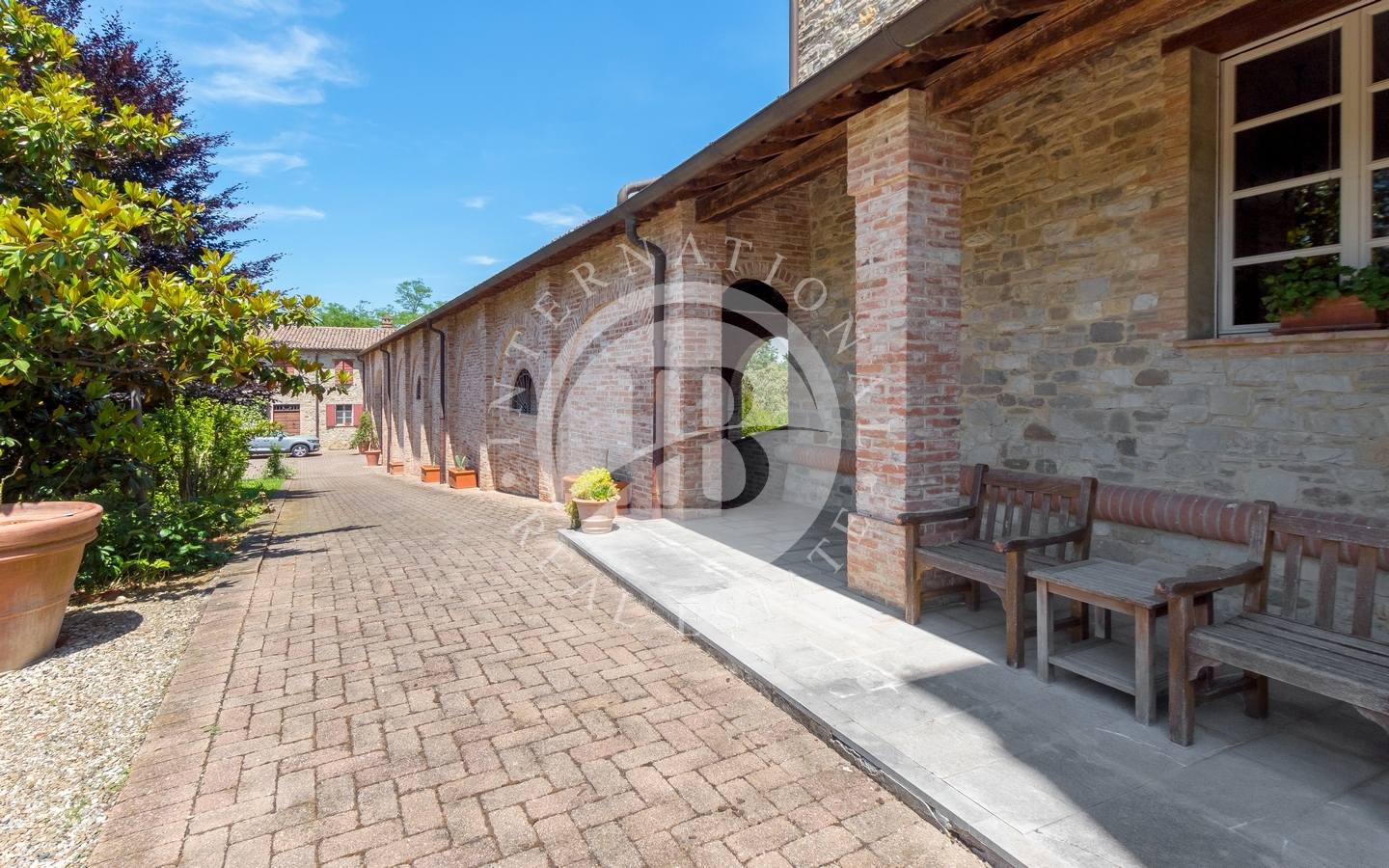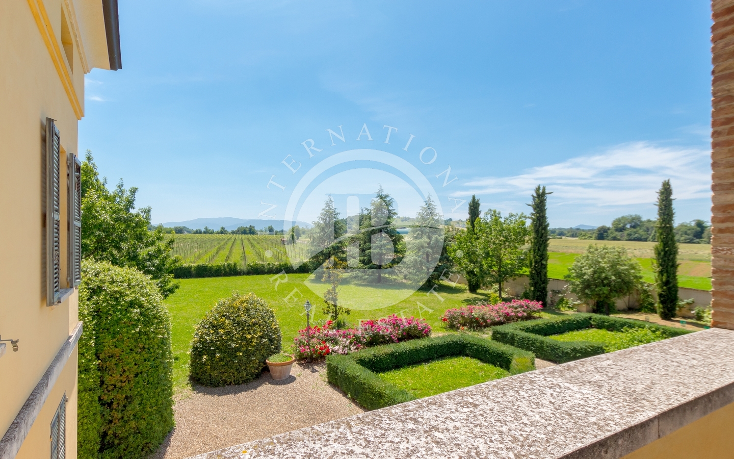 All’esterno, un perfetto giardino all’italiana conferisce armonia e prestigio alla tenuta. I 20 ettari di terreno garantiscono assoluta privacy e ospitano un rigoglioso vigneto di circa 4 ettari. La proprietà include anche una torre di guardia, una dependance e una cantina per la vinificazione progettata secondo un’idea architettonica contemporanea. Gli spazi esterni offrono la possibilità di realizzare una piscina o un eliporto, valorizzando ulteriormente il carattere esclusivo della residenza.