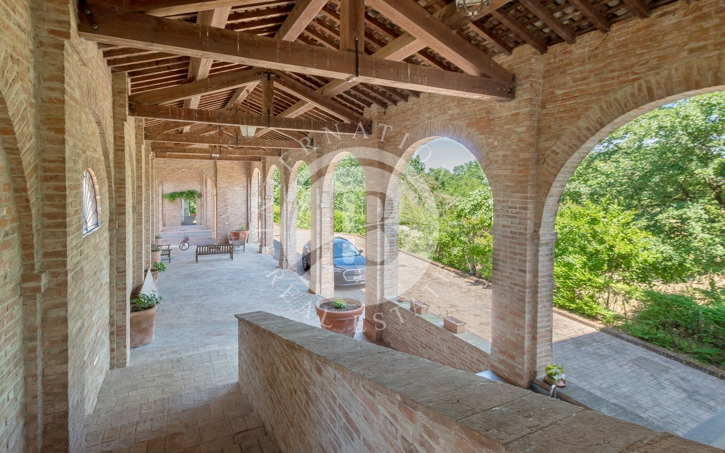 Completamente arredata con mobili di pregio, la villa vanta elementi architettonici unici come comignoli disegnati e premiati, tetti multilivello su misura e dettagli artigianali di raro valore estetico. Ogni ambiente è stato pensato per offrire bellezza e funzionalità. La cantina di vinificazione, firmata Bontempi, rende questa tenuta ideale anche per chi desidera unire la vita di campagna alla produzione enologica di alto livello.