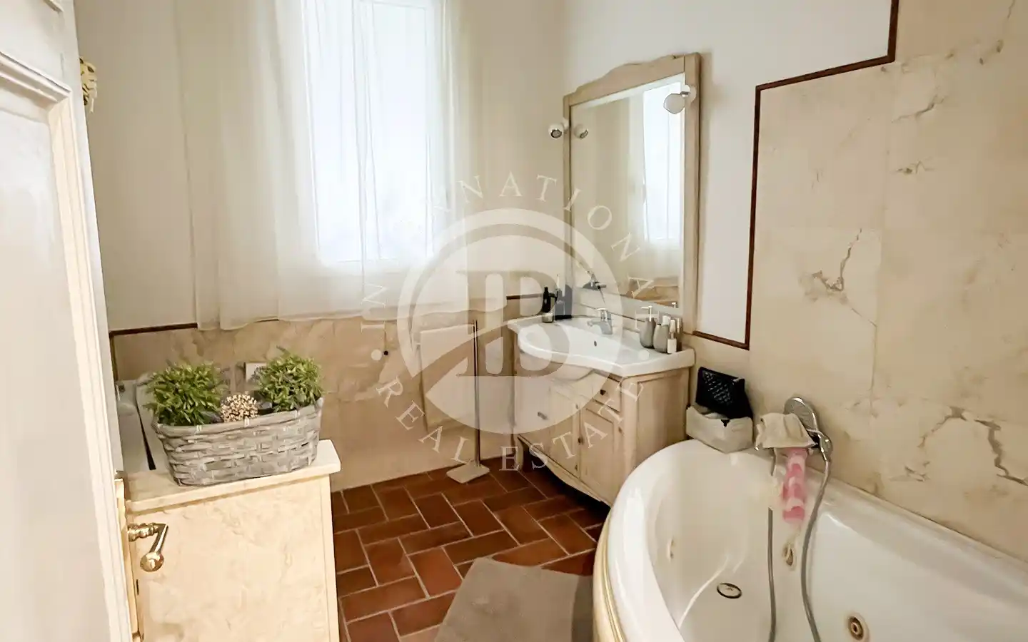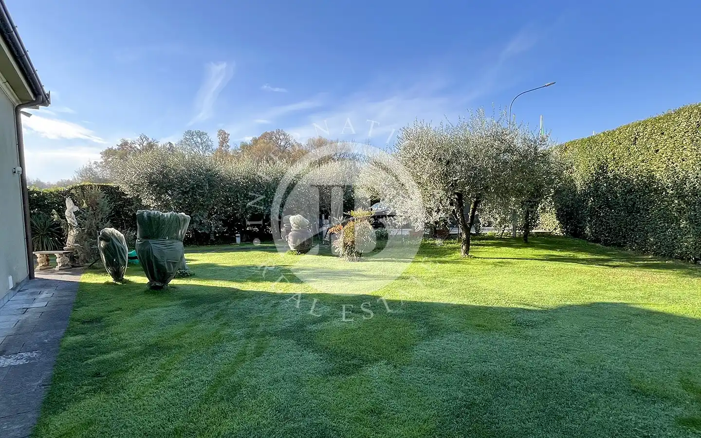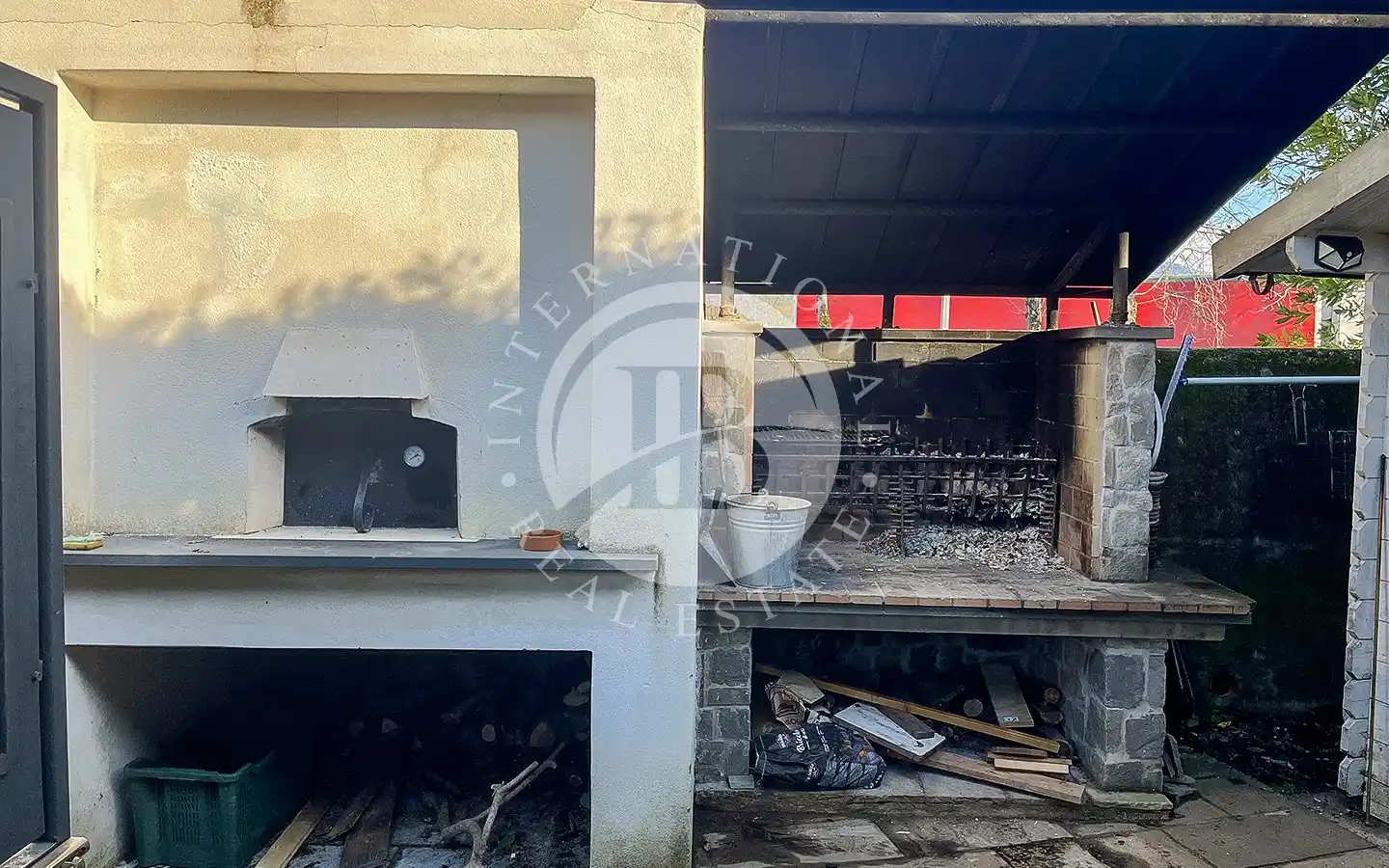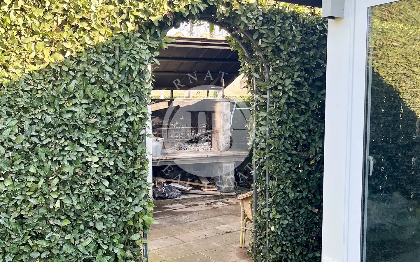 Il giardino, ampio e ben curato, circonda la proprietà sui quattro lati e ospita una dependance accessoriata con cucina, ideale per pranzi e cene all’aperto o per accogliere gli ospiti. Completa il tutto una splendida piscina in travertino con scala romana e acqua riscaldata, perfetta per momenti di relax in totale privacy. Tra le amenities esterne figurano inoltre un forno a legna, un barbecue e un comodo ripostiglio, sapientemente nascosti sul lato nord da una folta siepe.