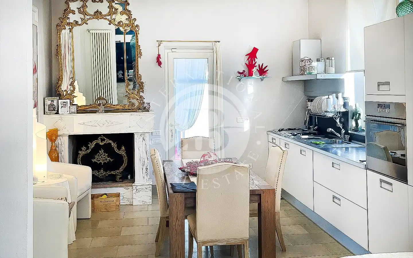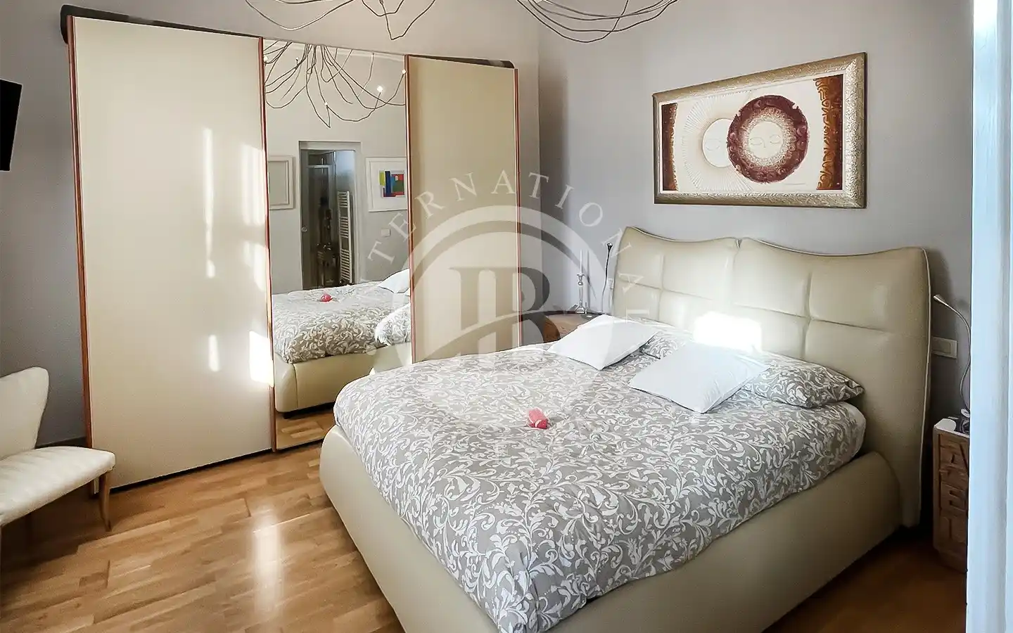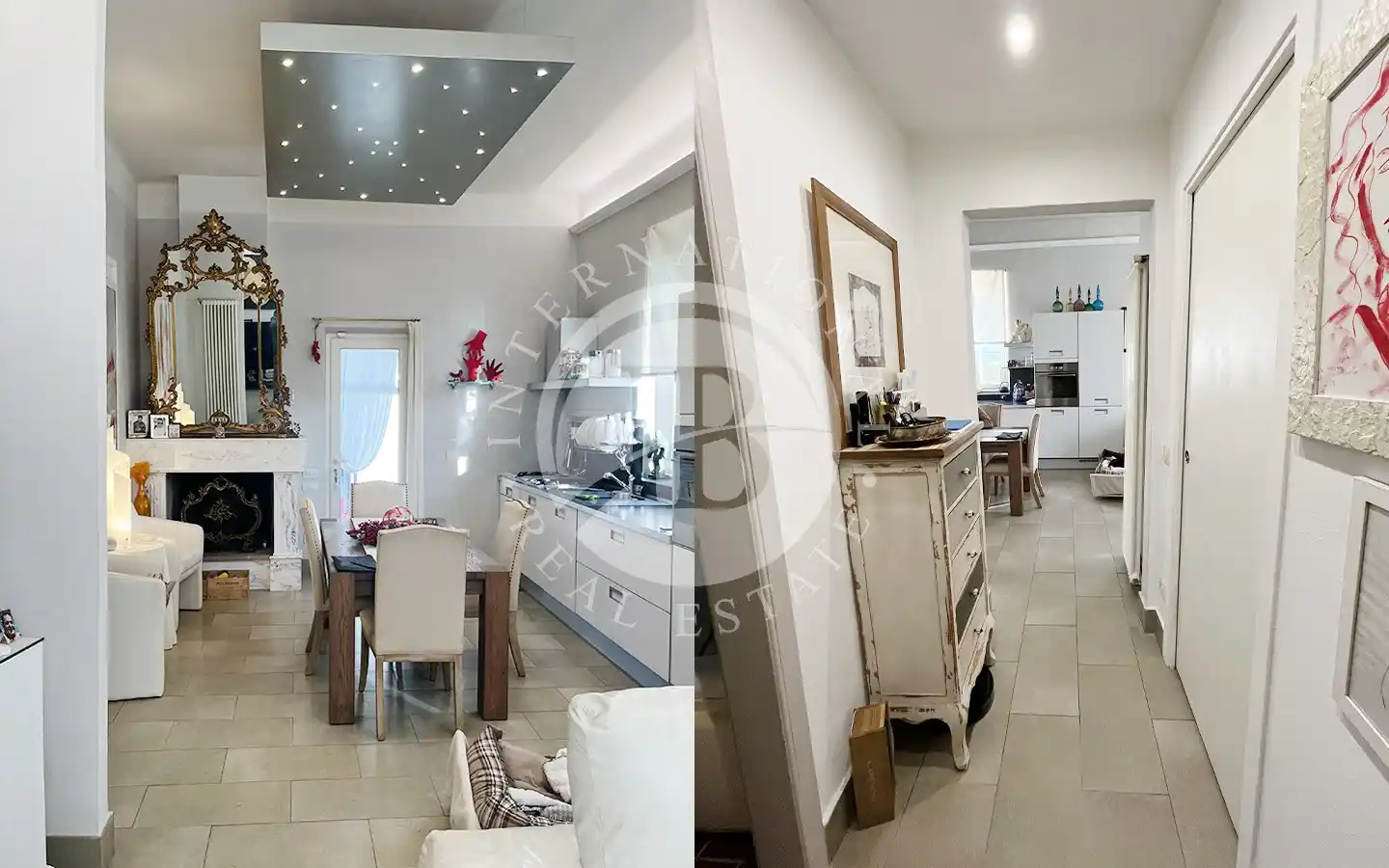 La ristrutturazione è stata eseguita con attenzione assoluta ai dettagli: pavimenti in pregiato marmo Calacatta, ceramiche di alto livello, infissi di ultima generazione con sistemi scorrevoli alzanti, controsoffitti con illuminazione integrata e griglie del climatizzatore, oltre a un avanzato impianto domotico che copre l’intera proprietà.