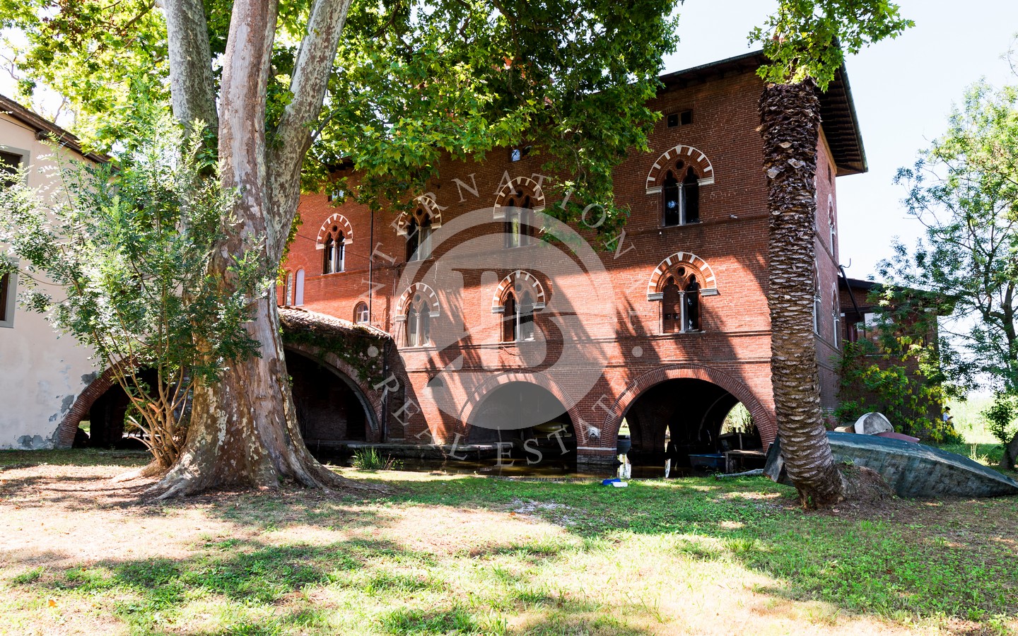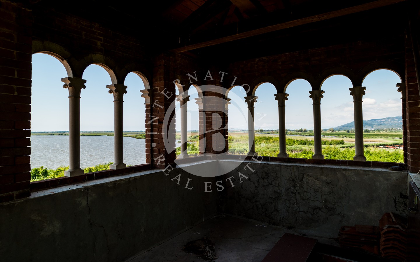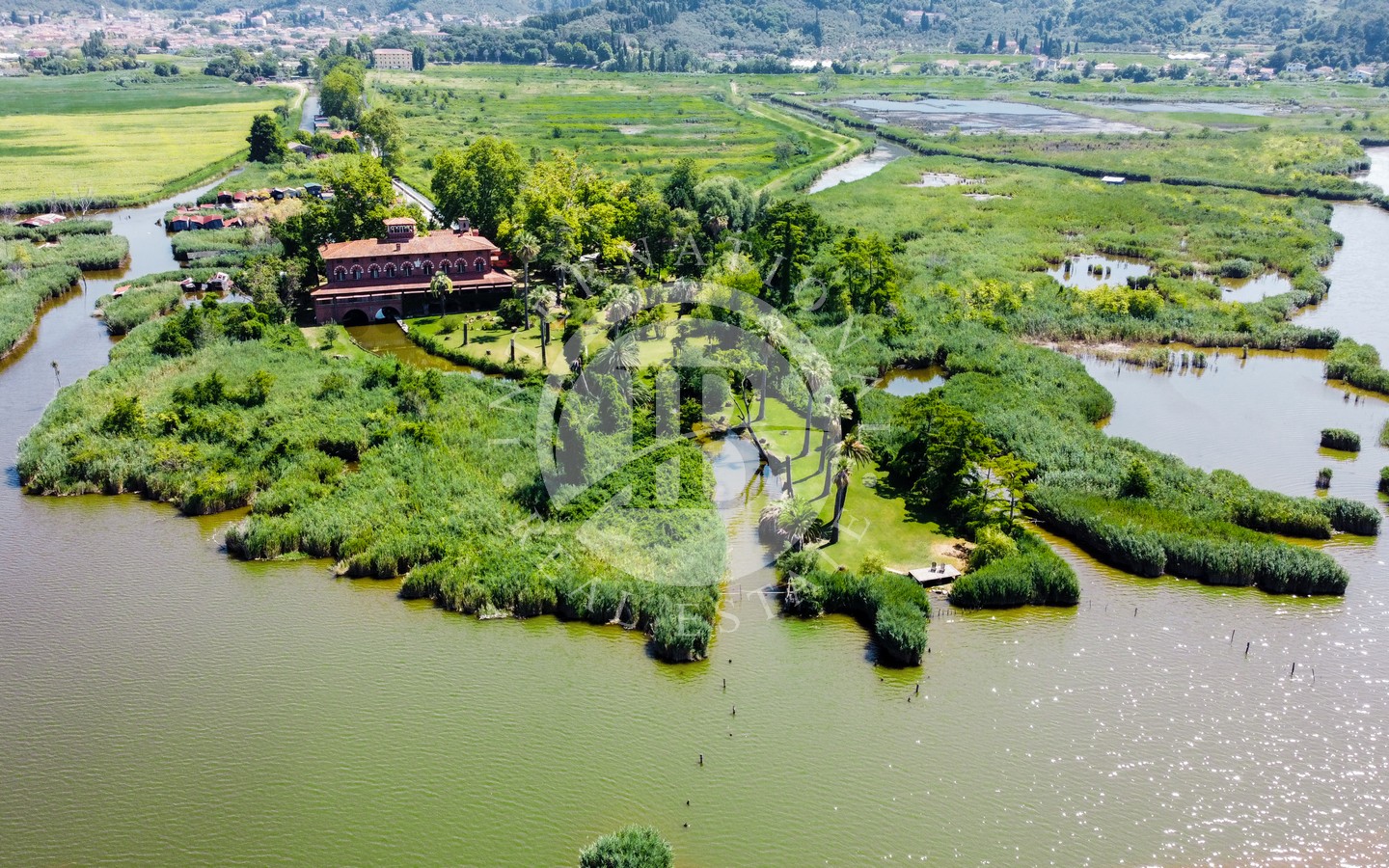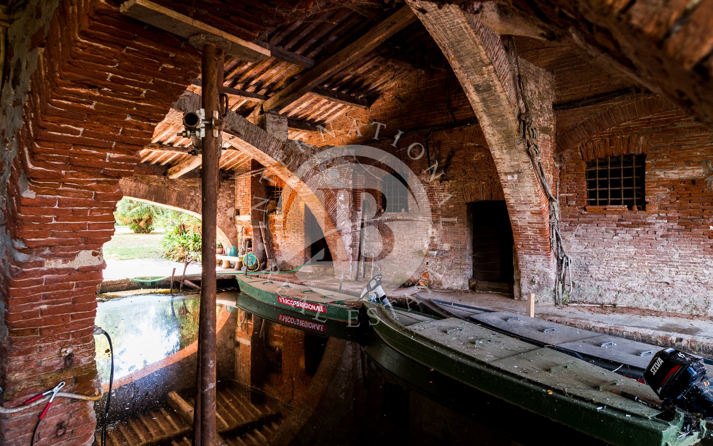 La villa principale in pregevolissimo stile neo-gotico, misura circa 1.200 mq lordi ed è costruita parte sulla terraferma e parte sull’acqua, con un incantevole imbarcadero coperto con soffitti a volte. E’ possibile infatti accedere alle barche direttamente da casa e raggiungere Torre del Lago Puccini o il porto di Viareggio via acqua.