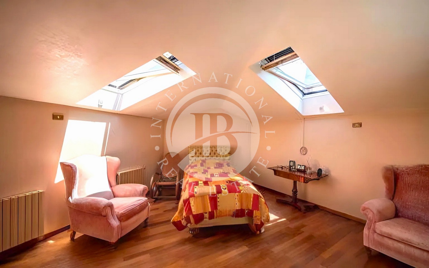Il piano superiore ospita la zona notte, composta da tre camere da letto, ognuna con il proprio guardaroba, e due bagni.