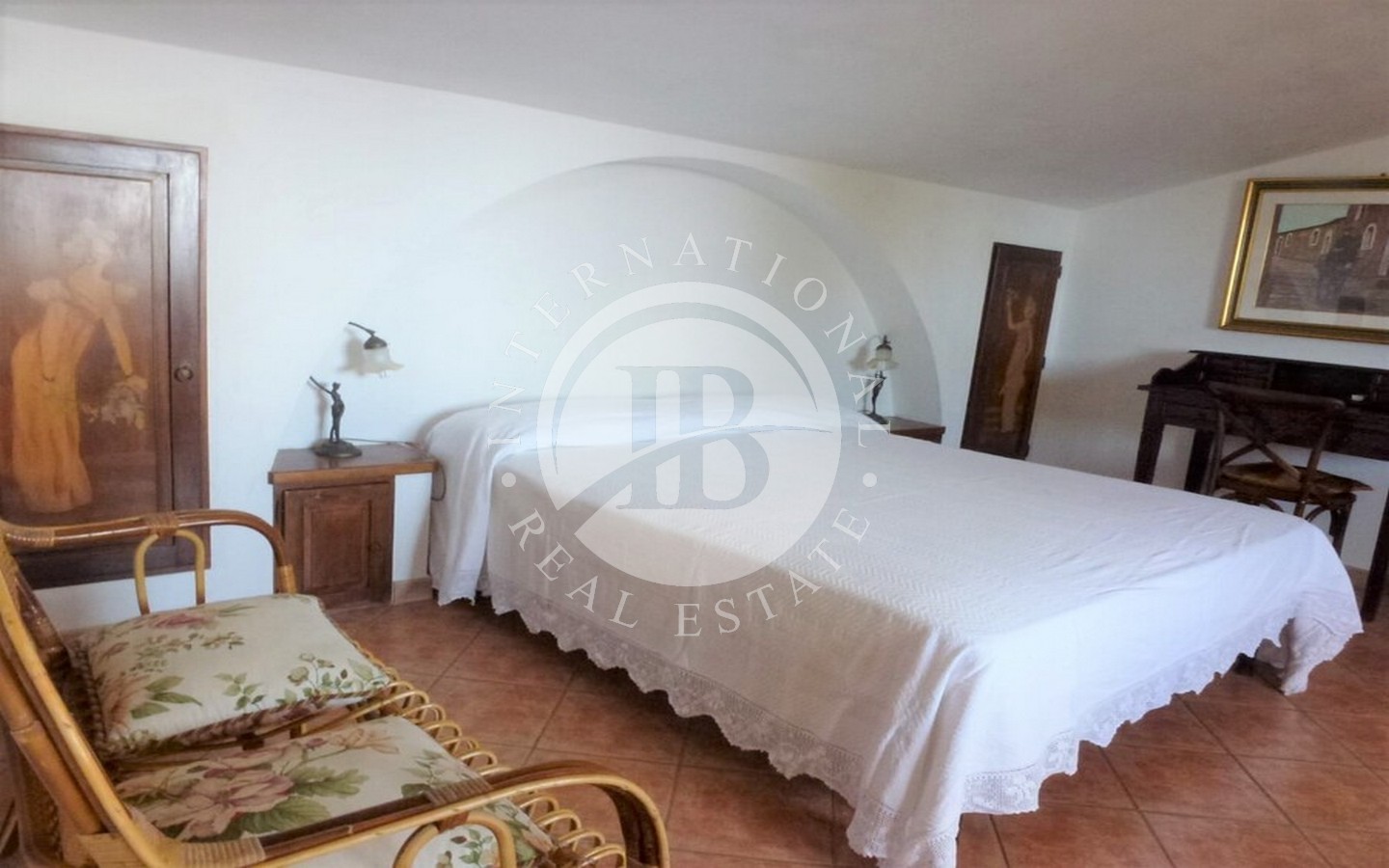 La villa si sviluppa su due livelli, con al piano terra un ampio ambiente unico con cucina e soggiorno, una camera matrimoniale e due camere singole, oltre a un bagno. Al primo piano, un secondo ambiente unico con soggiorno, cucina e divano letto, una camera matrimoniale e un secondo bagno. Le finiture di alta qualità, come la pavimentazione in marmo Brunelleschi e le porte in noce artigianali, conferiscono un'eleganza senza tempo agli interni.