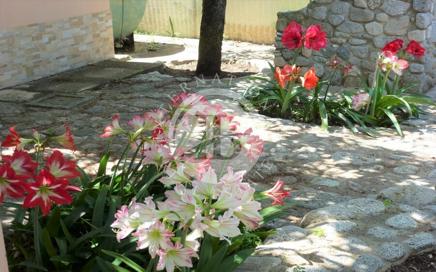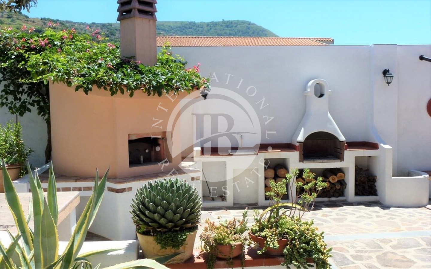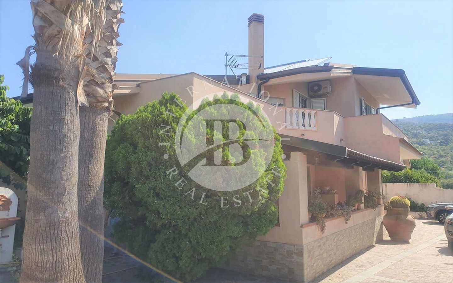 All'esterno, la villa vanta un terzo bagno, un cucinino, una piccola lavanderia e due magazzini. Il giardino circostante è arricchito da numerose piante esotiche, tropicali e ornamentali, insieme a alberi di agrumi e fruttiferi. La pavimentazione in porfido e pietra lavica dell'Etna crea un ambiente raffinato e accogliente.