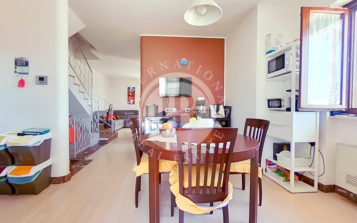 La zona giorno è completata da un'ulteriore veranda e un cortile posteriore. Una scala interna, con predisposizione per ascensore (da completare), conduce al primo piano, dove si trova la zona notte.