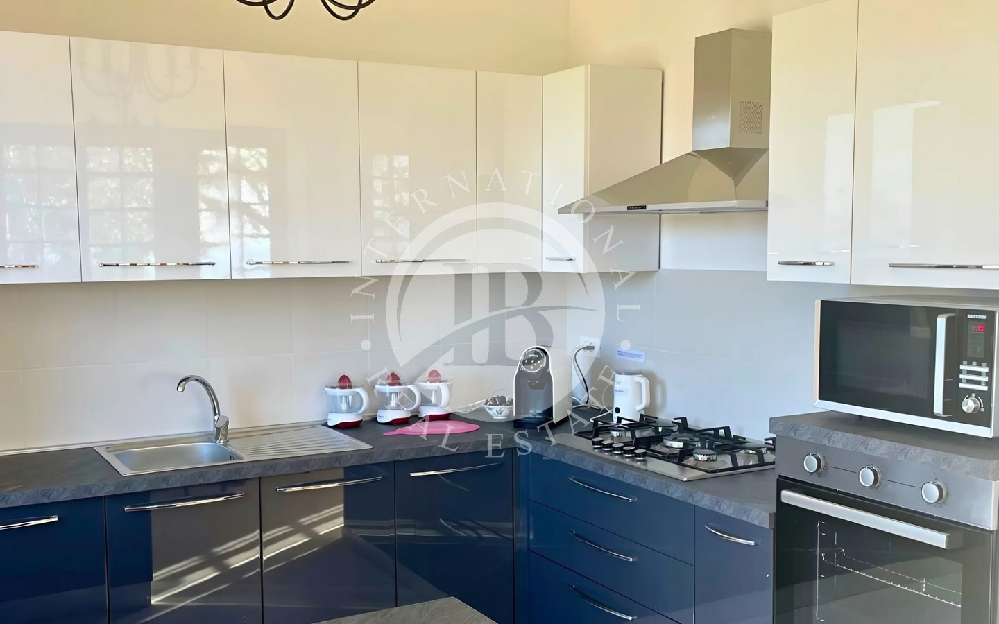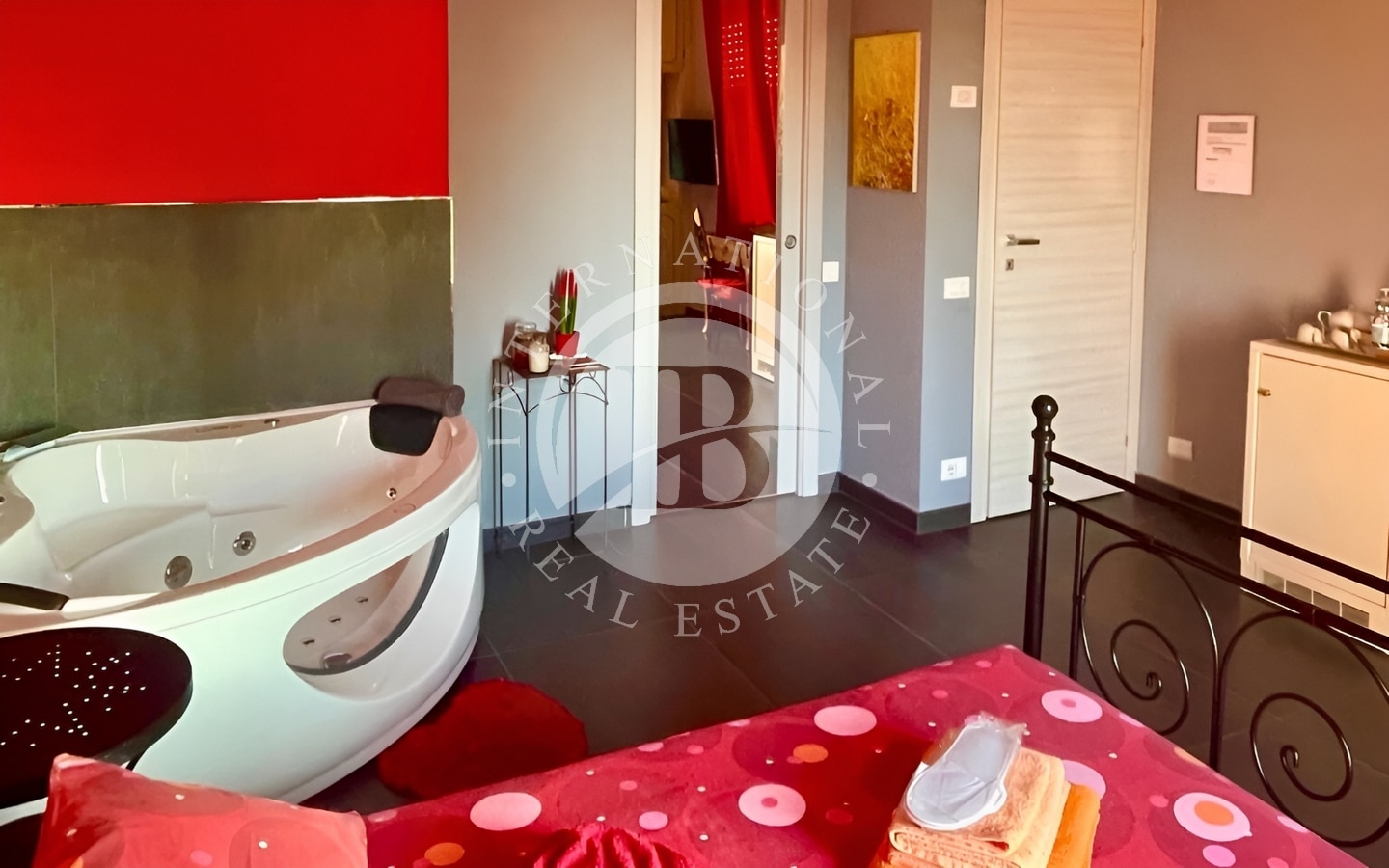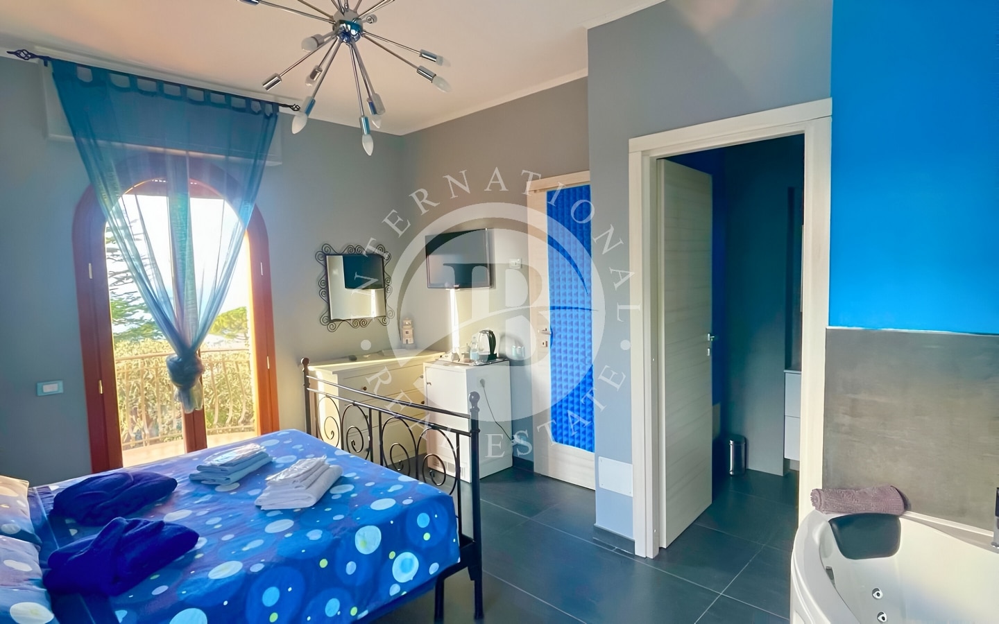 Un parco pianeggiante di 2000 mq circonda questa esclusiva dimora, dove una piscina con solarium e una zona barbecue invitano a godere di momenti all’aperto in totale relax. Gli spazi interni riflettono eleganza e comfort: tre ampie camere matrimoniali, tutte dotate di balconi privati con viste panoramiche, offrono un’atmosfera di lusso intimo. Due delle camere sono state trasformate in raffinate wellness room, con vasca idromassaggio e doccia cromoterapica.