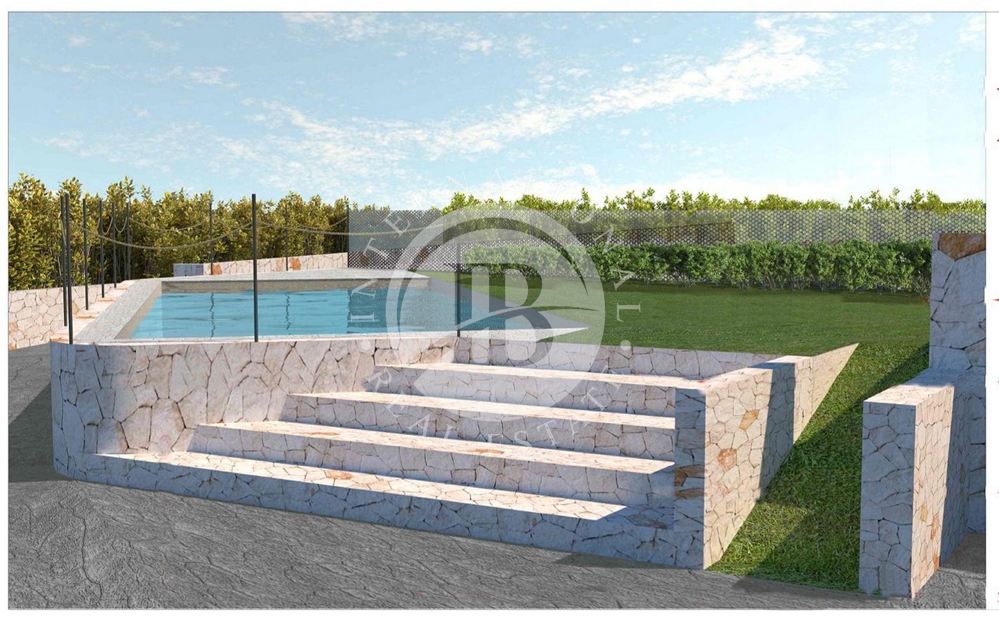 La proprietà è circondata da un verdeggiante giardino con alberi da frutto e spiazzi, offrendo un ambiente tranquillo e rigenerante. È in corso di approvazione un progetto per la realizzazione di una piscina, come rappresentato nel render allegato.