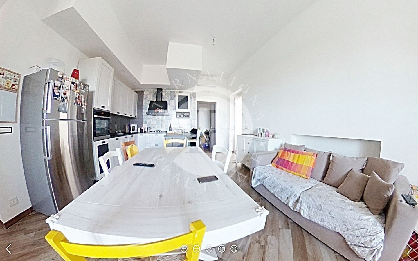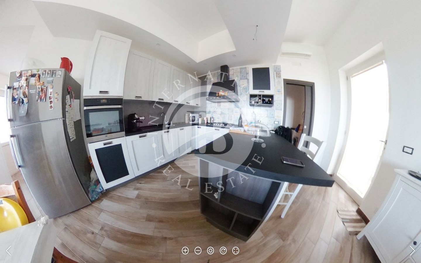 Al piano terra, un'ampia zona giorno accoglie una sala e una cucina/soggiorno con caminetto, completate da un bagno e un grande patio/terrazza a livello con vista mare.