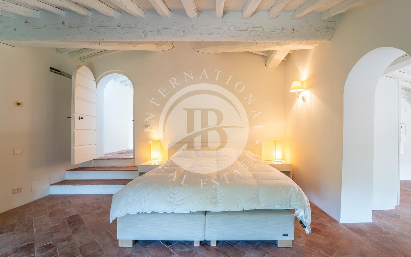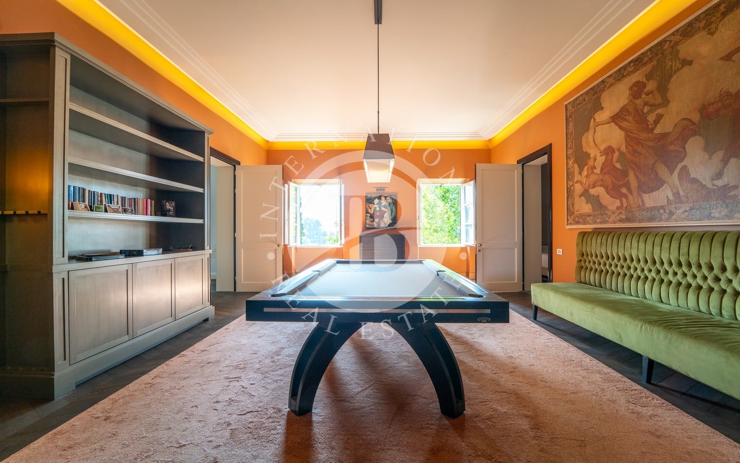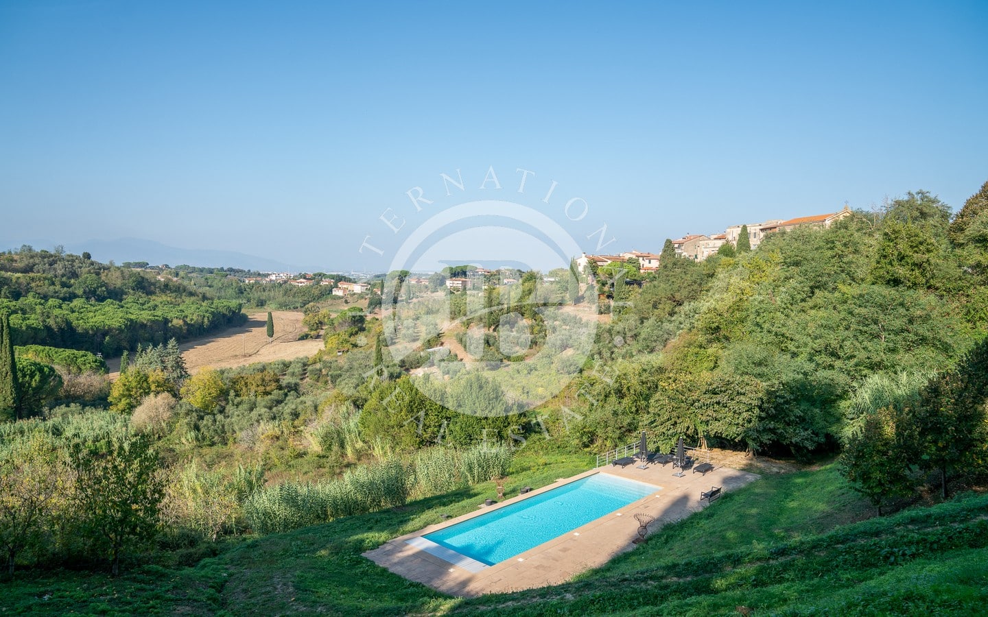 Il primo piano è concepito attorno a un'elegante sala da biliardo, con quattro camere da letto che si affacciano su spettacolari panorami delle colline di Lari. La camera padronale è dotata di un ampio bagno privato e di una cabina armadio su misura, che si integra perfettamente con il resto delle finiture di alta qualità. Le altre tre camere, luminose e accoglienti, condividono un grande bagno, completo di vasca da bagno e doccia in marmo.