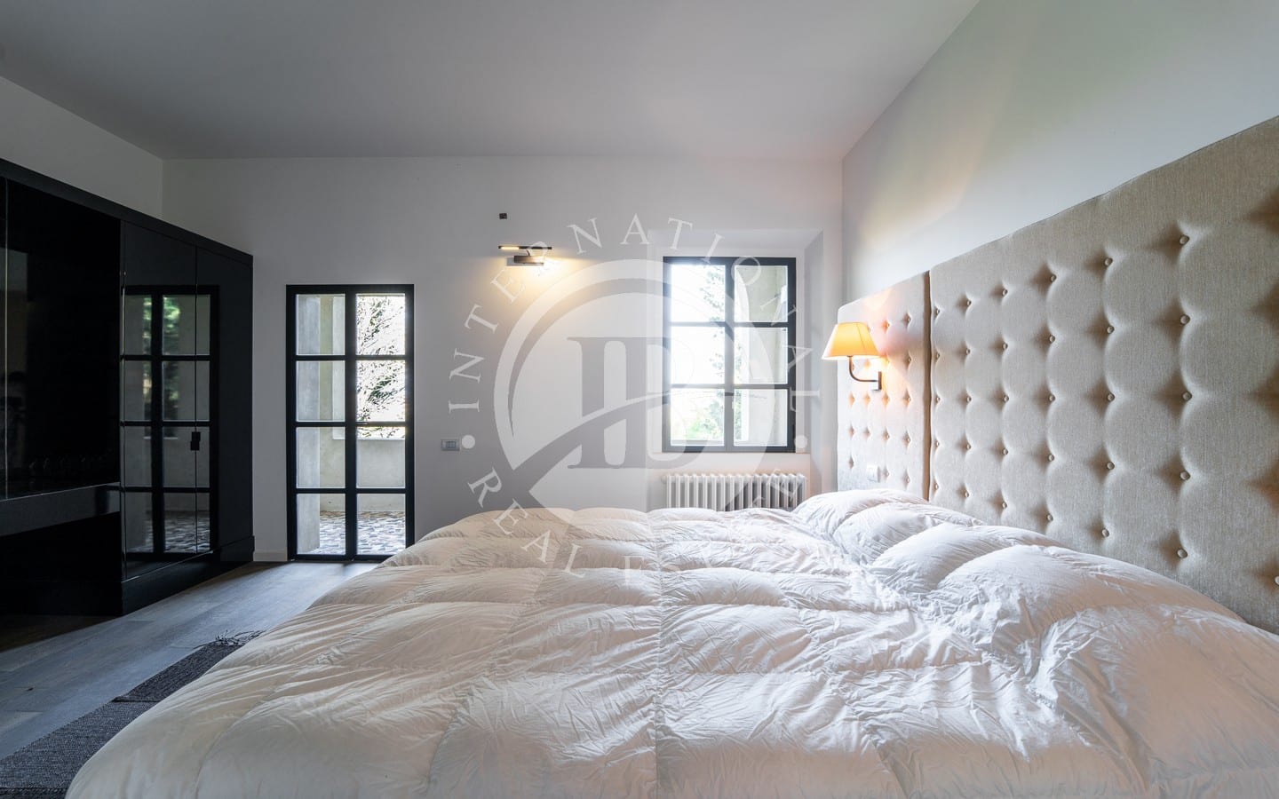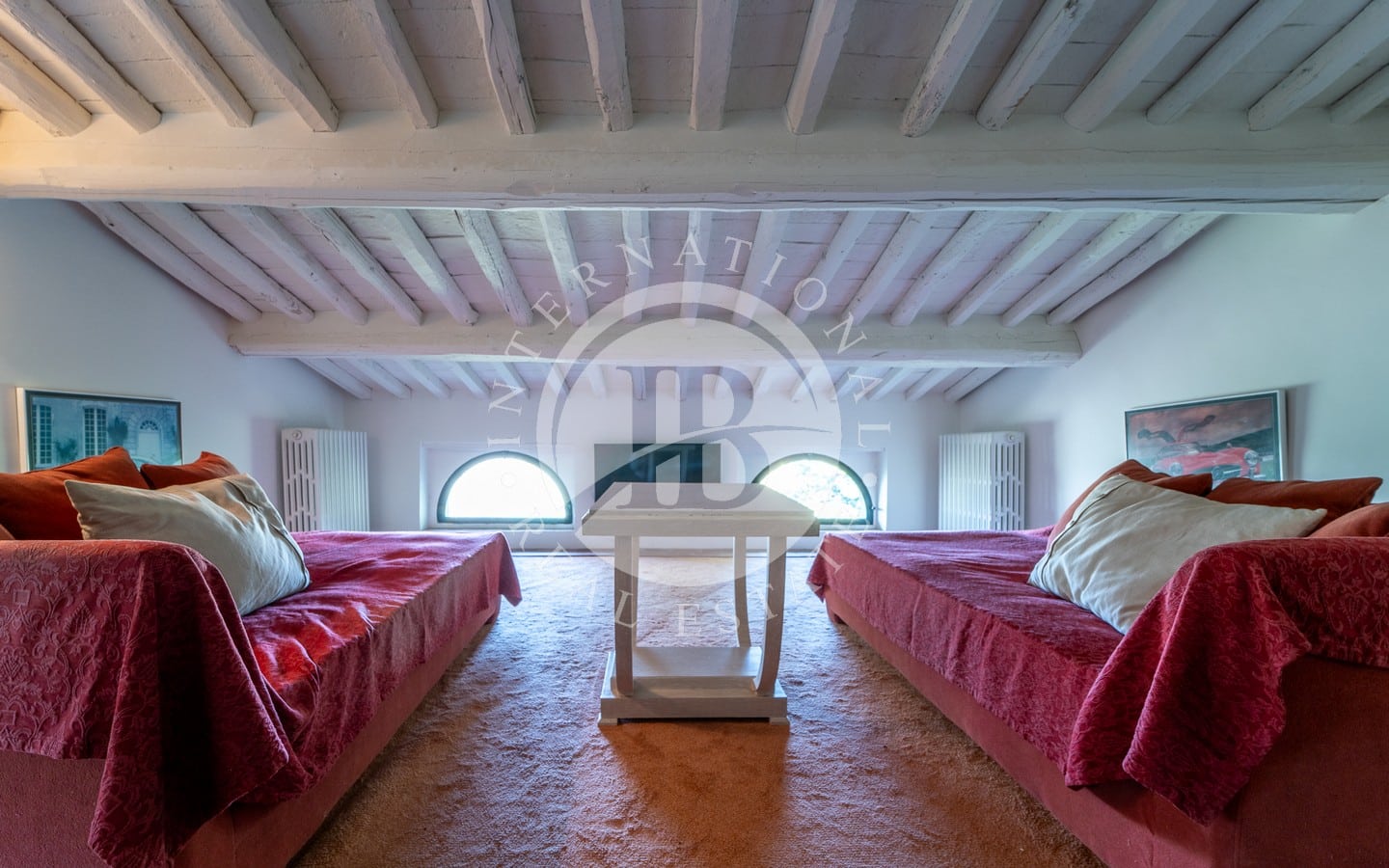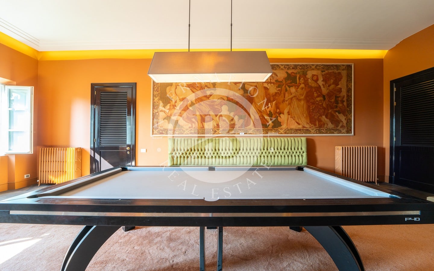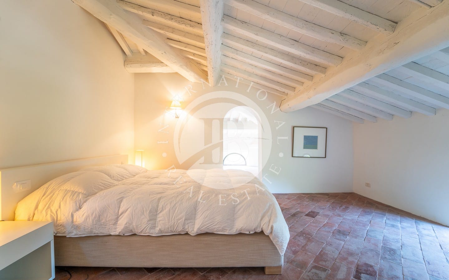 Il primo piano è concepito attorno a un'elegante sala da biliardo, con quattro camere da letto che si affacciano su spettacolari panorami delle colline di Lari. La camera padronale è dotata di un ampio bagno privato e di una cabina armadio su misura, che si integra perfettamente con il resto delle finiture di alta qualità. Le altre tre camere, luminose e accoglienti, condividono un grande bagno, completo di vasca da bagno e doccia in marmo.