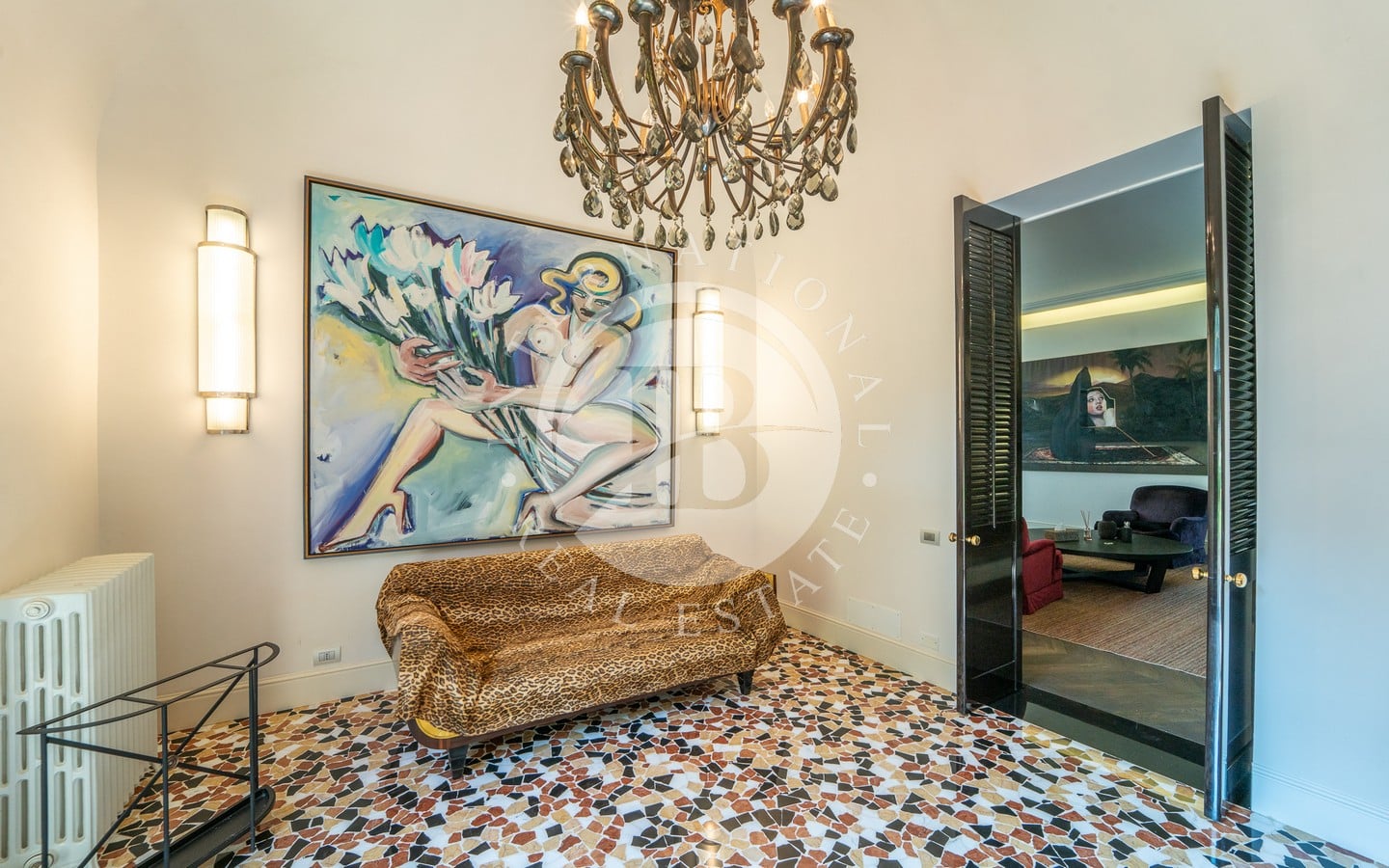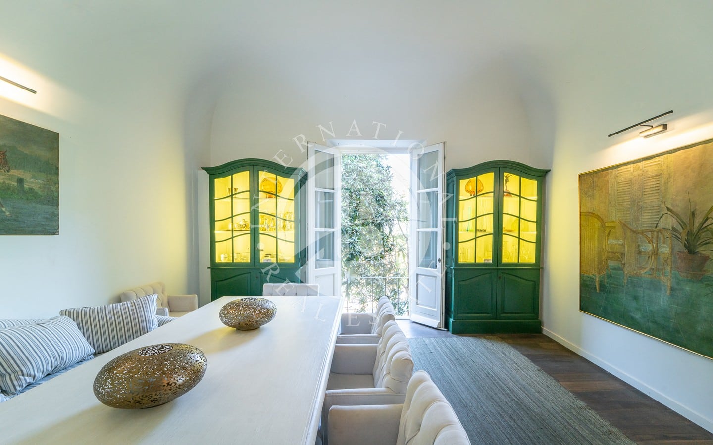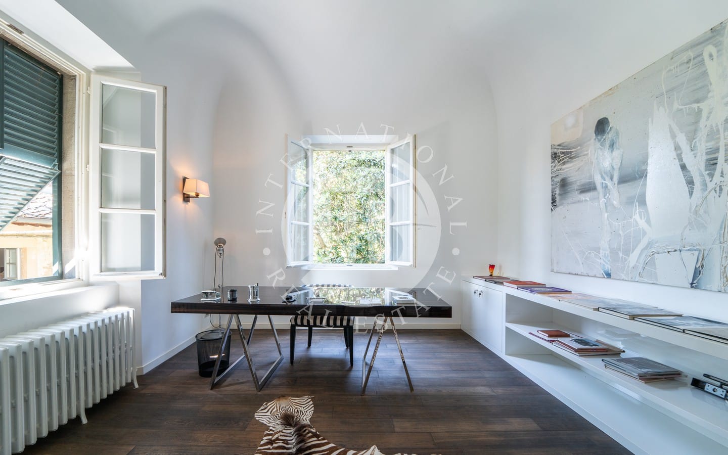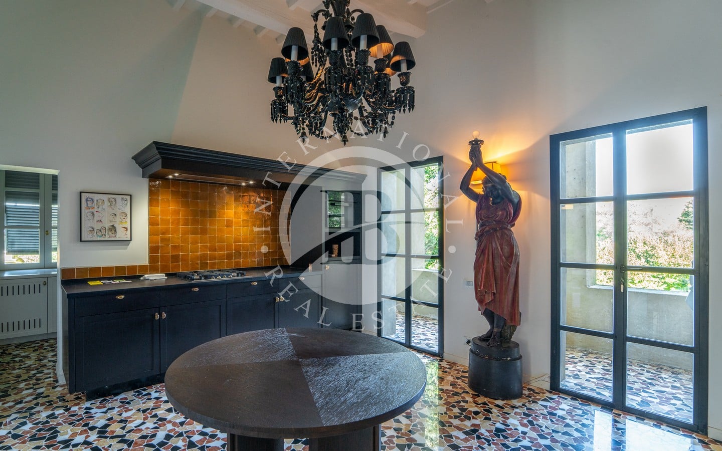 Varcando l’ingresso principale, si viene subito accolti dall’eleganza degli arredi d’epoca e dal magnifico pavimento in mosaico di marmo, che conduce allo spazioso soggiorno dominato da un sontuoso salone con camino. La cucina, progettata con gusto e funzionalità, è dotata di tutti i comfort moderni, inclusa una camera frigorifera e un'area di lavoro nascosta per le preparazioni culinarie. L’attenzione ai dettagli è evidente in ogni ambiente, dall'ufficio ben illuminato alla spaziosa sala TV e alla grande sala da pranzo, che offre accesso diretto al retro della villa e alla limonaia.