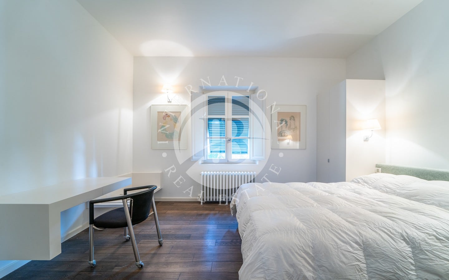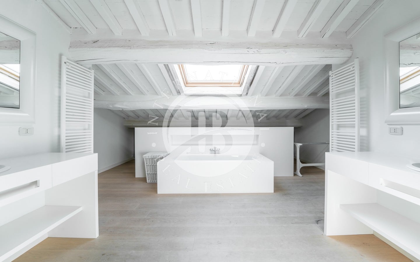 Salendo al secondo piano, gli architetti hanno creato una seconda zona notte dove le travi bianche del soffitto donano un’atmosfera rustica ed elegante. Ogni camera dispone di spazi ben progettati che consentono alla luce naturale di entrare, offrendo viste panoramiche ancora più straordinarie. Una romantica stanza da bagno, dotata di una lussuosa vasca sotto un lucernario, è perfetta per godere di un bagno rilassante sotto il cielo stellato.