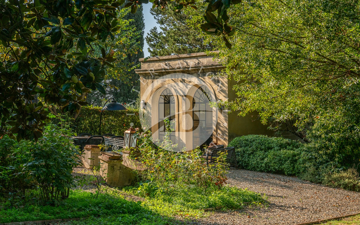 La limonaia si affaccia su un giardino meticolosamente mantenuto, armonioso con la vegetazione delle colline di Lari, e sulla piscina, situata in modo strategico per garantire la massima privacy durante le calde giornate estive.