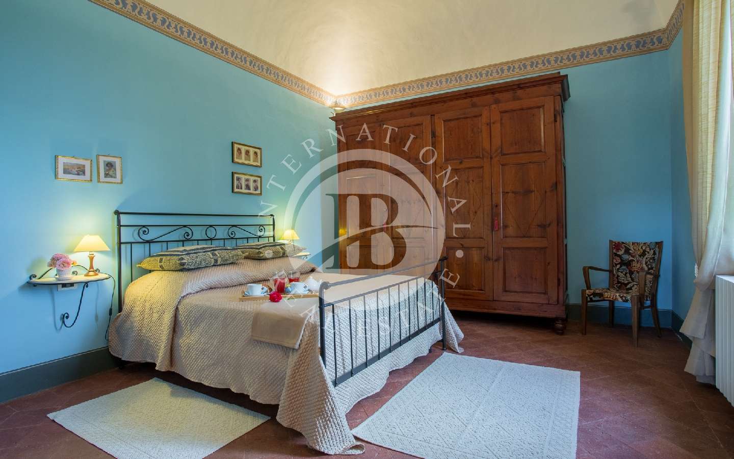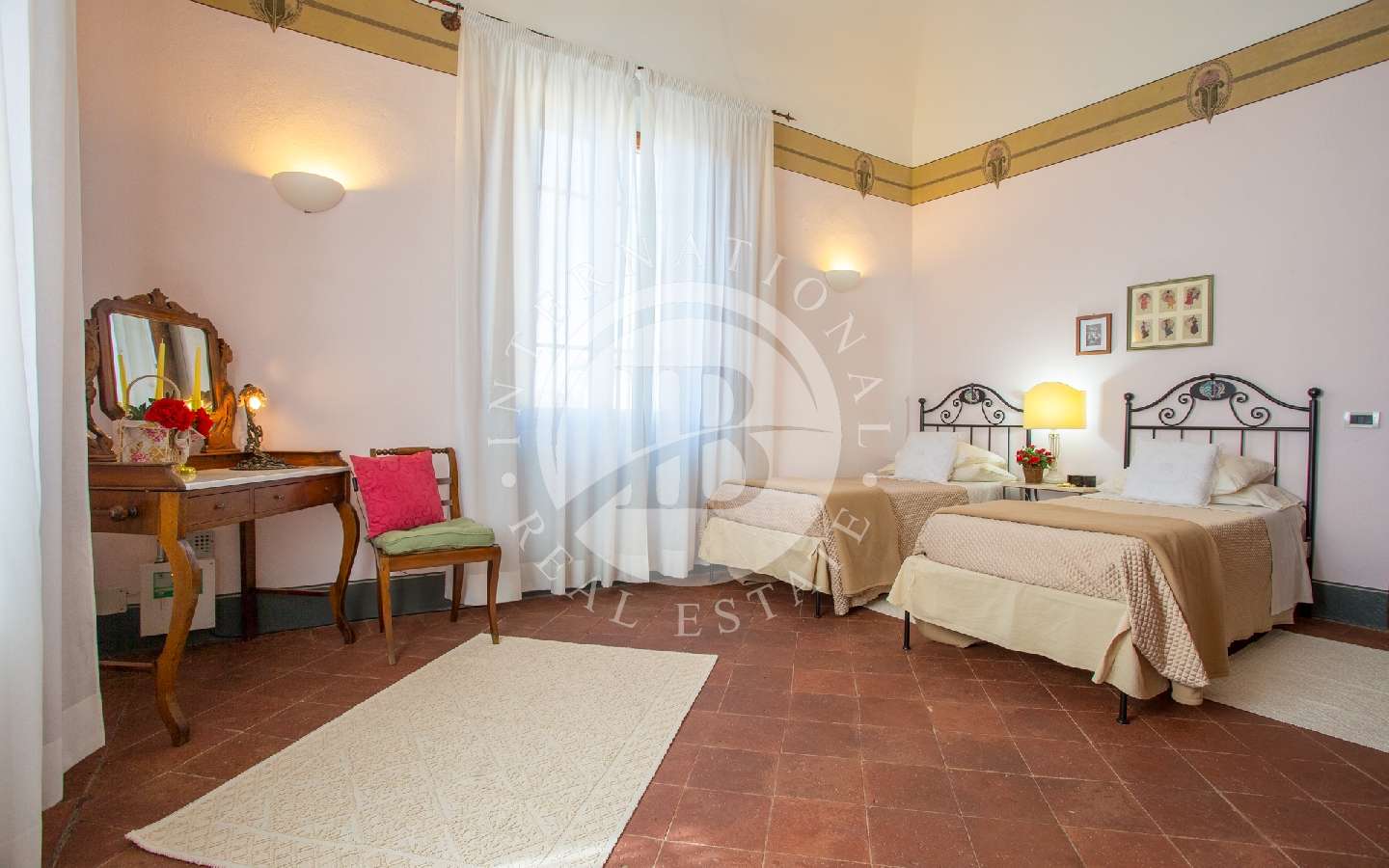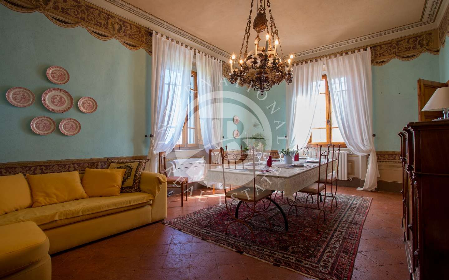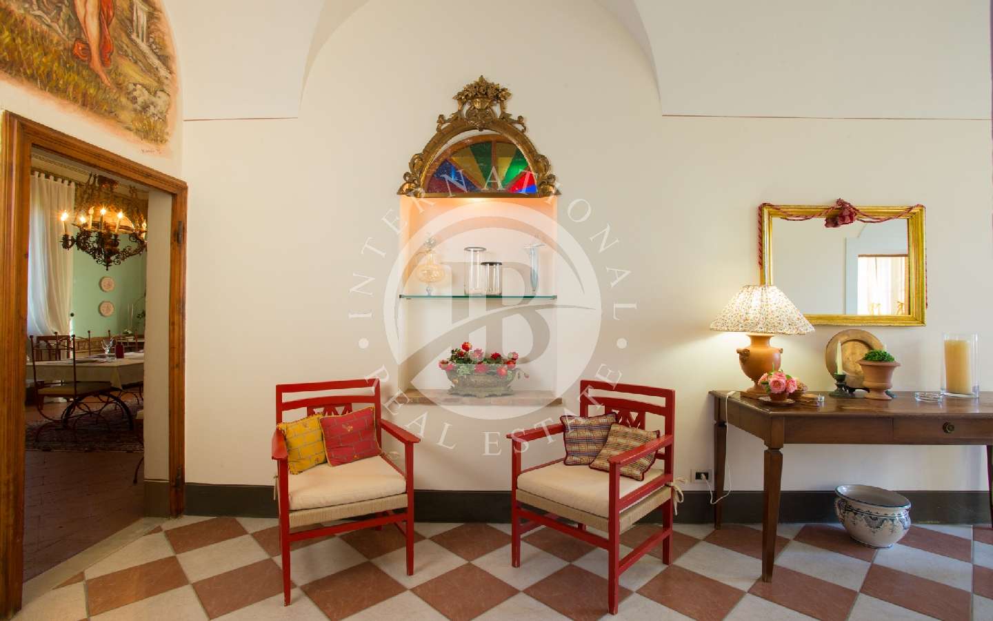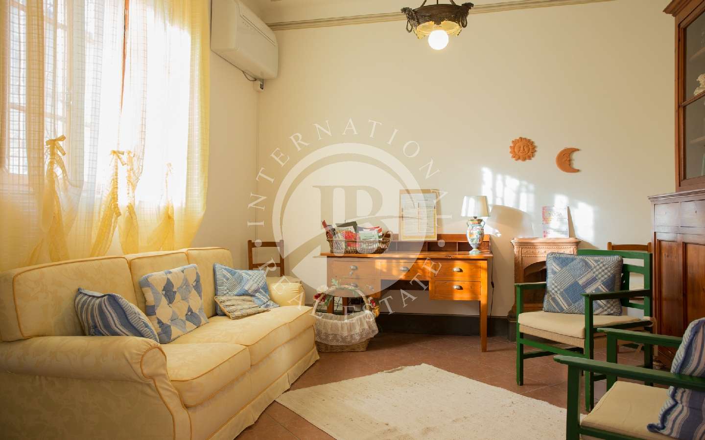 Questa villa è stata sapientemente ristrutturata, preservando le sue caratteristiche architettoniche. Arredata con estremo gusto, ogni dettaglio, tra mobili e mobili originali dell'Ottocento, conferisce alla villa un'eleganza particolare. Le pregevoli decorazioni, gli affreschi e gli originali soffitti ad ampie volte e volticciole ci immergono nel passato, permettendoci di assaporare l'atmosfera di quei luoghi.