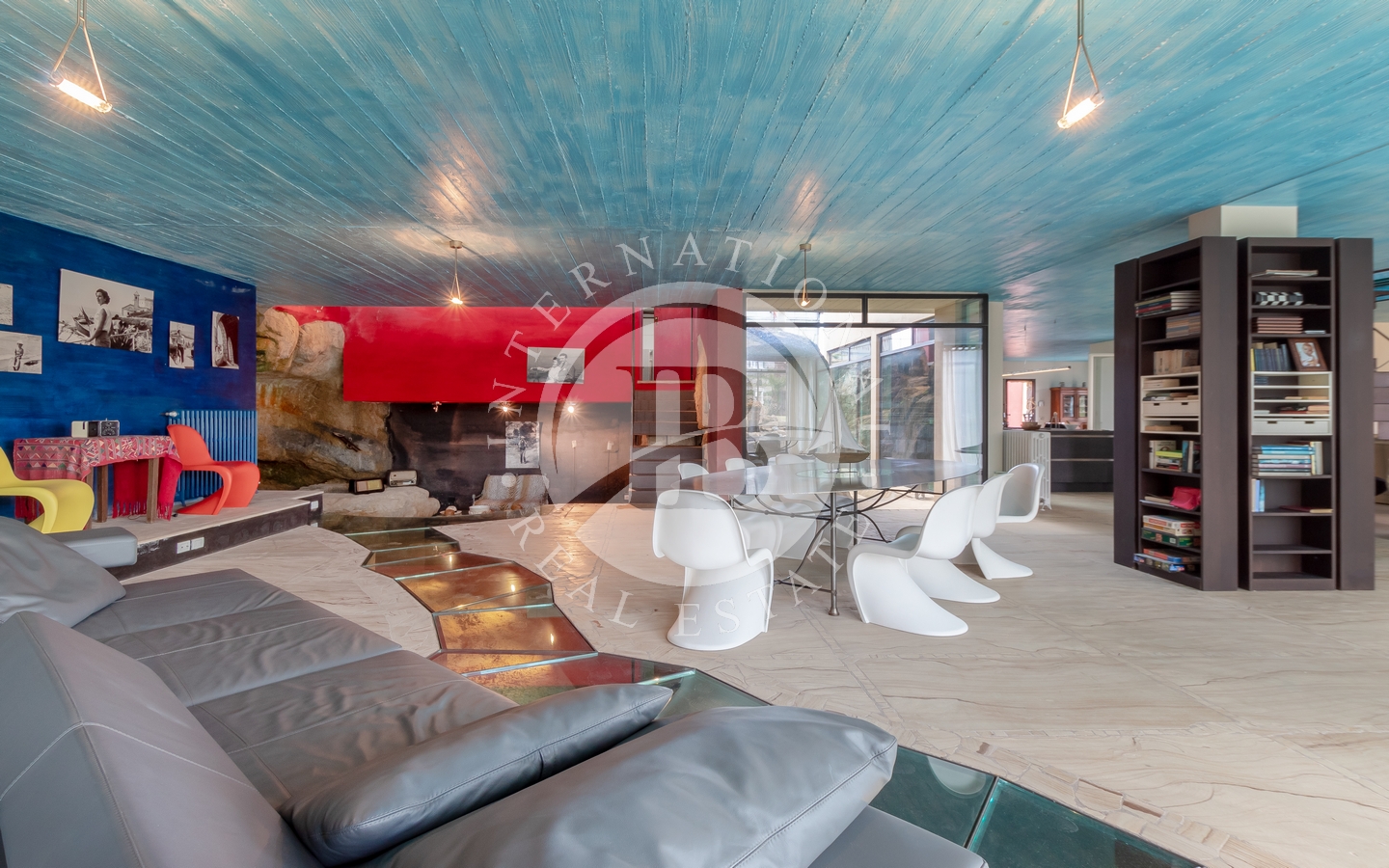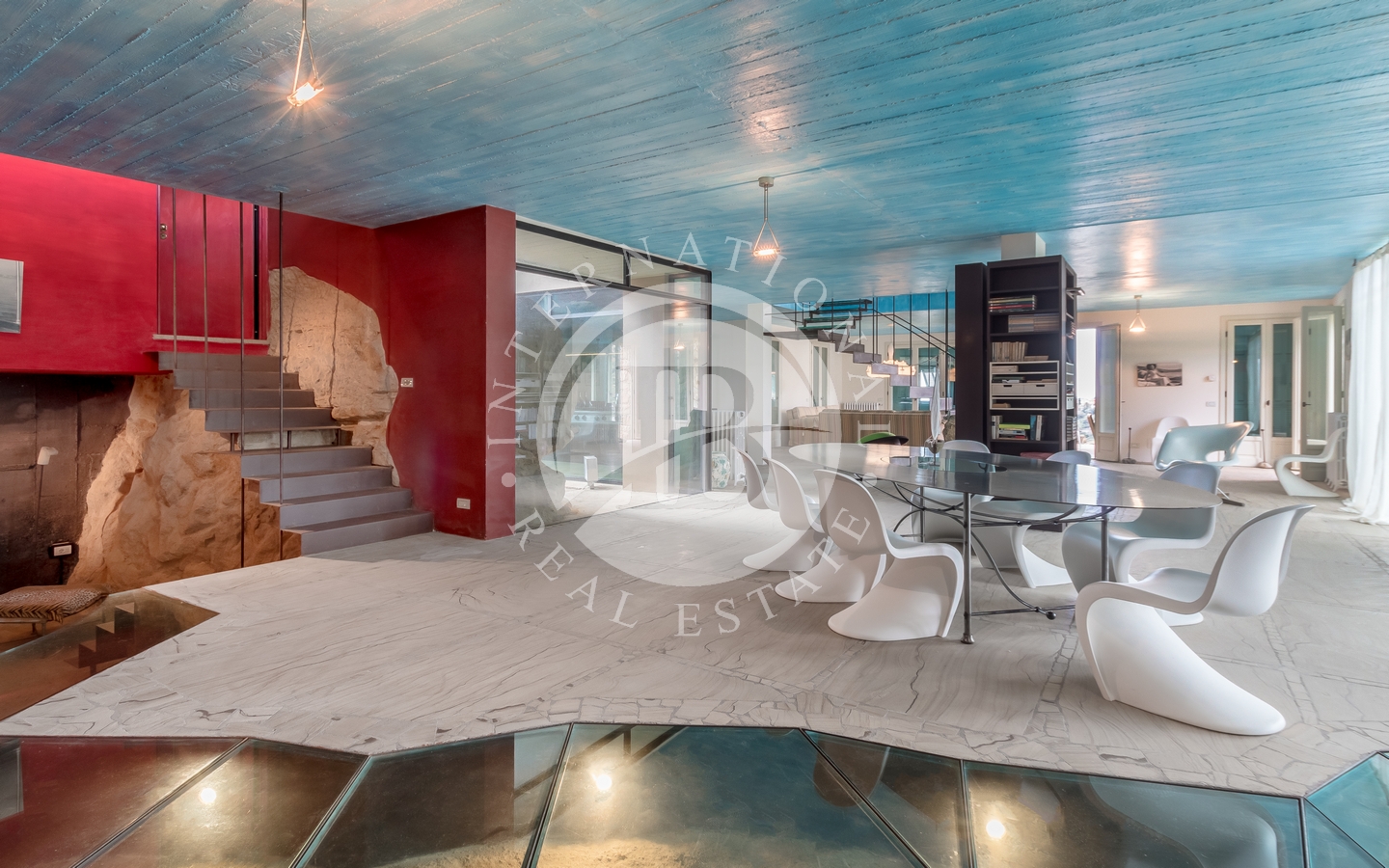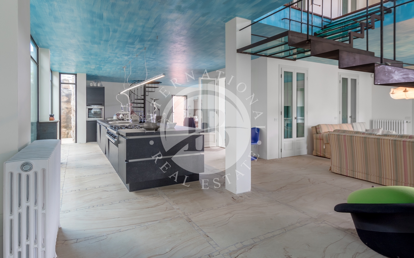 La proprietà si sviluppa su più livelli e presenta un’ampia zona giorno open space al piano principale, composta da salone, area pranzo e cucina a vista. Sullo stesso livello si trovano anche un bagno per gli ospiti e una lavanderia. Il piano superiore ospita tre camere da letto, ognuna dotata di bagno privato e terrazzo con vista panoramica. Due soppalchi accessibili tramite scale interne offrono spazi aggiuntivi, utilizzabili come studio o area deposito.