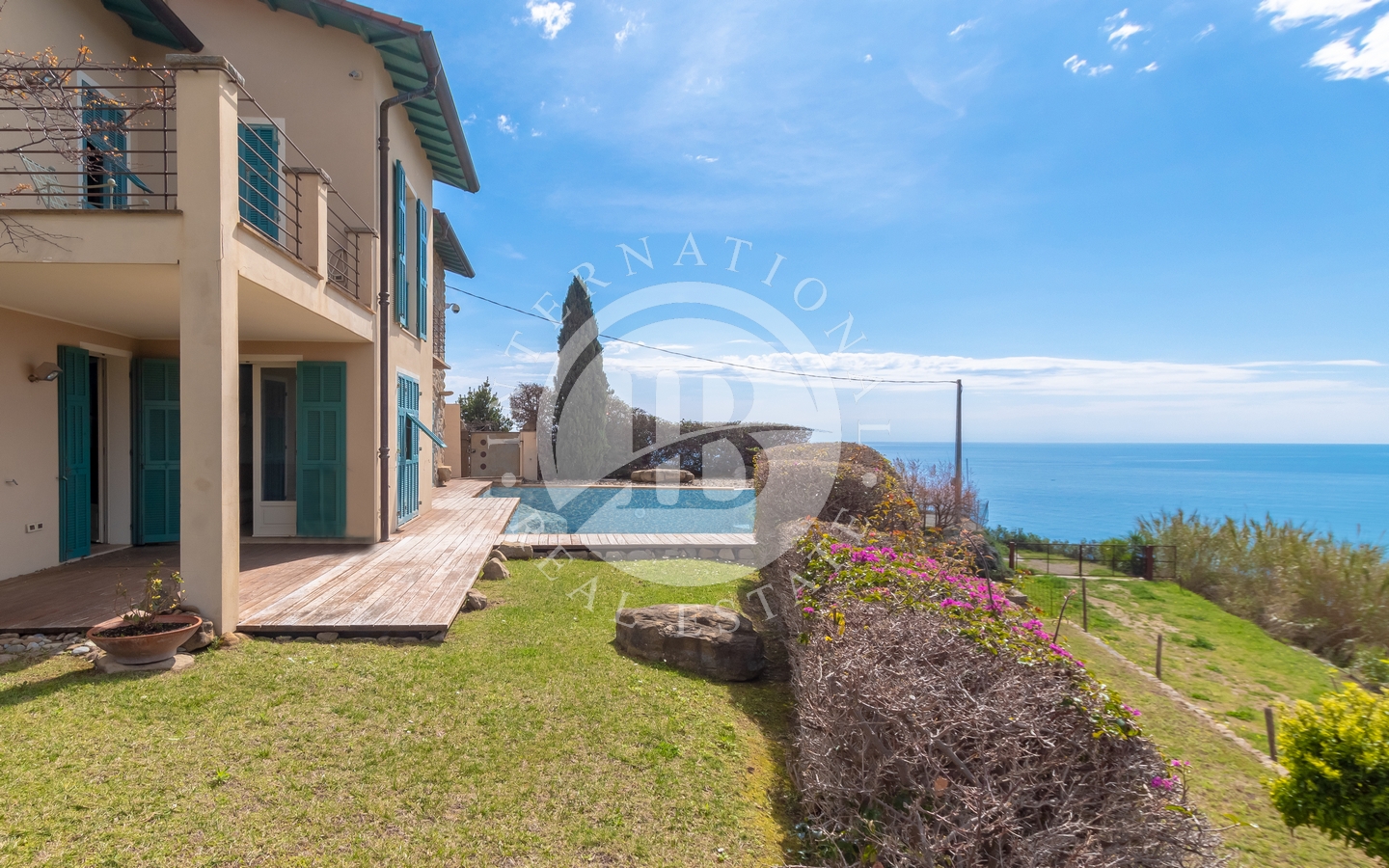 Questa villa in stile ligure è immersa in un parco privato di circa 5.000 mq. La posizione panoramica garantisce una vista diretta sul mare e l’accesso al sentiero del Beodo, noto per il suo valore paesaggistico e storico.