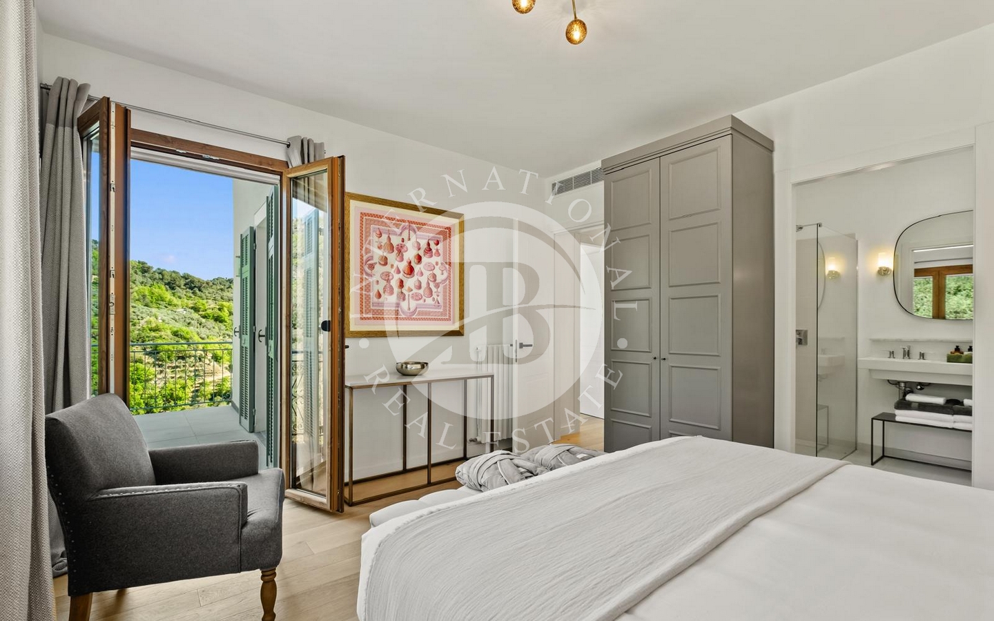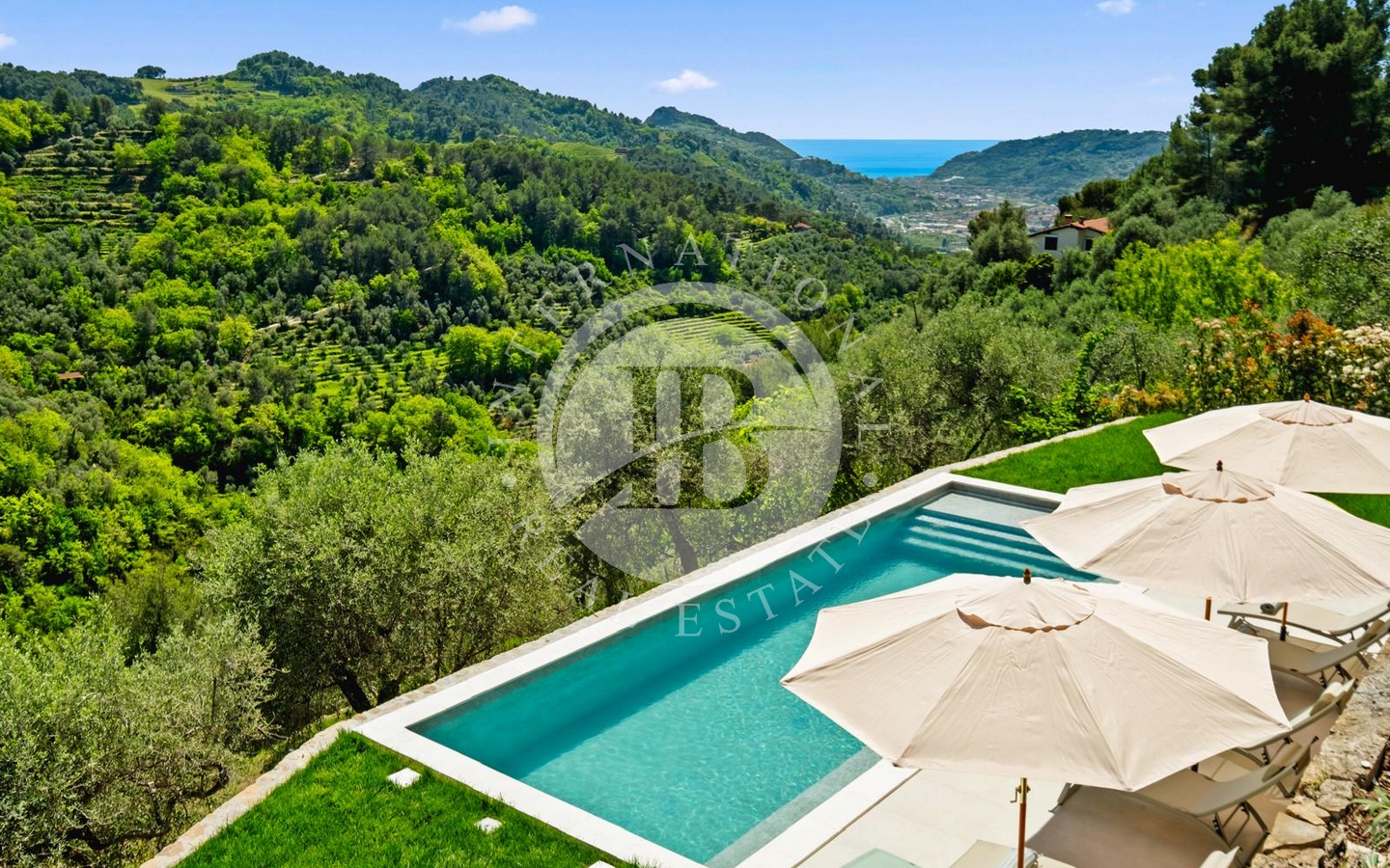 | Questa elegante villa, recentemente ristrutturata e rifinita con materiali di alta qualità, si sviluppa su tre livelli per una superficie interna di circa 270 mq, con terrazze di 58 mq e un ampio giardino privato di circa 2.500 mq. La posizione dominante offre viste spettacolari sulla valle e sul mare, immerse in un contesto naturale autentico e riservato.