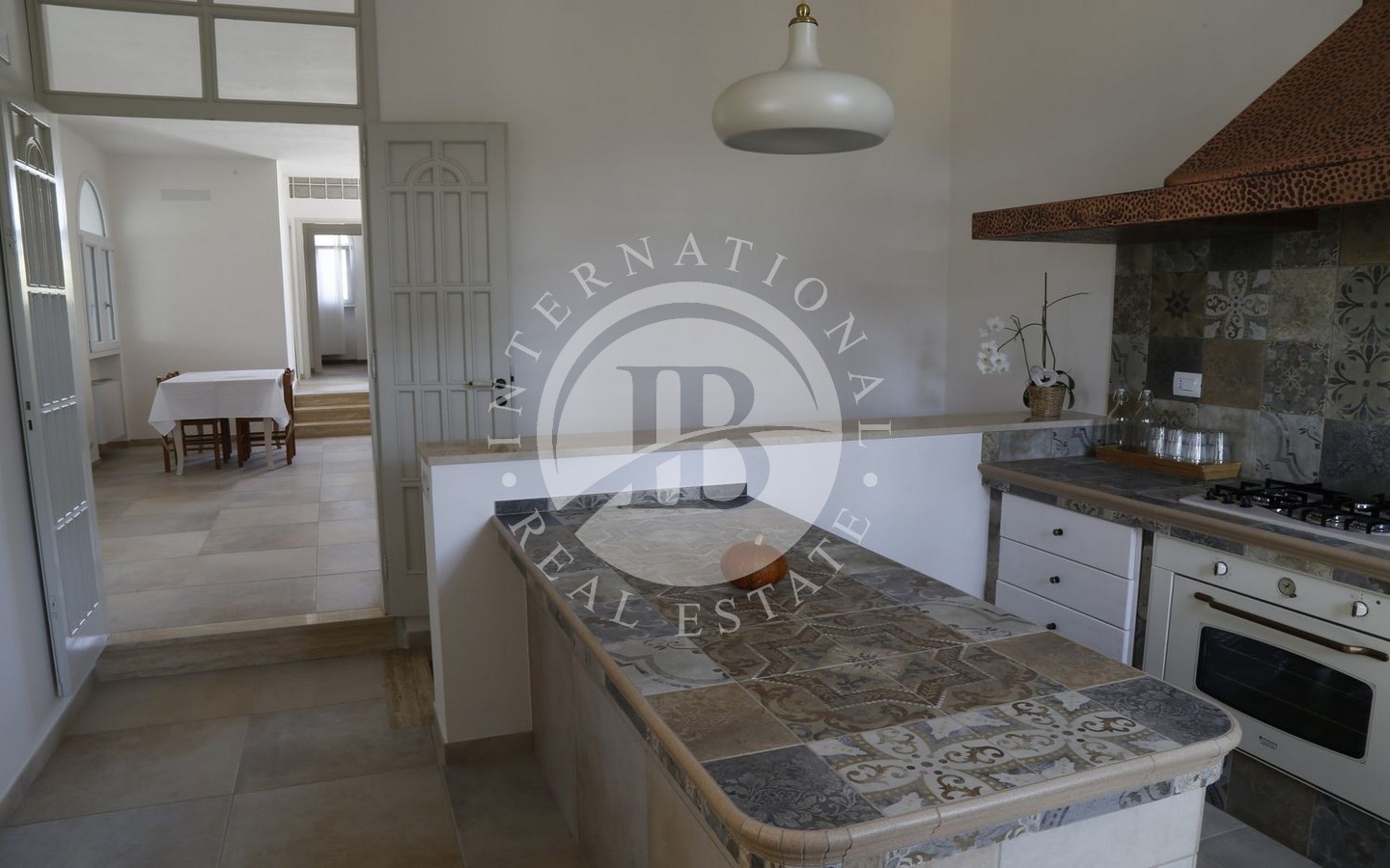La casa padronale al piano superiore accoglie un ingresso che conduce a una spaziosa sala/soggiorno e una cucina abitabile, entrambe con accesso a una grande veranda panoramica coperta, ideale per cene all'aperto e momenti di relax. Il piano comprende inoltre quattro camere da letto e tre bagni, offrendo ampio spazio per la famiglia e gli ospiti. Al piano sottostante, un mini appartamento con sala e angolo cottura, due camere da letto, un bagno e accesso a un patio verandato fornisce ulteriore flessibilità e indipendenza.
