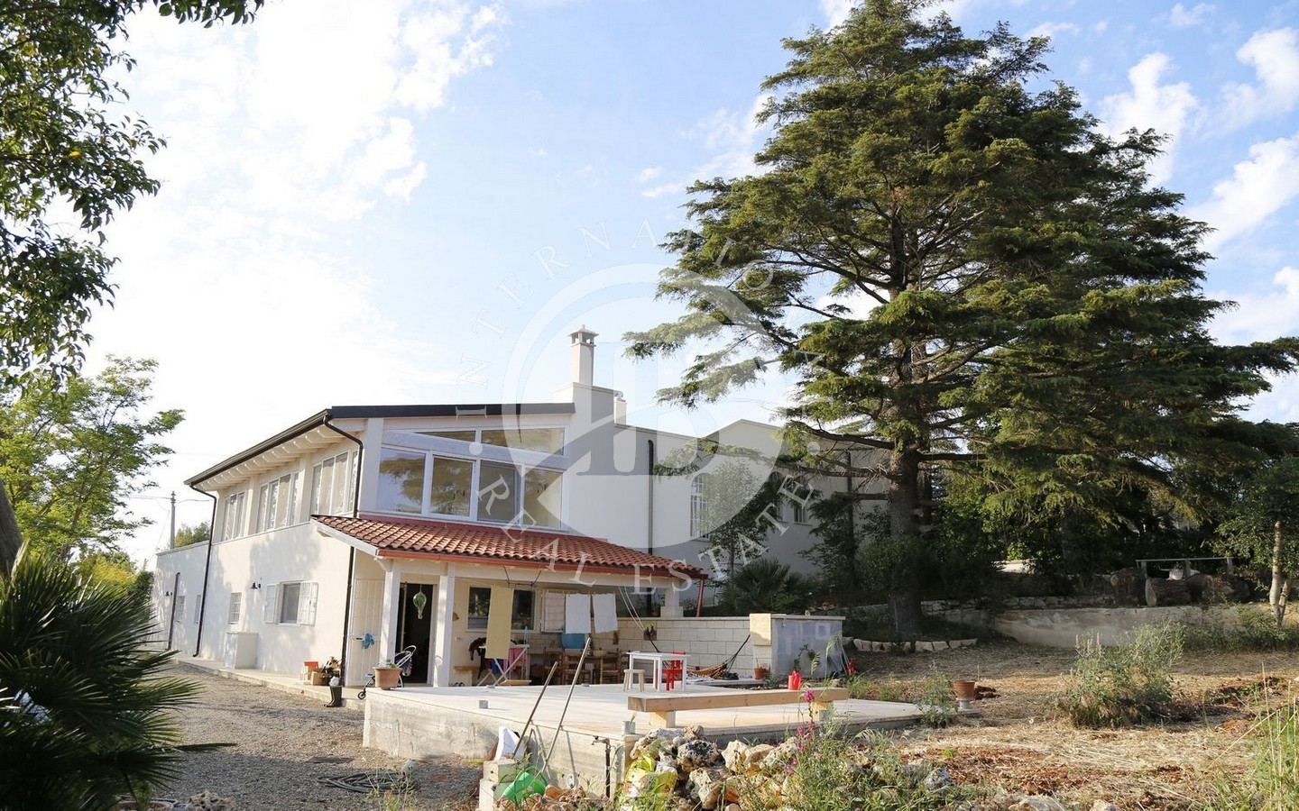 All'esterno, la villa è circondata da un cortile e un giardino di circa 2.000 mq, arricchito da alberi ombrosi che creano un'atmosfera rilassante e accogliente. Lo spazio esterno è perfetto per godere della natura e offre ampie possibilità di utilizzo, incluso lo spazio per l'eventuale installazione di una piscina.