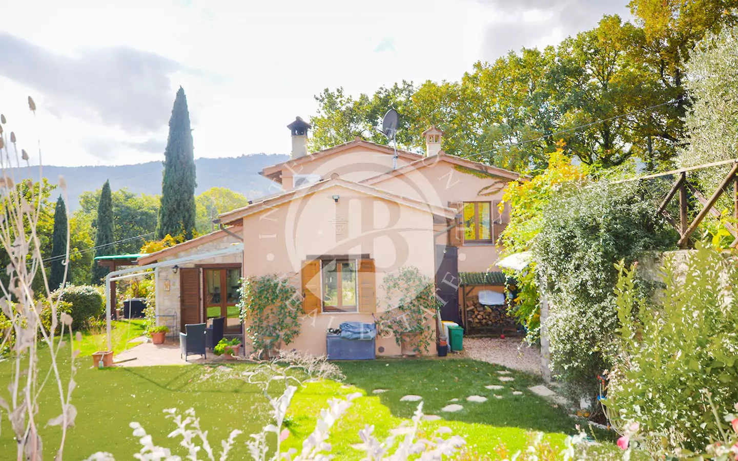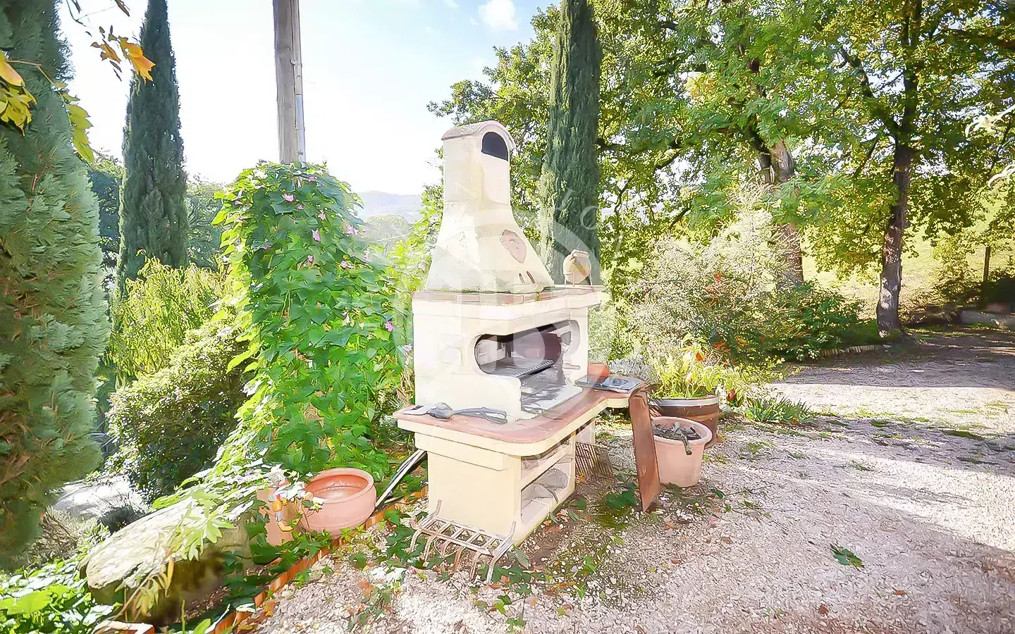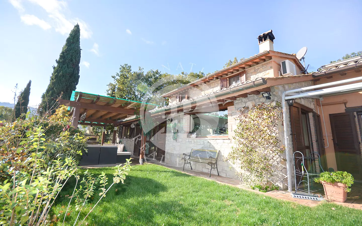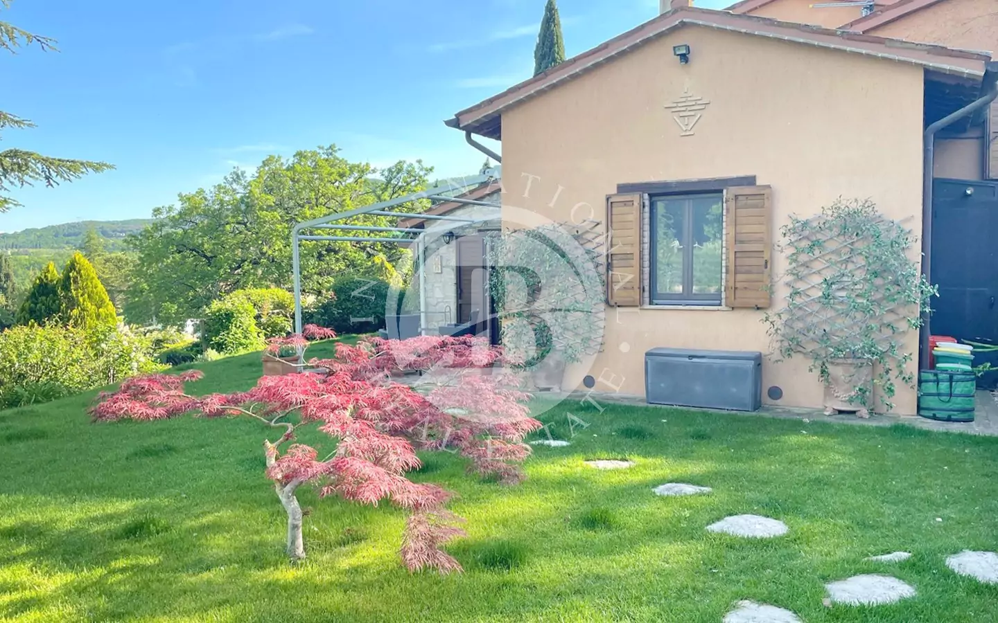 La proprietà dispone di circa 1 ettaro di terreno con ampio prato, cipressi, molte varietà di alberi e circa 100 piante di ulivo. Comprende anche un locale tecnico e una pool house (piccolo locale).