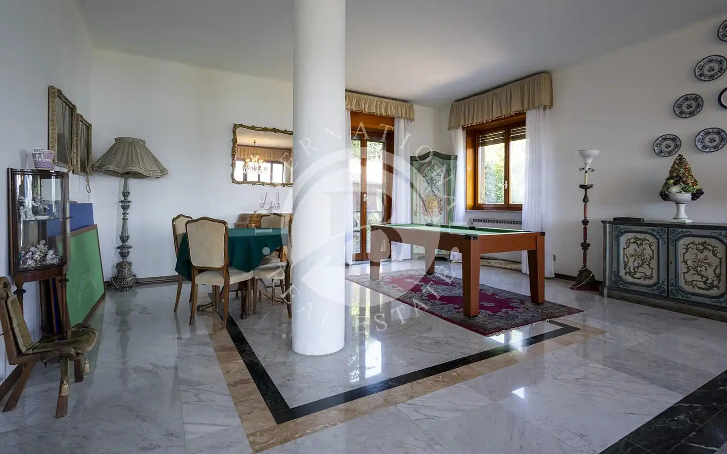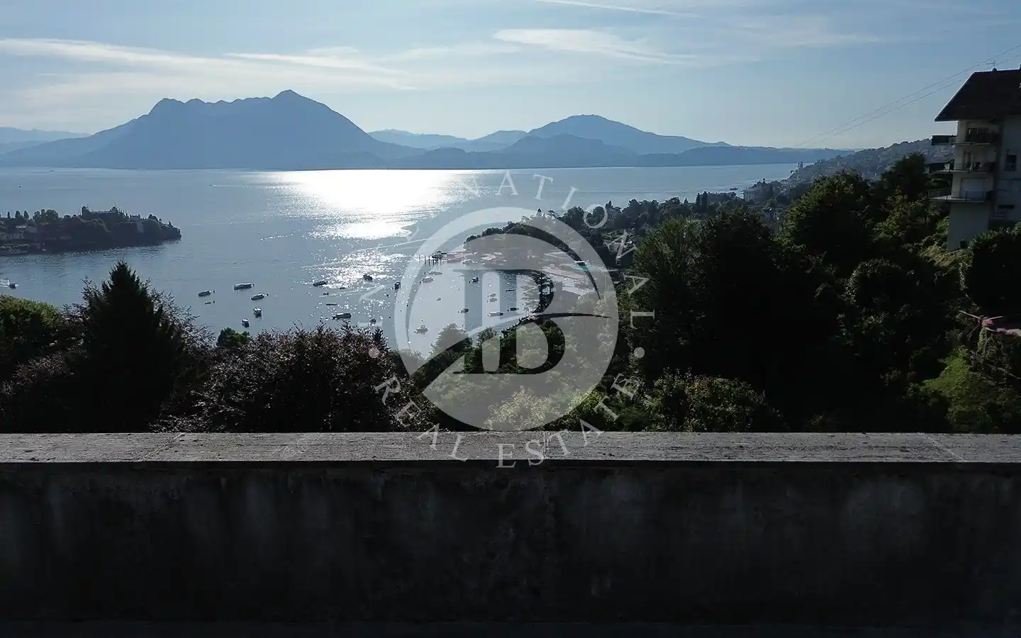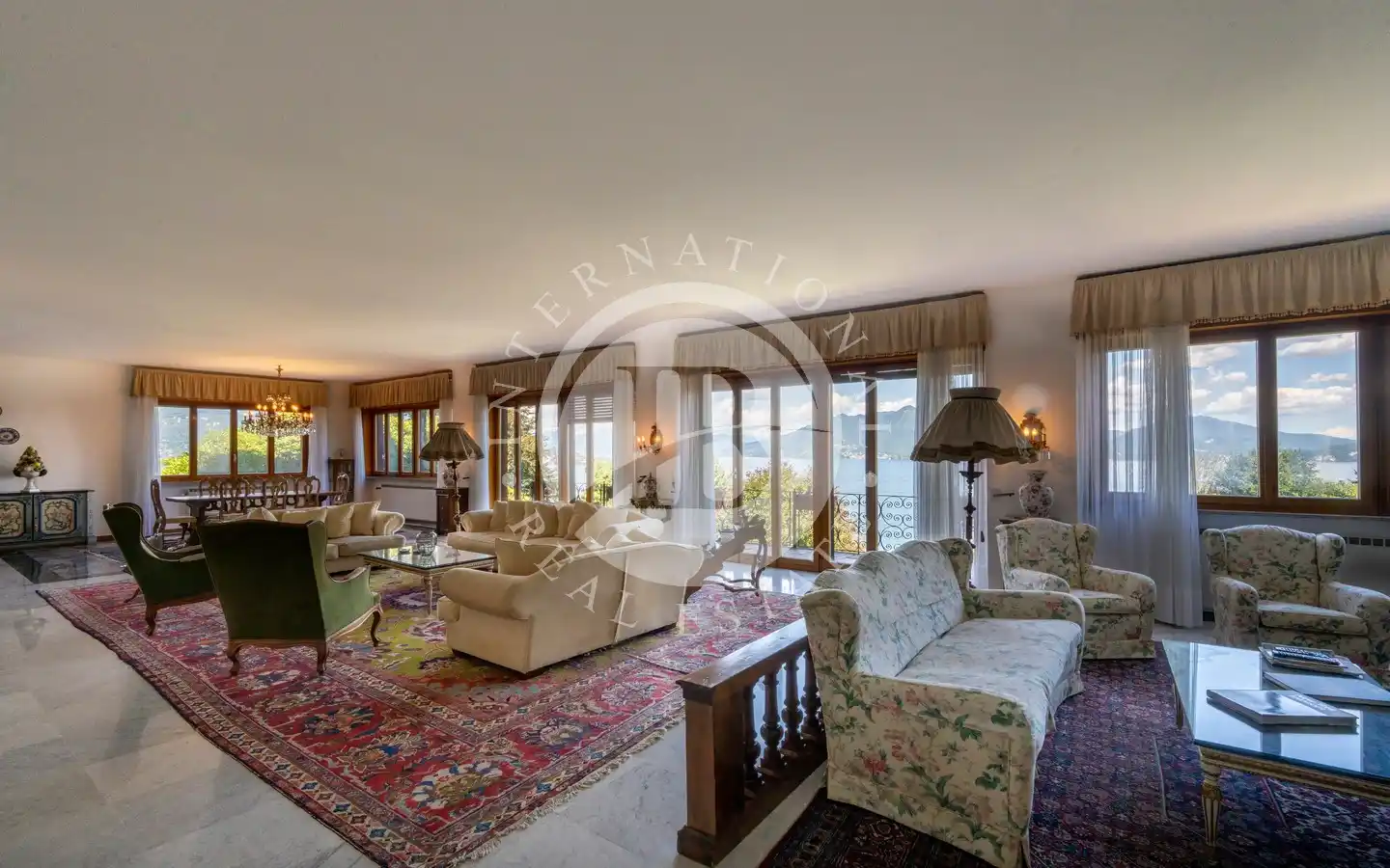 Costruita negli anni ’60 e riqualificata nel 1983, la villa si sviluppa su quattro livelli armoniosamente collegati. Al piano giardino si trovano l’ingresso, la sala da pranzo, la cucina, una camera, due bagni e i locali di servizio; da qui si accede a un ampio terrazzo porticato affacciato sul lago, perfetto per vivere all’aperto in ogni stagione. Il primo piano ospita un grande soggiorno open space di oltre 200 metri quadrati, caratterizzato da ampie vetrate e da un balcone panoramico che regala una vista spettacolare sul Lago Maggiore. Al secondo piano si sviluppa la zona notte, composta da cinque camere da letto e cinque bagni, mentre il terzo piano accoglie un’ampia terrazza di copertura completamente fruibile, con un piccolo fabbricato accessorio dotato di guardaroba e bagno, ideale come area relax o spazio per gli ospiti.