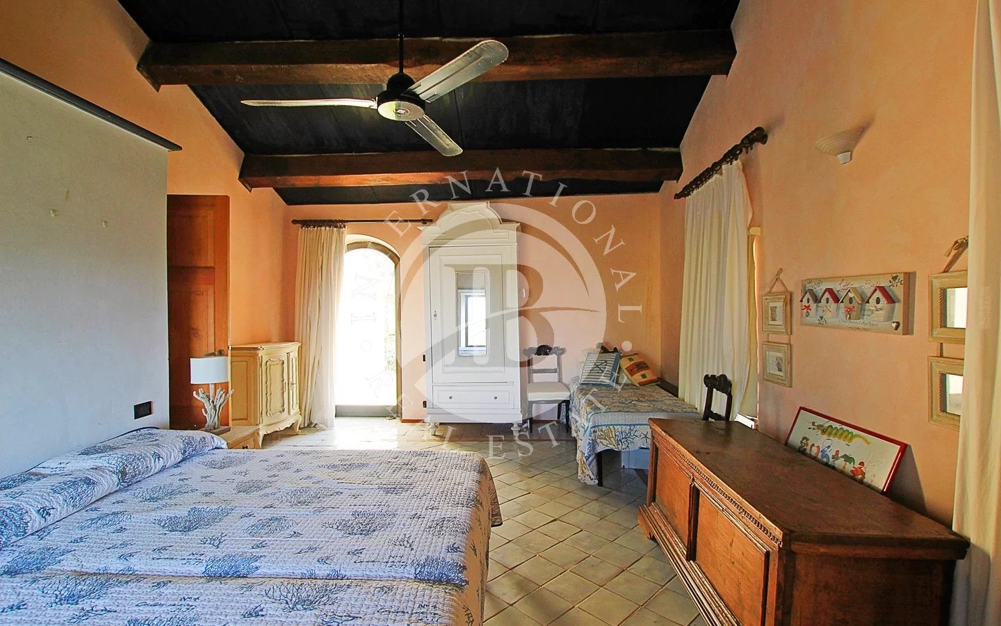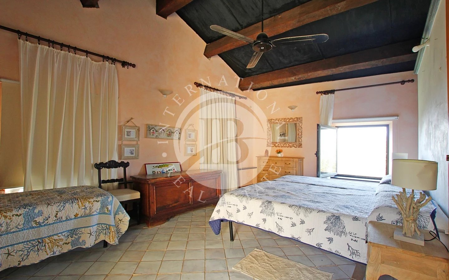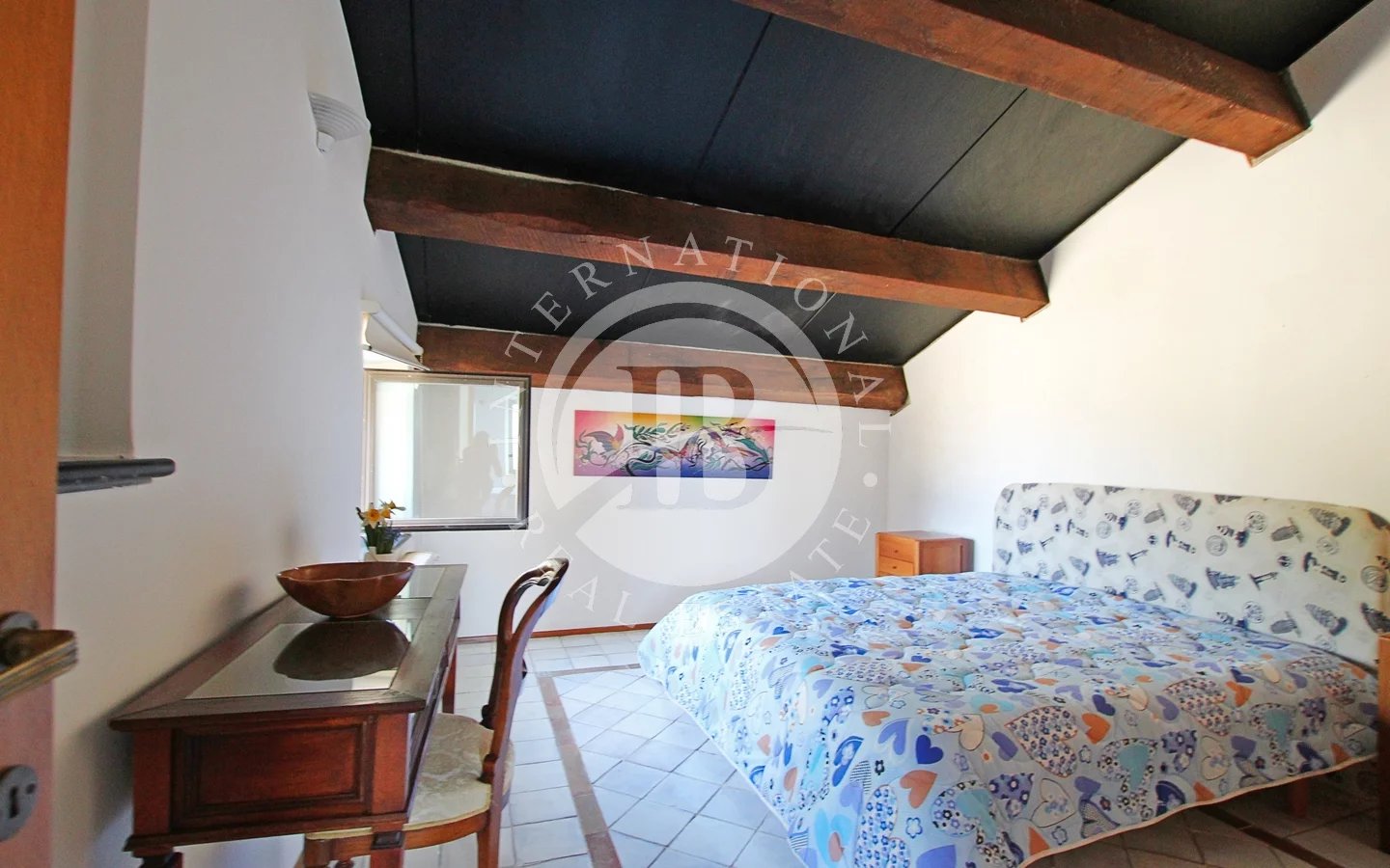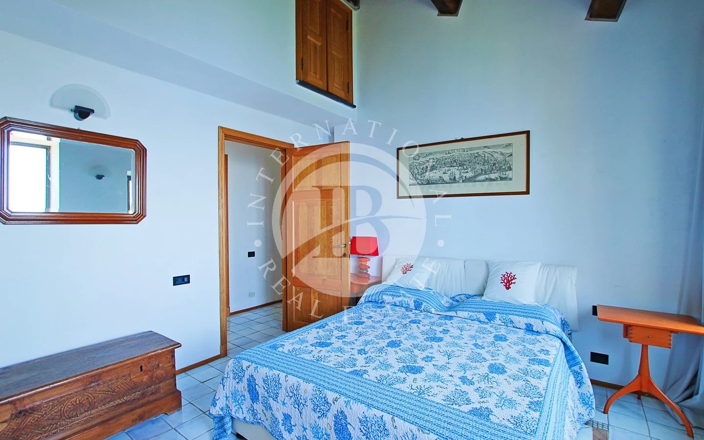 Una delle quattro camere ha accesso a una scalinata che porta al giardino, mentre dal disimpegno si accede a un terrazzino con vista mare.