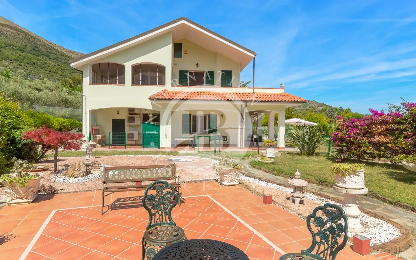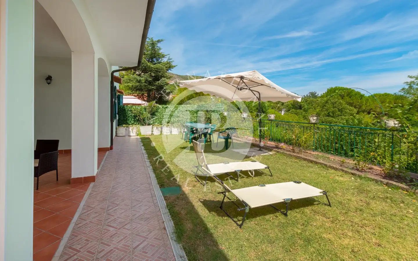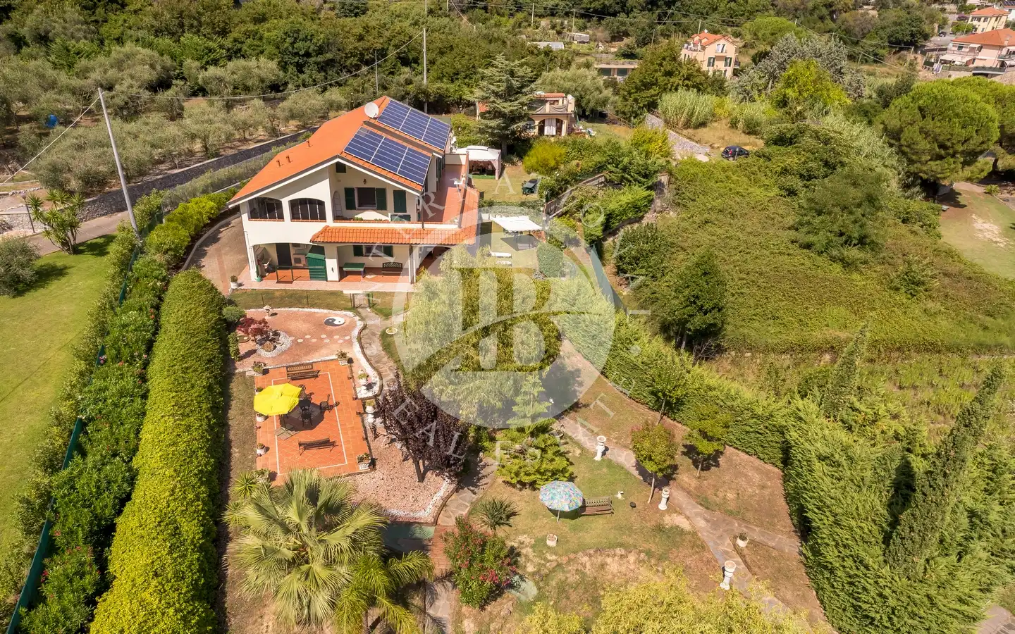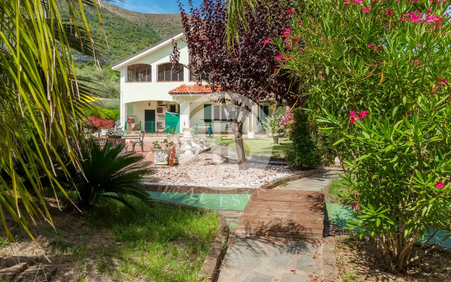 Al primo piano si trova l’appartamento principale, di circa 140 mq, composto da soggiorno, cucina, tre camere da letto, bagno, terrazzo con vista mare, e porticato abitabile con cucina estiva. Al piano interrato, di circa 180 mq, troviamo un’ampia autorimessa con accesso carrabile, capace di ospitare fino a tre auto e moto, oltre a magazzini, cantine, bagno e locali tecnici. Gli spazi esterni rappresentano un vero valore aggiunto: la villa è circondata da un parco privato di circa 2.000 mq, arricchito da aree tematiche come giardino Zen, palmeto, bonsai, piante aromatiche e prato. Non mancano fontane funzionanti, un laghetto trasformabile in piscina biologica, area barbecue, casetta per gli attrezzi, un frutteto/orto sottostante di circa 150 mq. con cisterna da 10.000 litri per l’irrigazione automatizzata. L’illuminazione esterna a LED e la recinzione completa, garantiscono comfort e sicurezza anche negli spazi verdi.