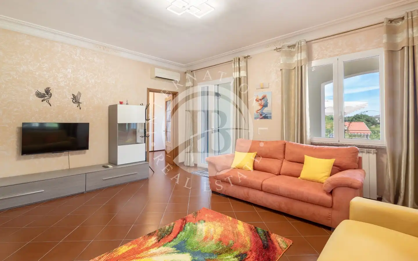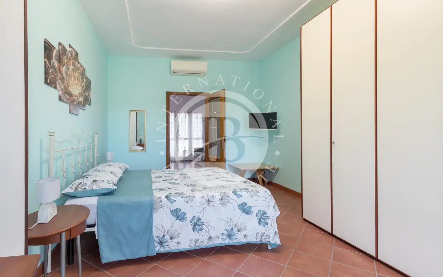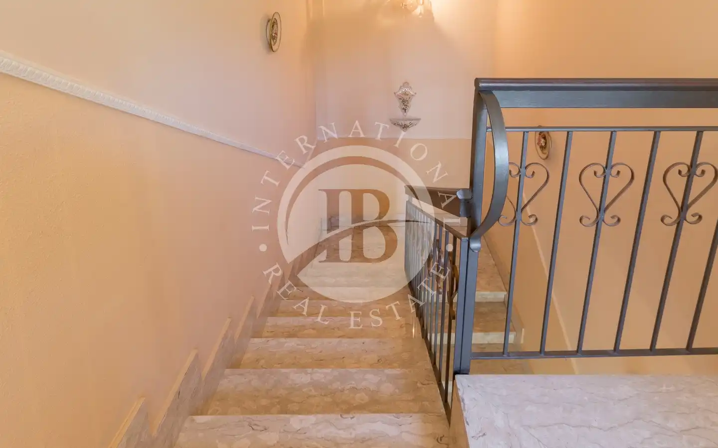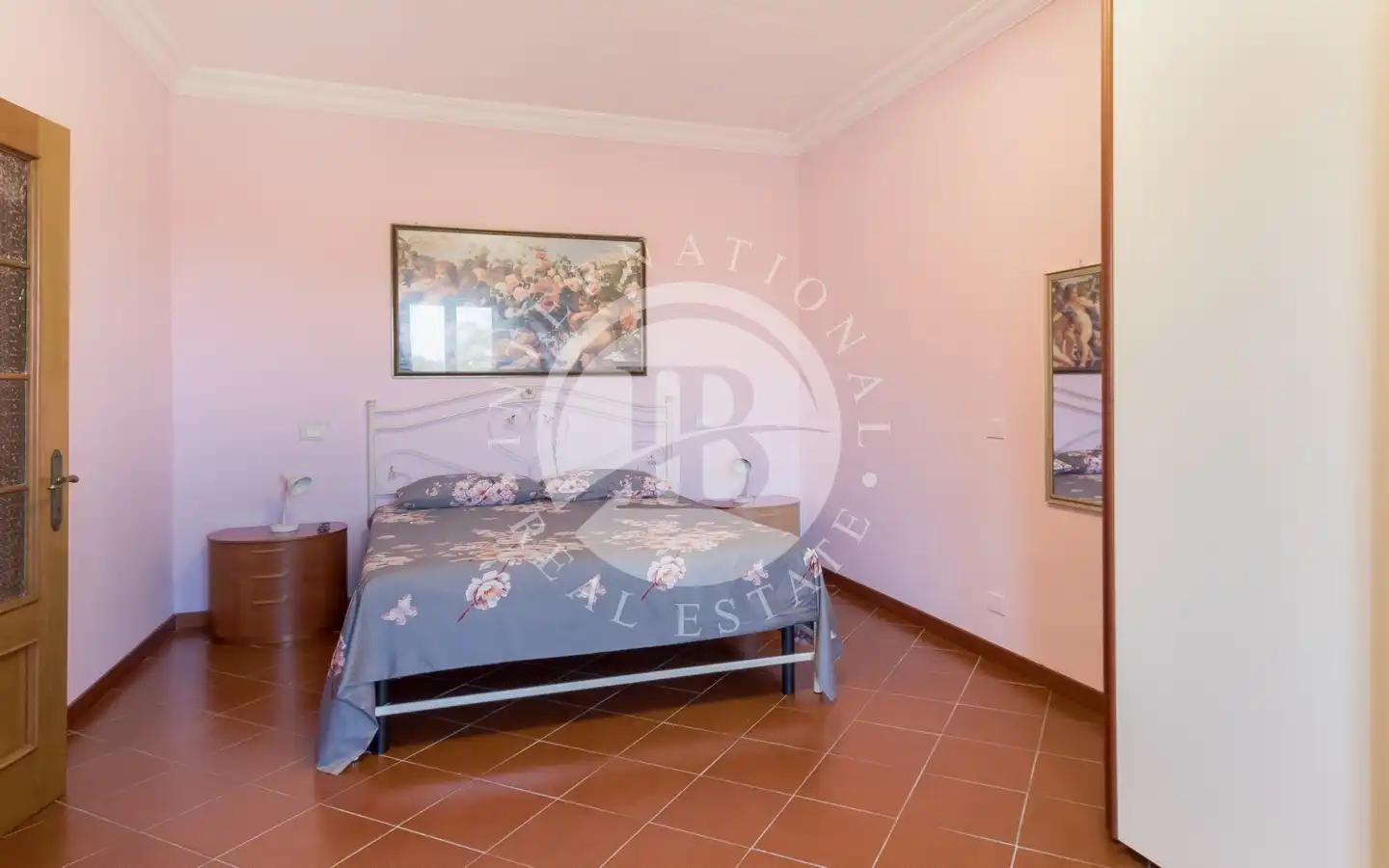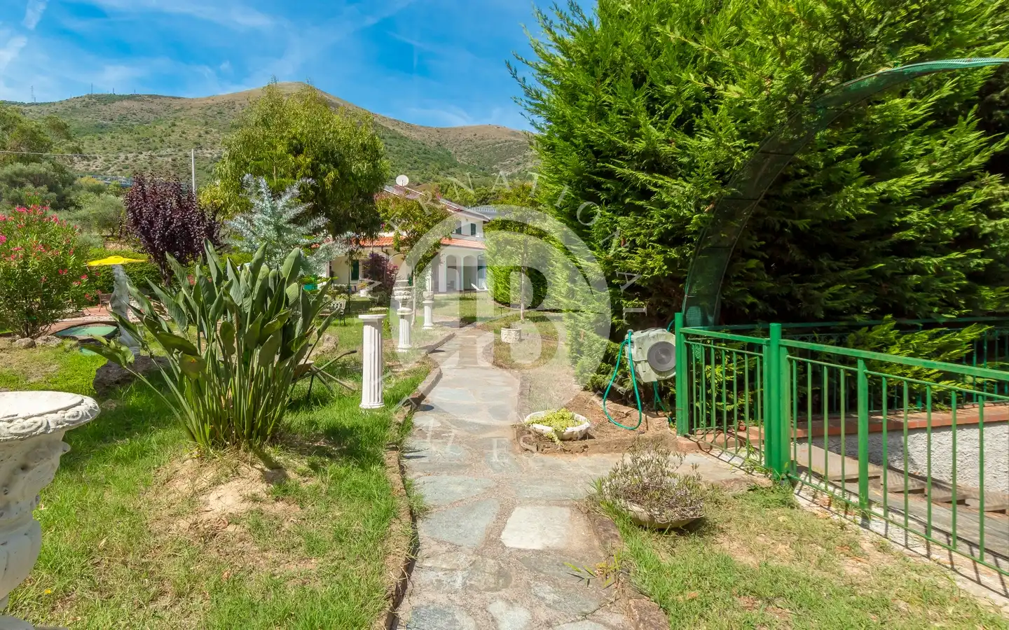 Al primo piano si trova l’appartamento principale, di circa 140 mq, composto da soggiorno, cucina, tre camere da letto, bagno, terrazzo con vista mare, e porticato abitabile con cucina estiva. Al piano interrato, di circa 180 mq, troviamo un’ampia autorimessa con accesso carrabile, capace di ospitare fino a tre auto e moto, oltre a magazzini, cantine, bagno e locali tecnici. Gli spazi esterni rappresentano un vero valore aggiunto: la villa è circondata da un parco privato di circa 2.000 mq, arricchito da aree tematiche come giardino Zen, palmeto, bonsai, piante aromatiche e prato. Non mancano fontane funzionanti, un laghetto trasformabile in piscina biologica, area barbecue, casetta per gli attrezzi, un frutteto/orto sottostante di circa 150 mq. con cisterna da 10.000 litri per l’irrigazione automatizzata. L’illuminazione esterna a LED e la recinzione completa, garantiscono comfort e sicurezza anche negli spazi verdi.
