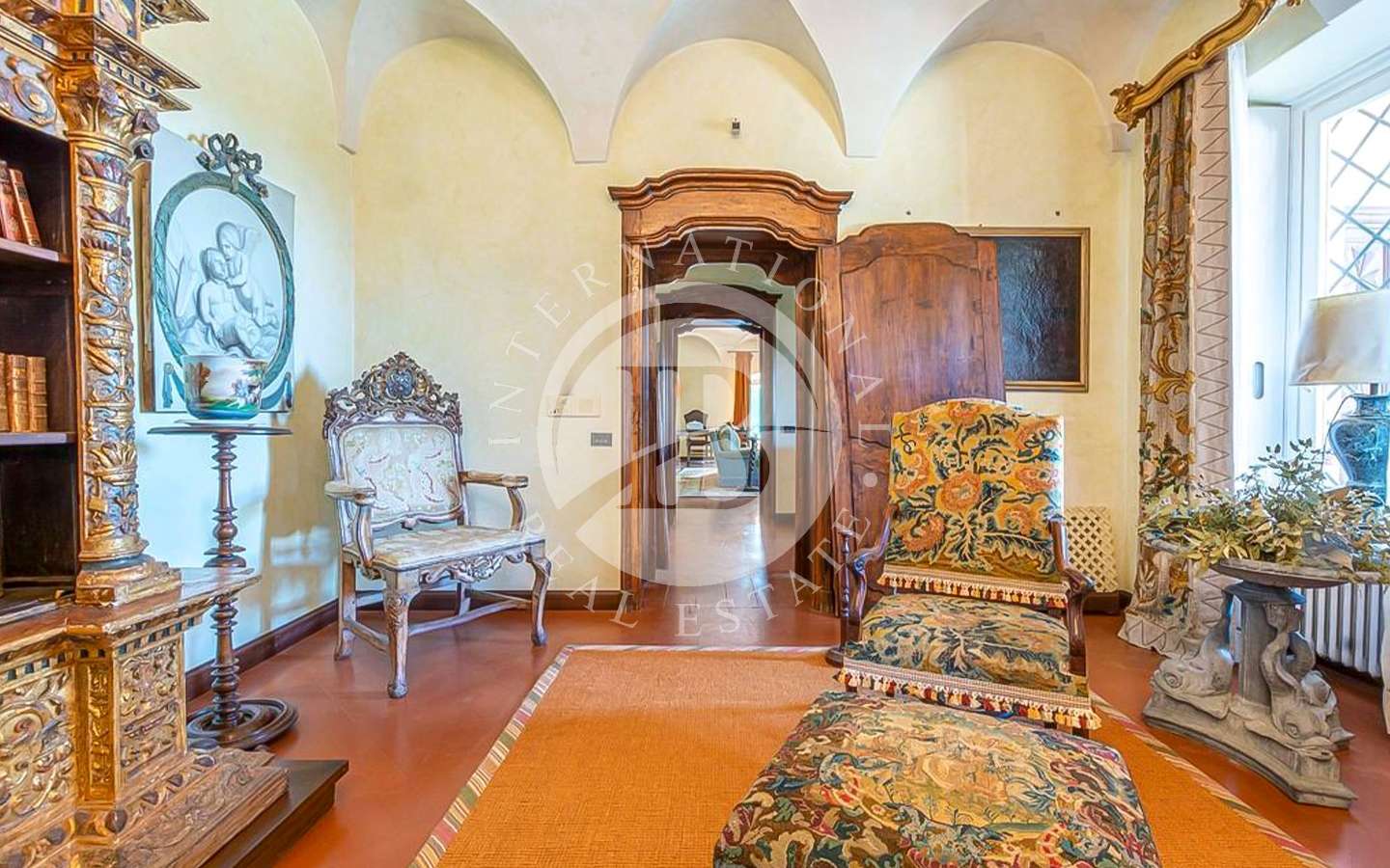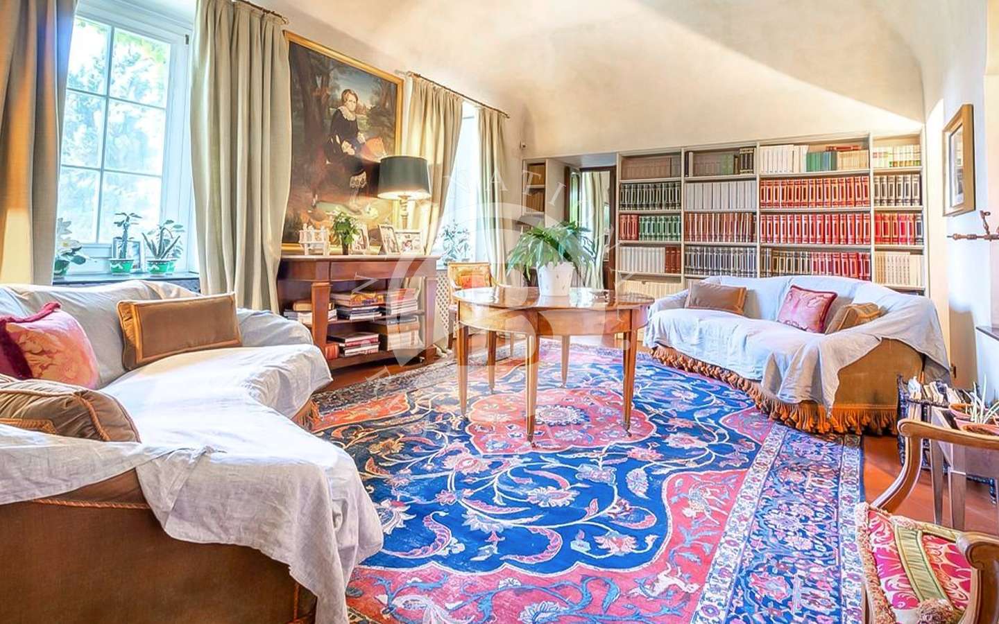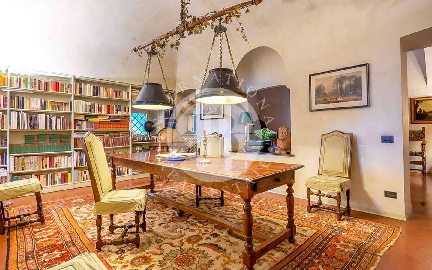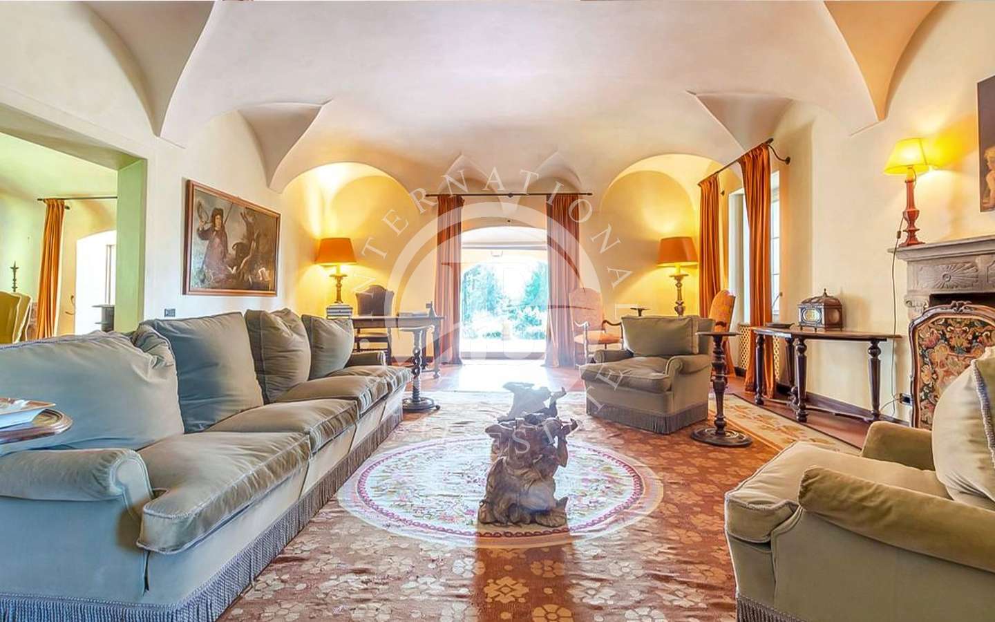 - Piano terra: ampia zona living con saloni, soggiorno con camino, sala da pranzo, studio, libreria, cucina e bagno di servizio;