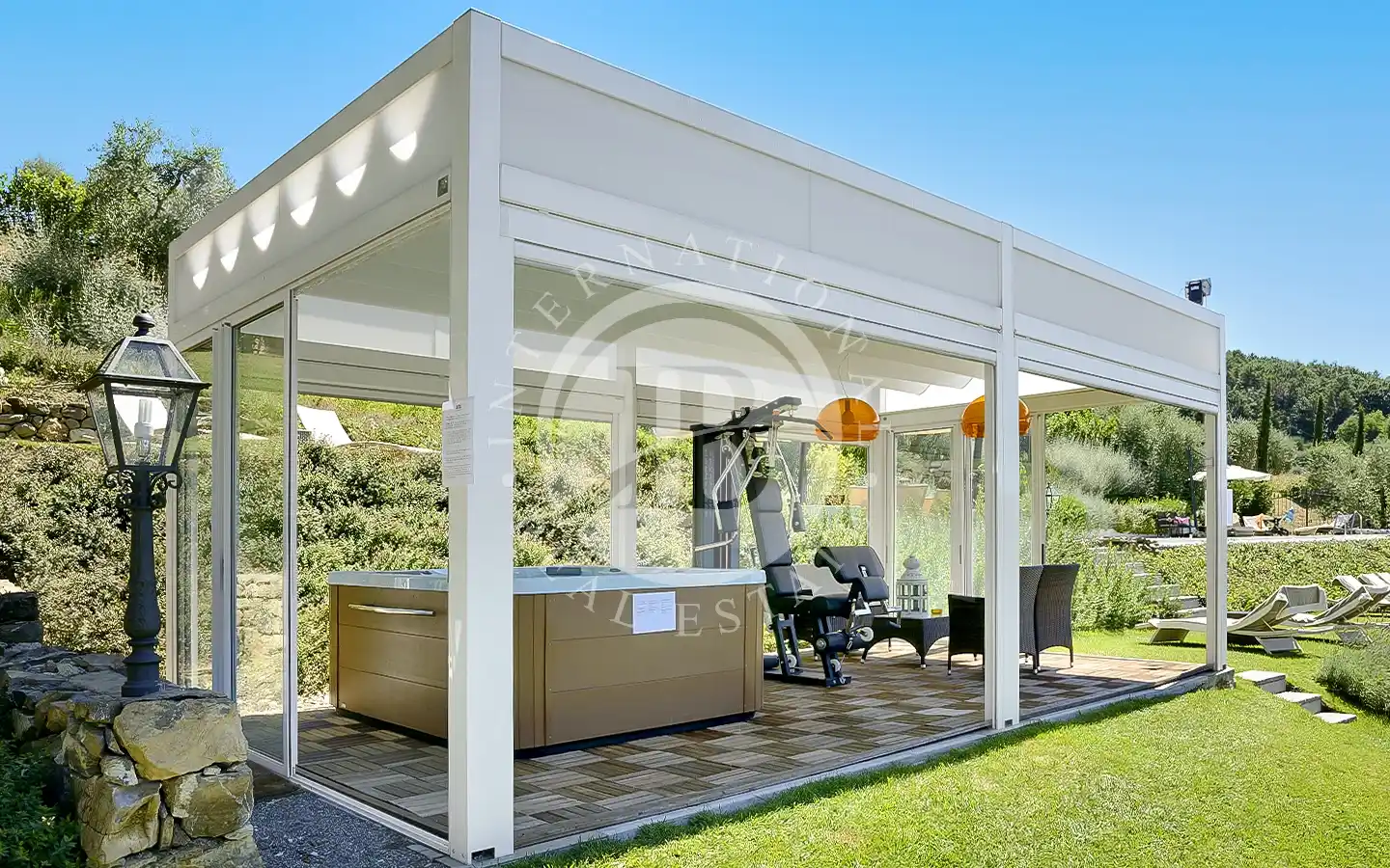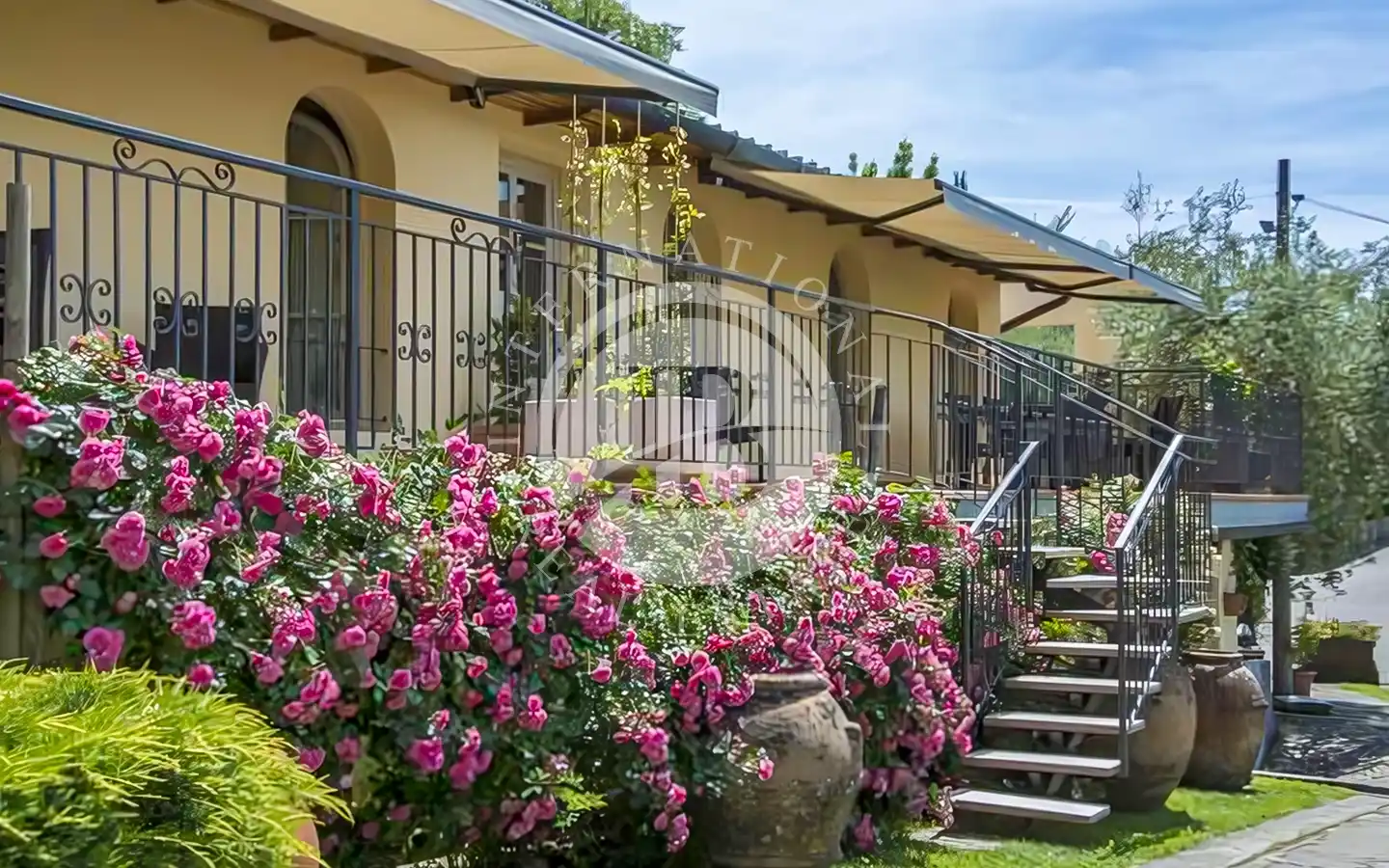 All’esterno, il giardino pianeggiante e ben curato circonda la villa garantendo privacy e relax. L’accesso avviene tramite cancello elettrico che conduce all’area pavimentata destinata al parcheggio di più autovetture. A sud si apre la piscina interrata di 5x10 metri, fulcro della zona outdoor, affiancata da un elegante porticato che collega armoniosamente gli spazi interni ed esterni, ideale per momenti conviviali in ogni stagione.