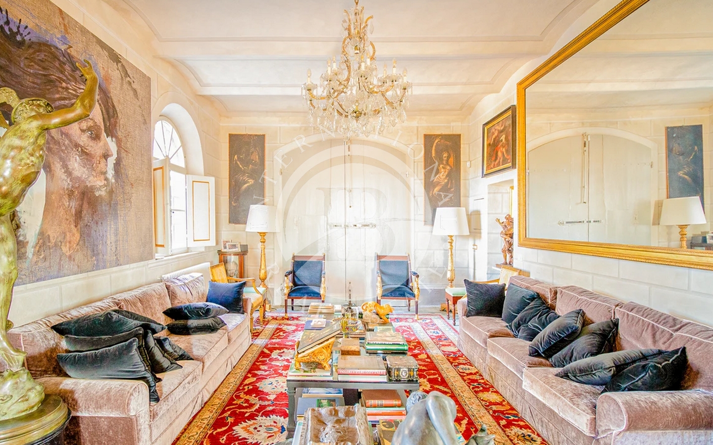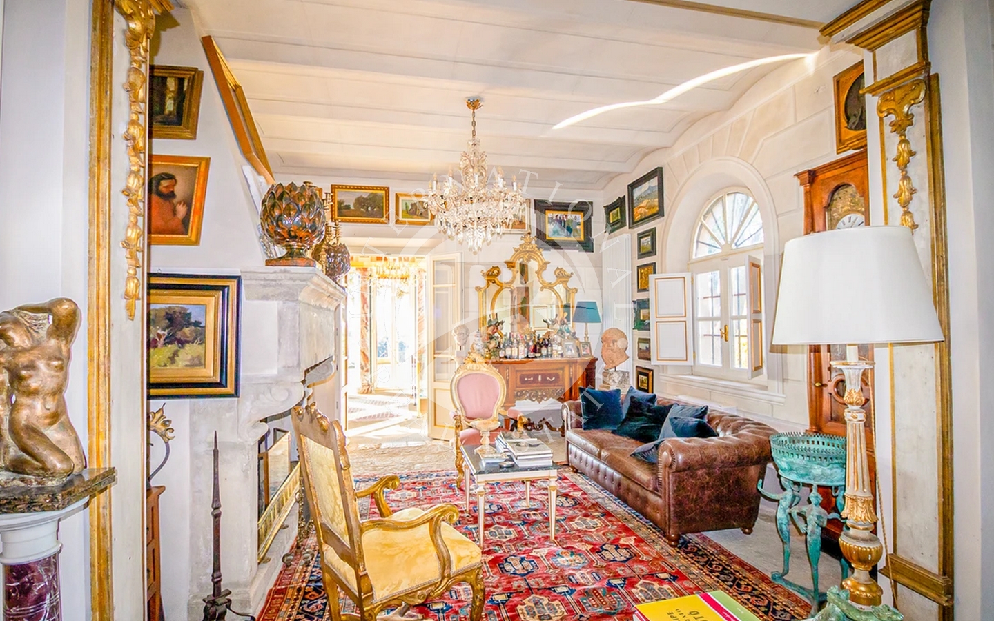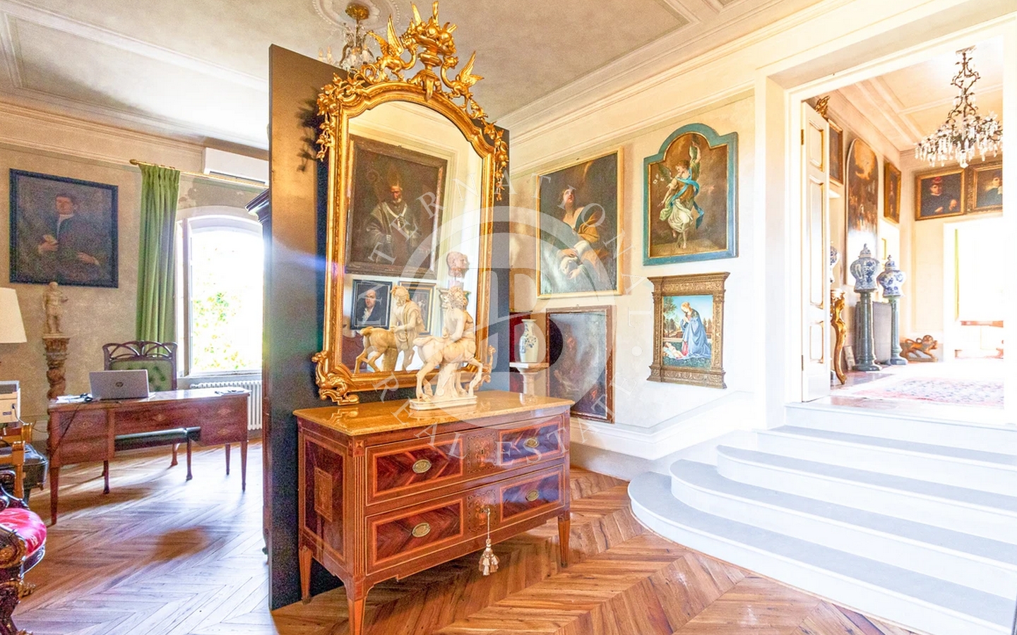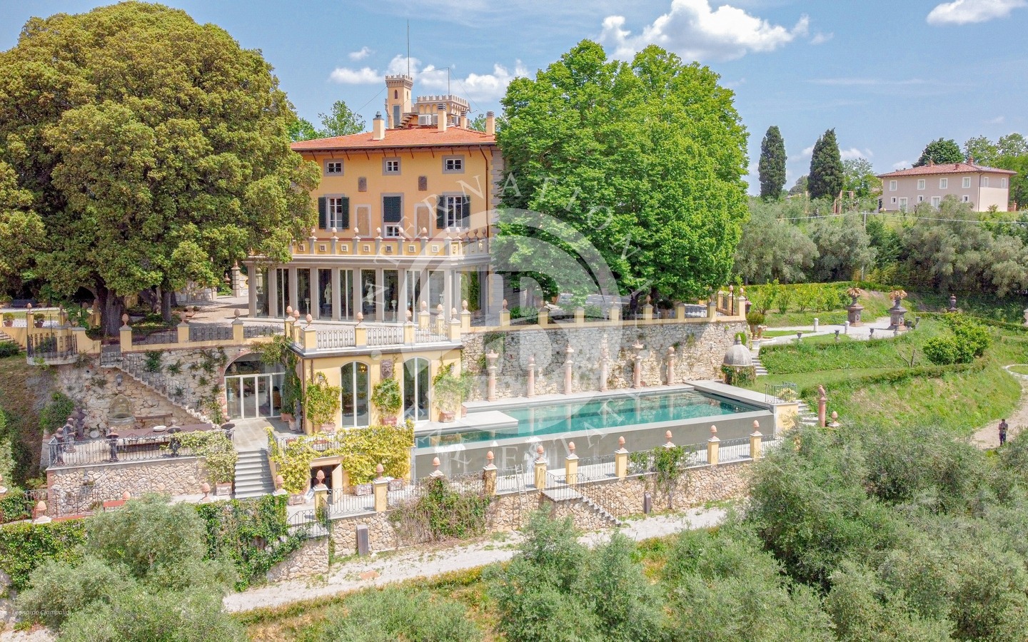 La villa principale, autentico museo di lusso, è un capolavoro di architettura e design. Gli interni si aprono con un doppio ingresso scenografico e una galleria di quasi 20 metri. Al piano terra, la Sala delle Colonne, di 90 mq, offre una vista impareggiabile sulla valle. Seguono una sala da pranzo, una biblioteca, una cucina decorata con maestria e due ampi saloni. I piani superiori ospitano sei camere da letto con bagni en suite, eleganti salotti, uno studio trasformato in sala cinema e una torretta con terrazzo panoramico. La villa è arricchita da oltre 300 opere d'arte, tra sculture, dipinti e tappeti, dal '400 al '900.