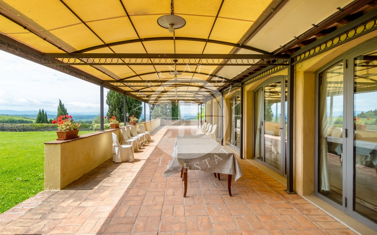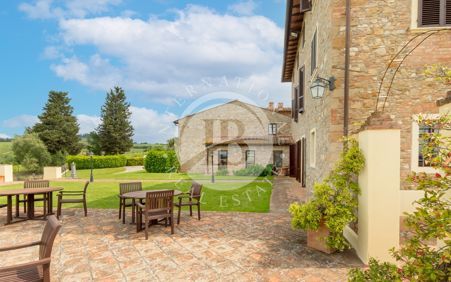 Immersa in un contesto naturale unico, la proprietà vanta un parco di circa 6 ettari, tra cui un uliveto produttivo di oltre 5 ettari e un raffinato giardino all’italiana di 1.200 mq. Tre piscine panoramiche, perfettamente inserite nel paesaggio, offrono il massimo del comfort e del relax, con vista mozzafiato sulla vallata del Chianti e sulle torri di San Gimignano. La terrazza panoramica e le numerose aree esterne creano l’ambiente ideale per ricevimenti, eventi privati o semplici momenti di contemplazione immersi nella bellezza del paesaggio.